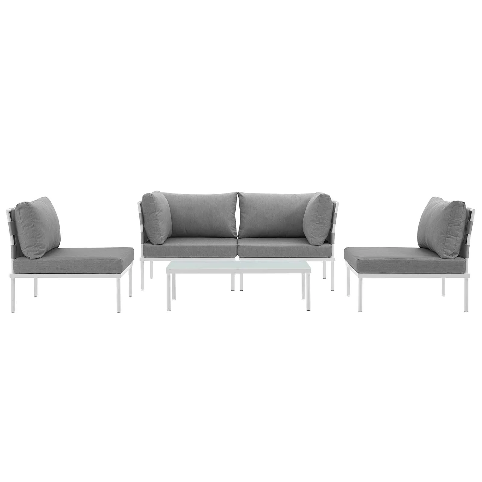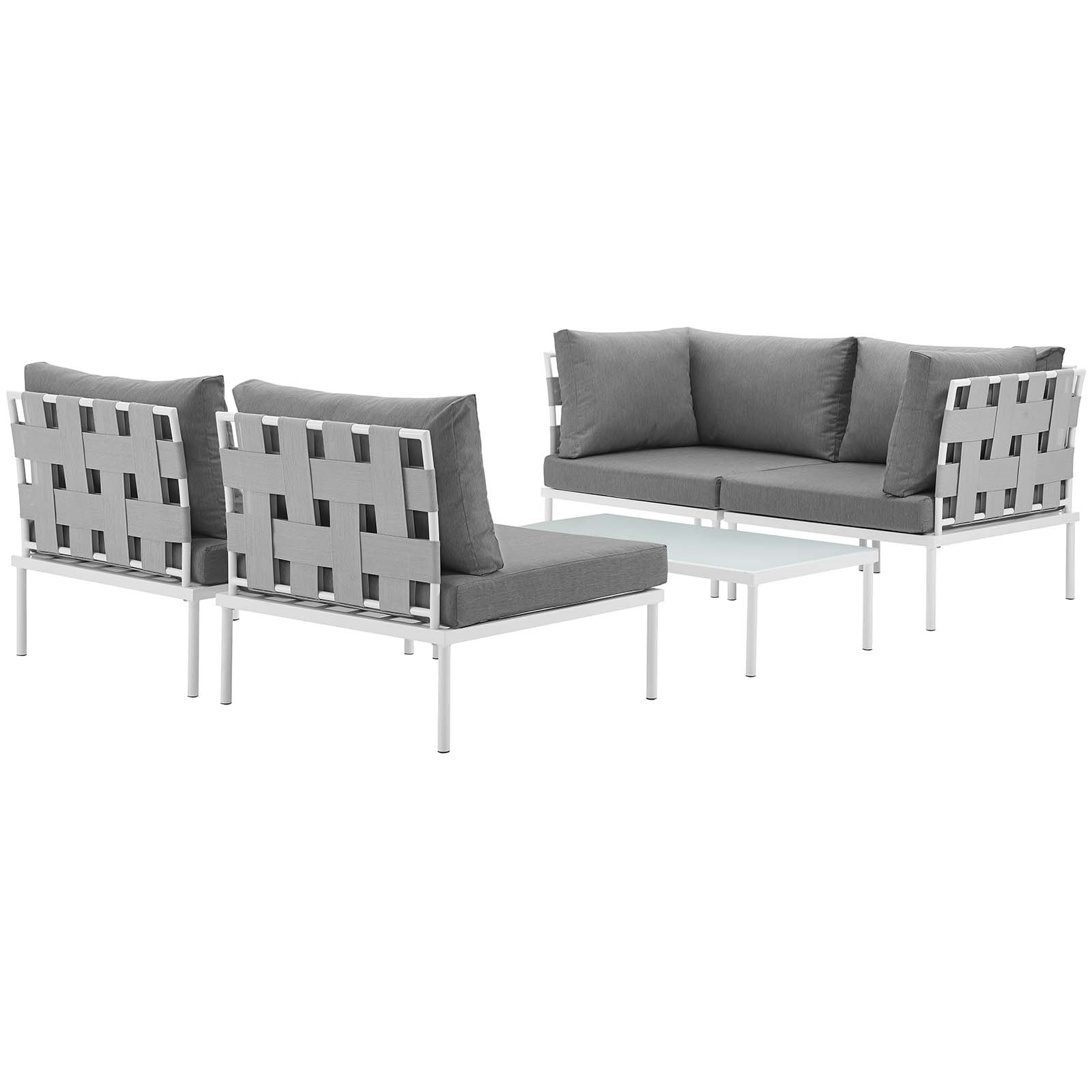 Modern Contemporary Urban Design Outdoor Patio Balcony Five PCS Sectional Sofa Set, Grey White Gray, Rattan