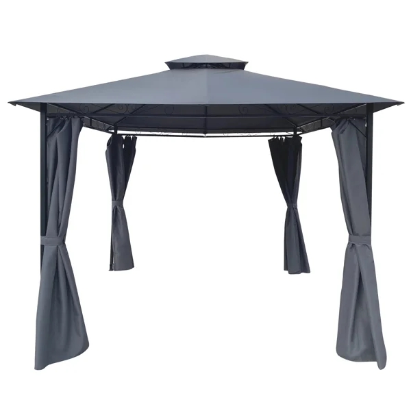 10x10 Ft Outdoor Patio Garden Gazebo Tent, Outdoor Shading, Gazebo Canopy With Curtains,Gray