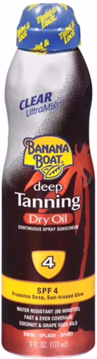 Banana Boat Boat UltraMist Continuous Spray Sunscreen, Deep Tanning Dry Oil, SPF 4, 6 oz (Pack of 6)