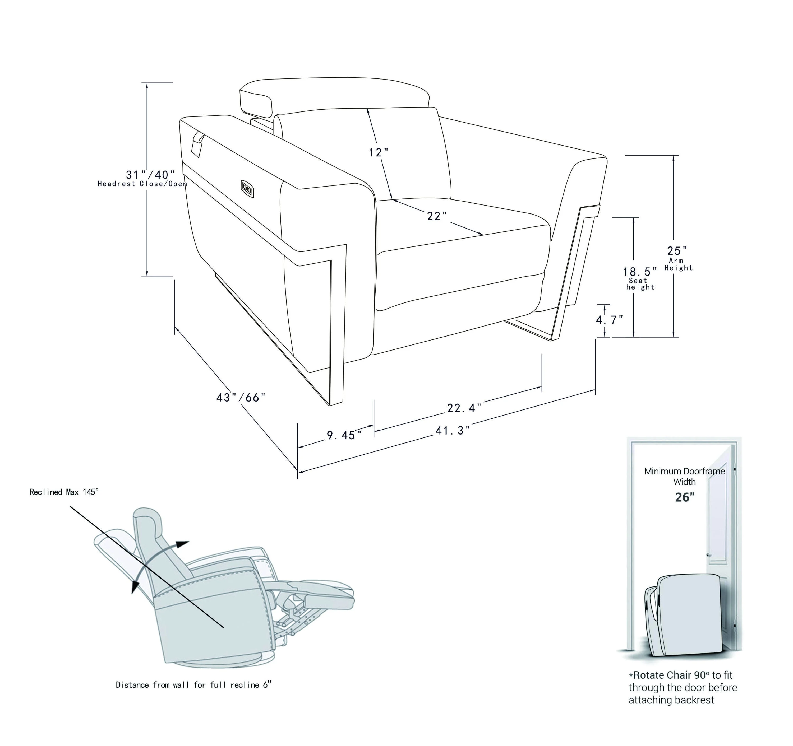 Regal Top Grain Italian Leather Chair with Power Recliner - Dark Gray