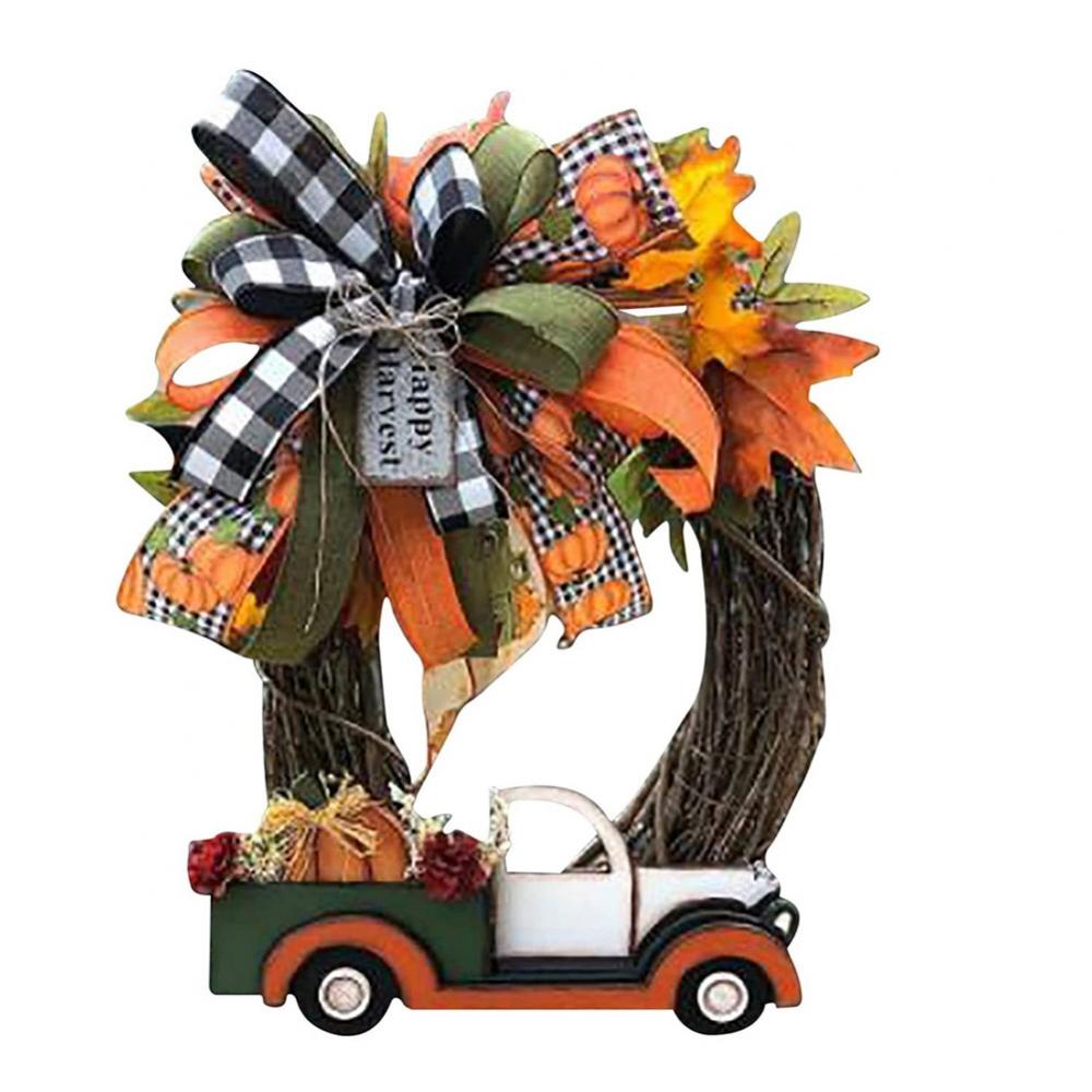 Fall Black And White Plaid Ribbon Decor Front Door Maple Leaf Truck Garland 35Cm/13.77" For Front Door Garland Farmhouse Thanksgiving Decor