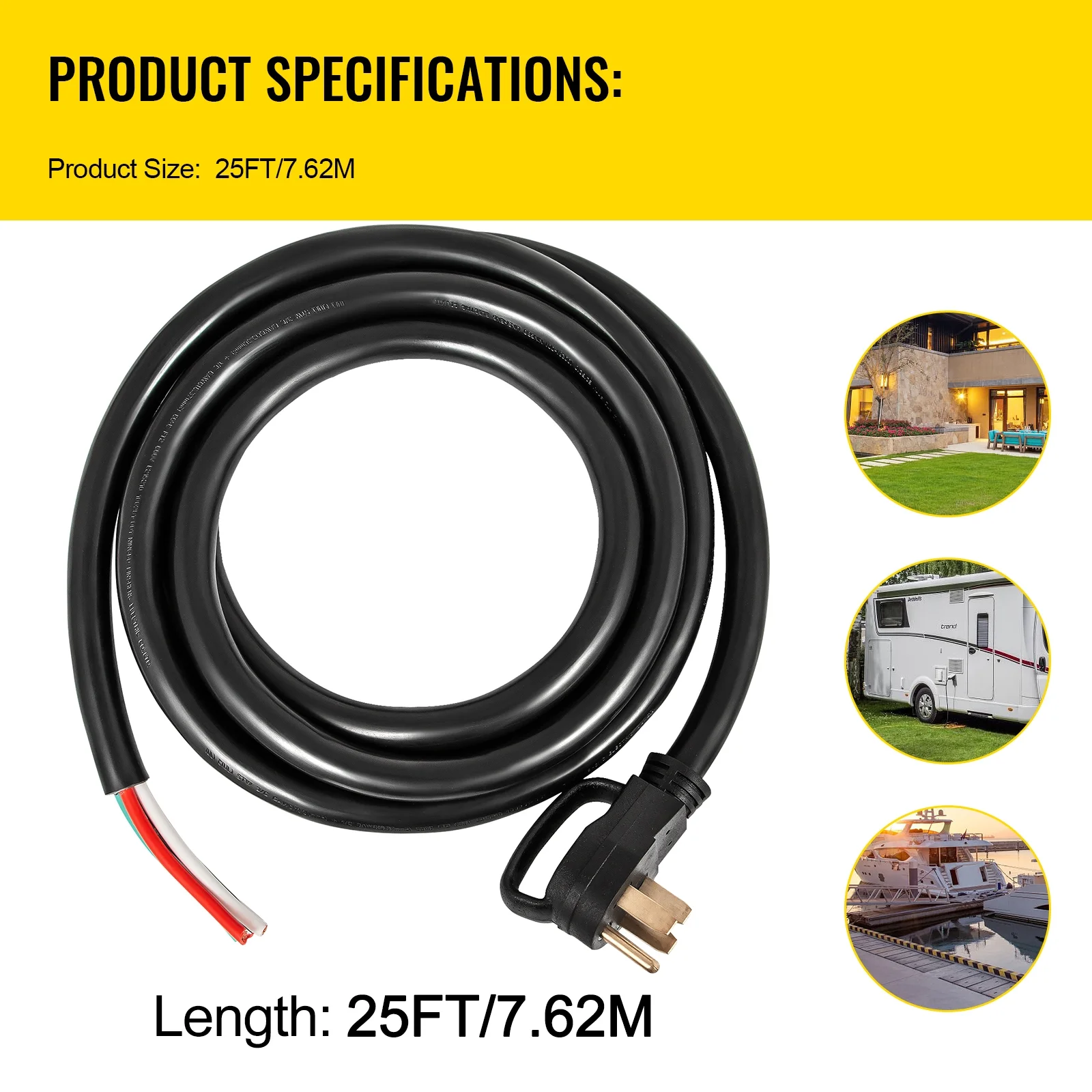 BENTISM 25' 50A RV Camp Power Cord Generator Cord 6/3 + 8/1 AWG NEMA 14-50P to Bare Wire
