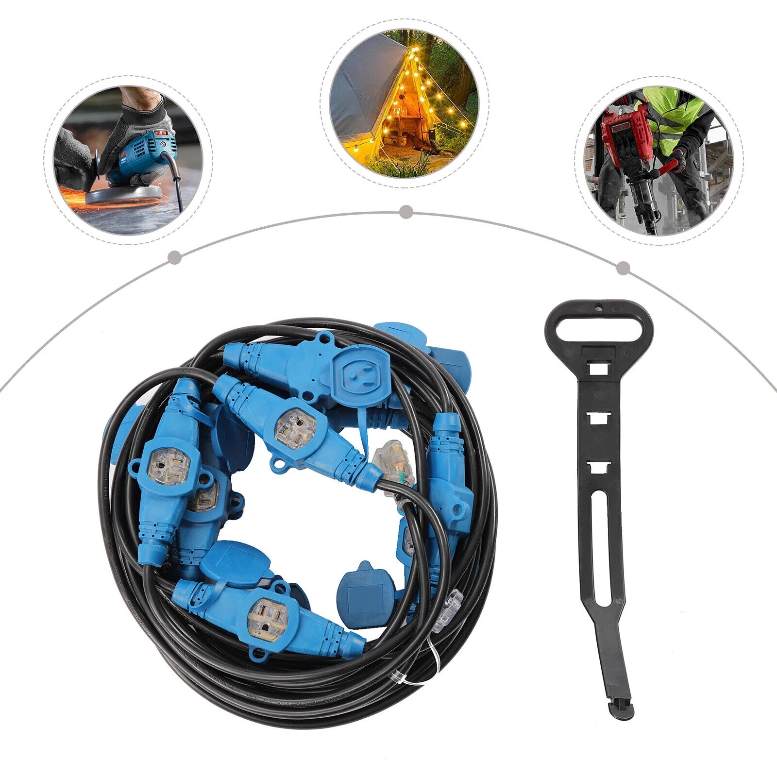 Black, Blue 50FT Extension Power Cord 7/10/11 Outlets Electrical Cable in/Outdoor