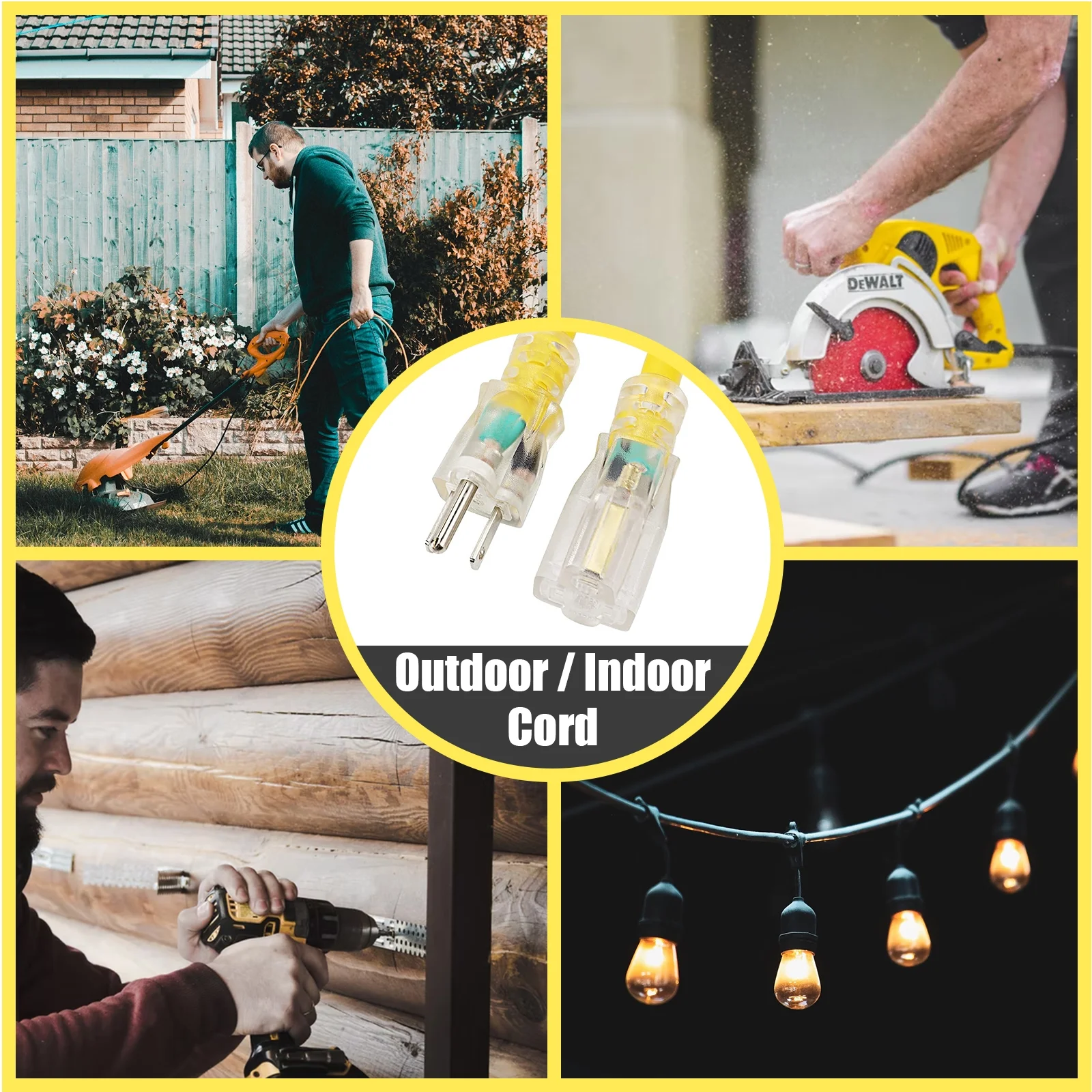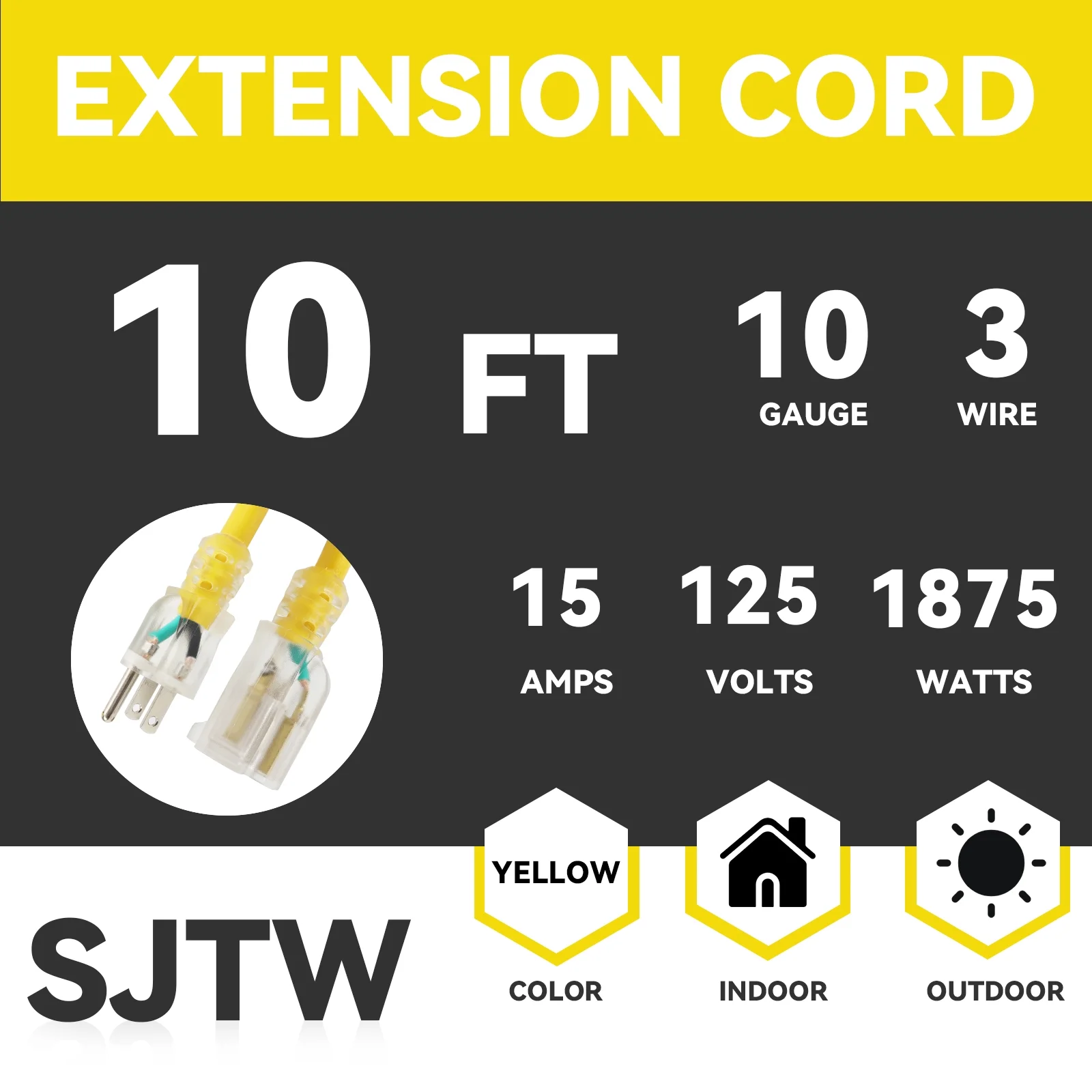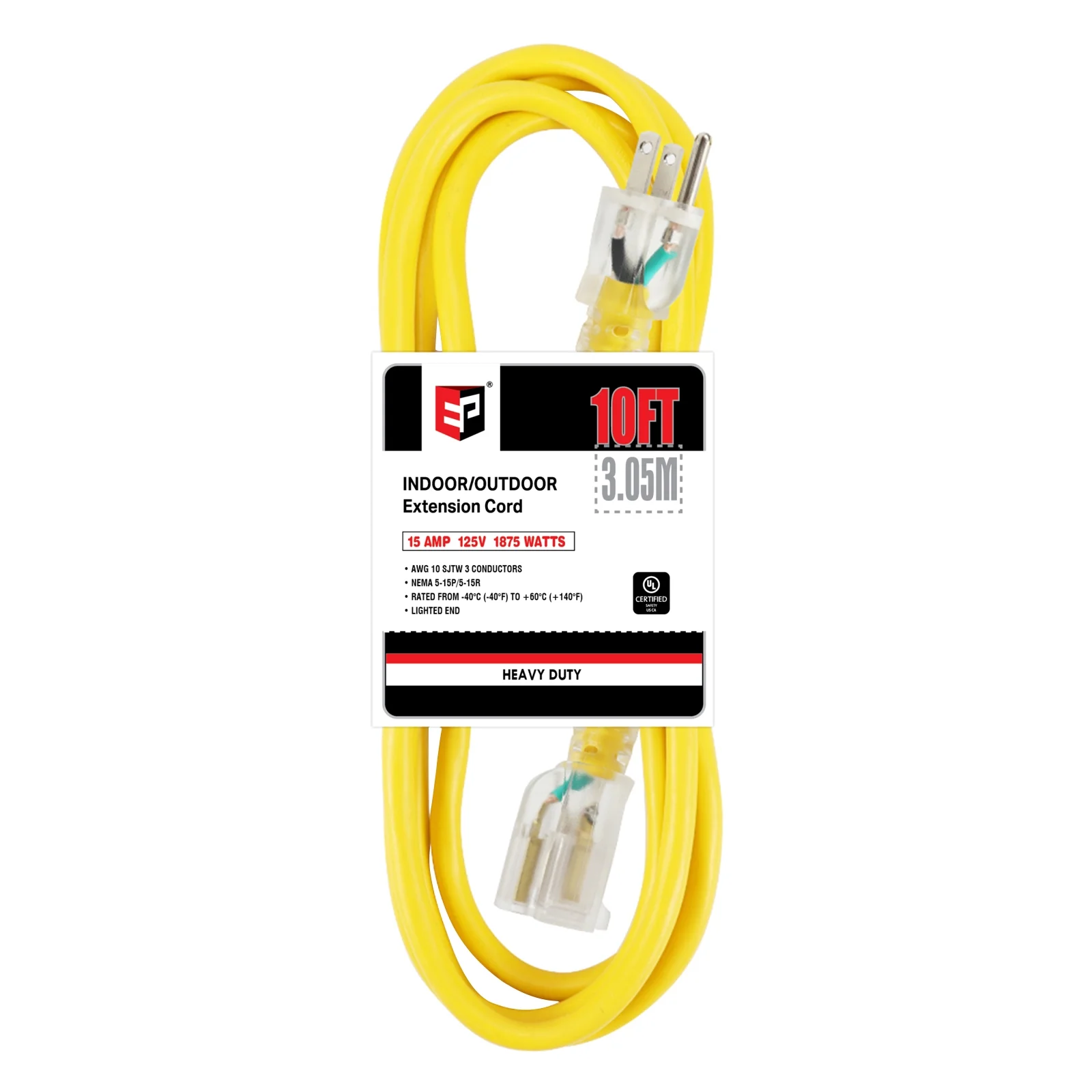 EP 10 Ft 10/3 SJTW Yellow Outdoor/Indoor Extension Cord, 10 Gauge Durable Electrical Cable
