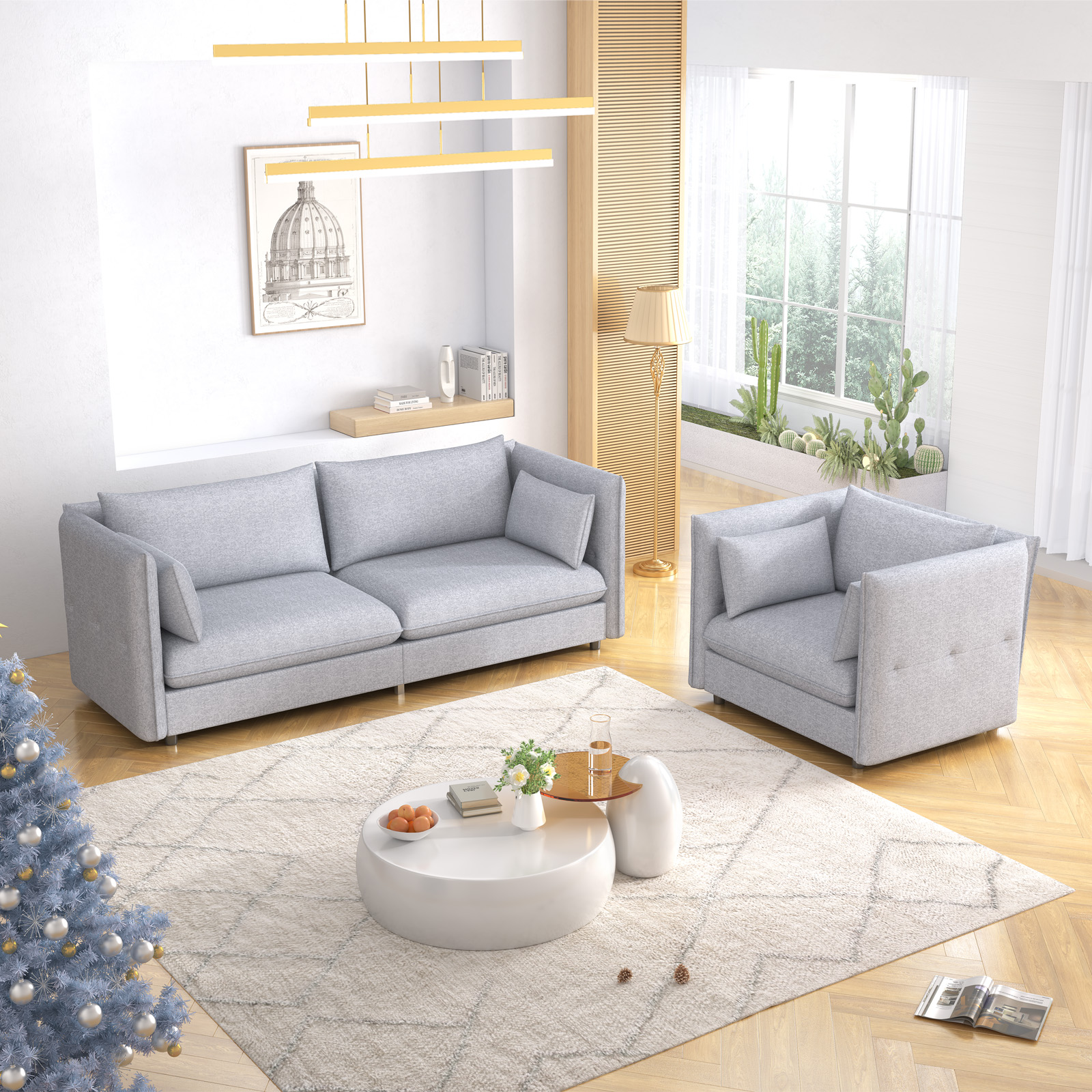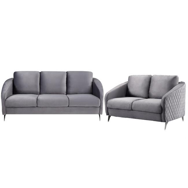 Hida Diamond Stitching Smooth Gray Velvet Sofa & Loveseat Set, 2 Piece