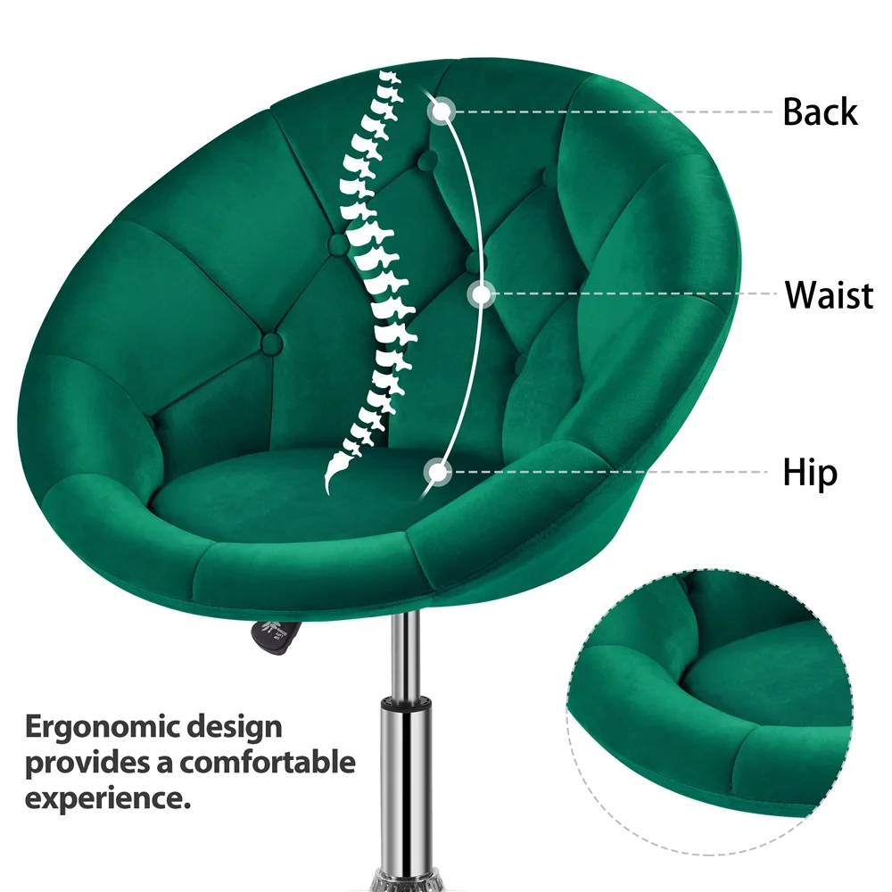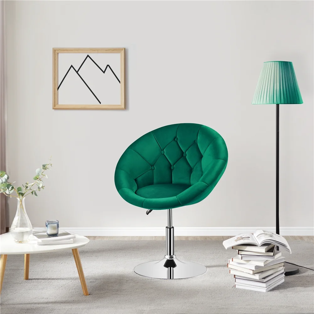 Yaheetech Contemporary Adjustable Round Tufted Back Swivel Accent Chair, Green