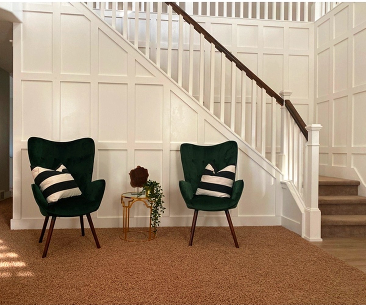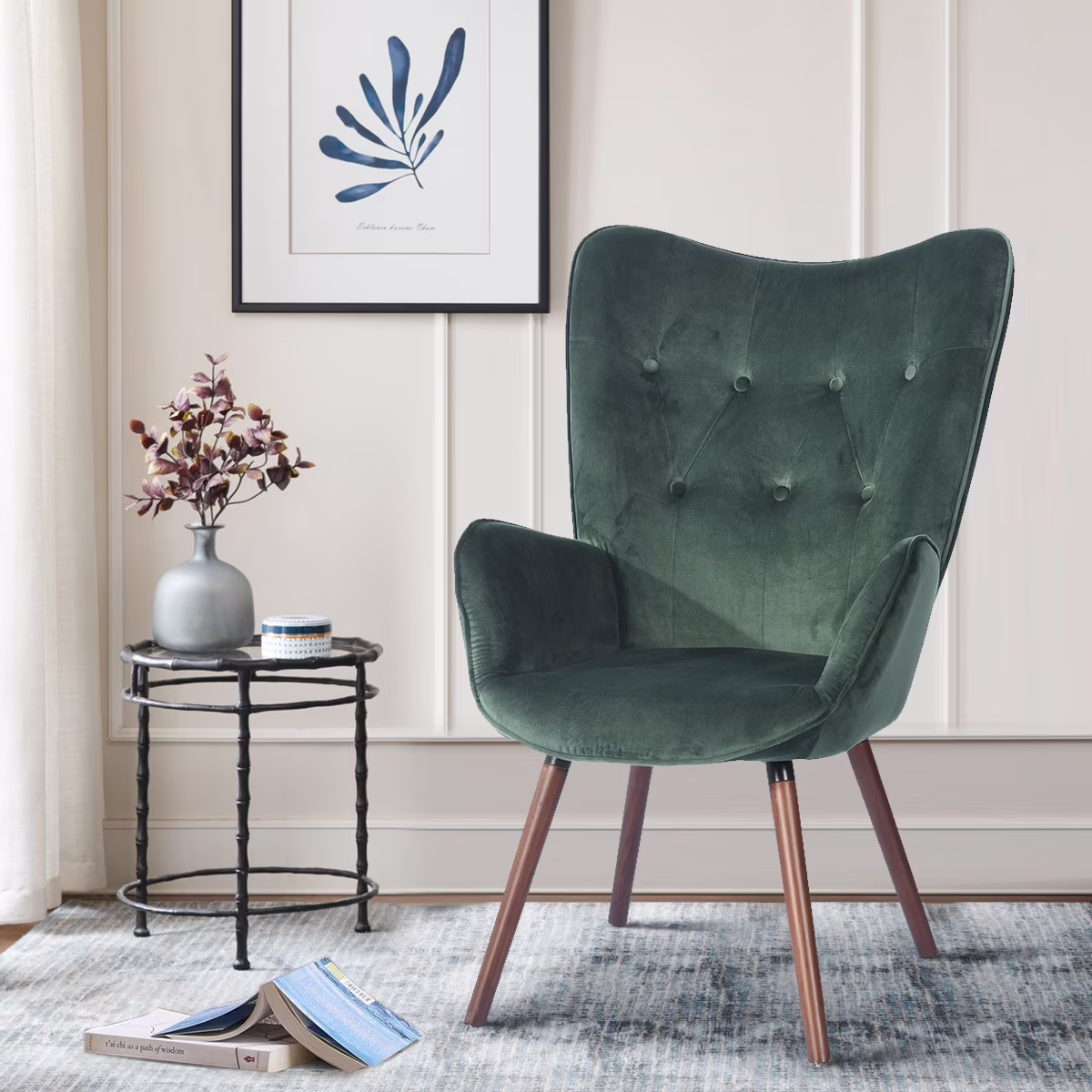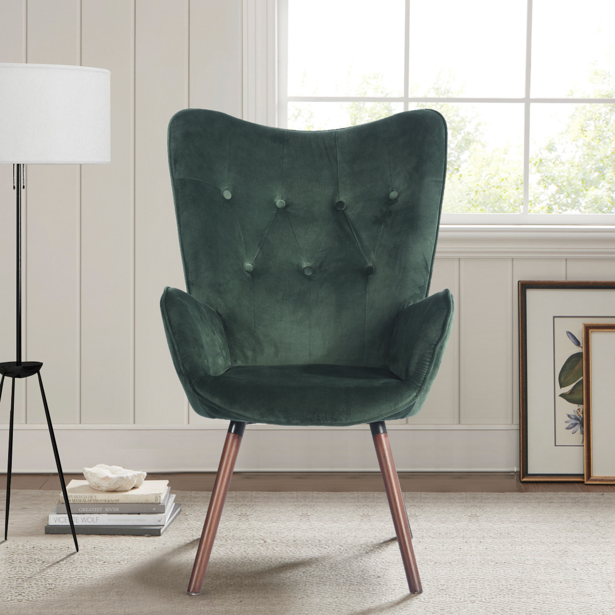 Houseinbox Green Velvet Accent Chair, Wingback Armchair with Tufted Backrest
