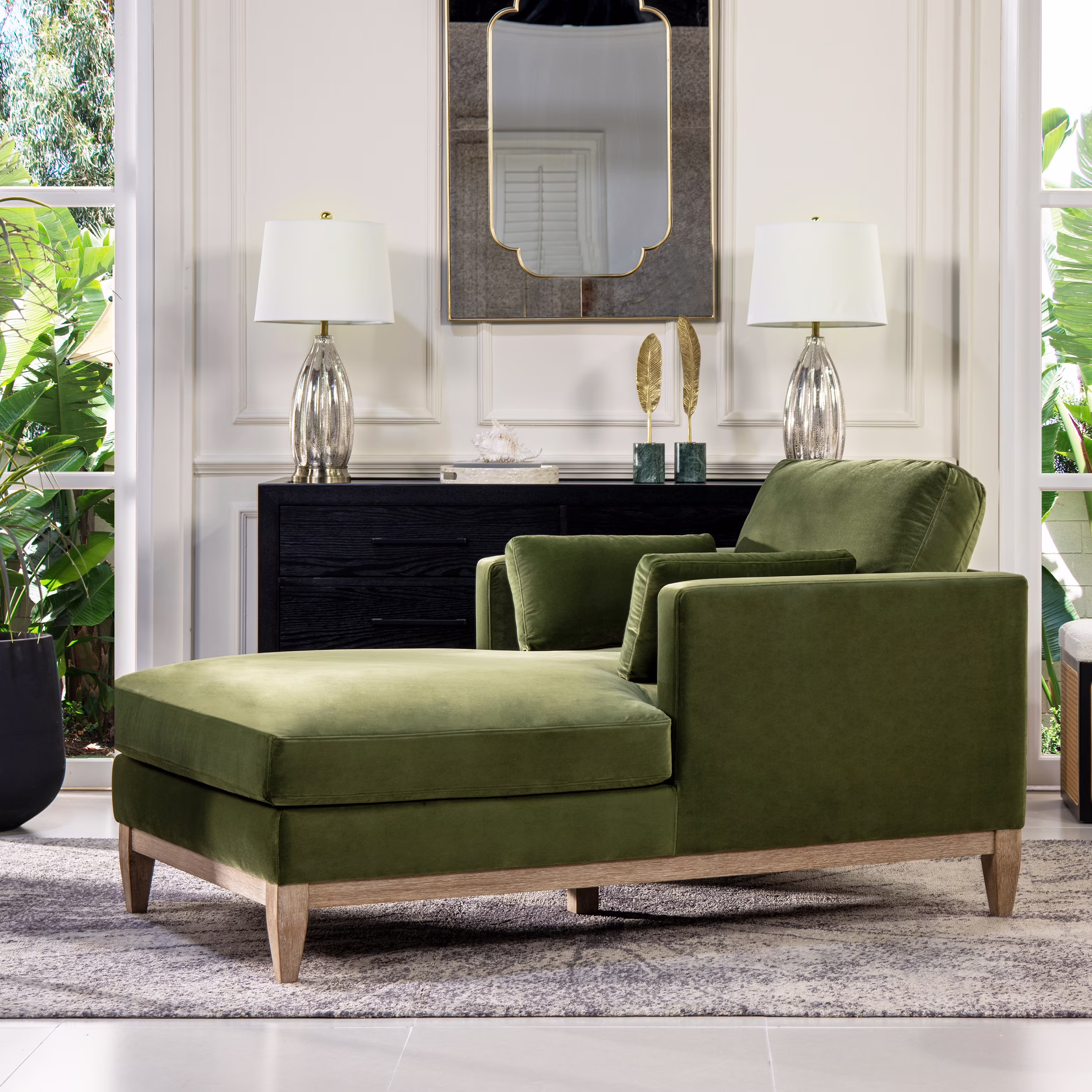 Knox 65" Modern Farmhouse Chaise Lounge Chair, Olive Green Performance Velvet