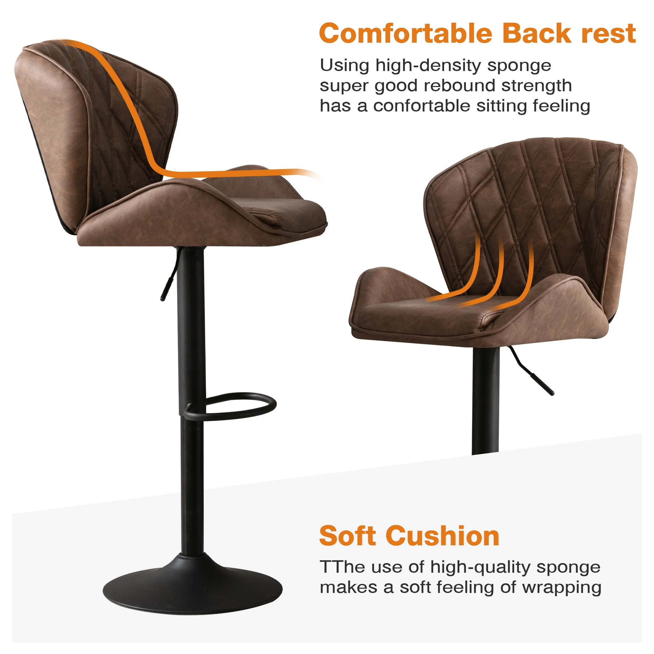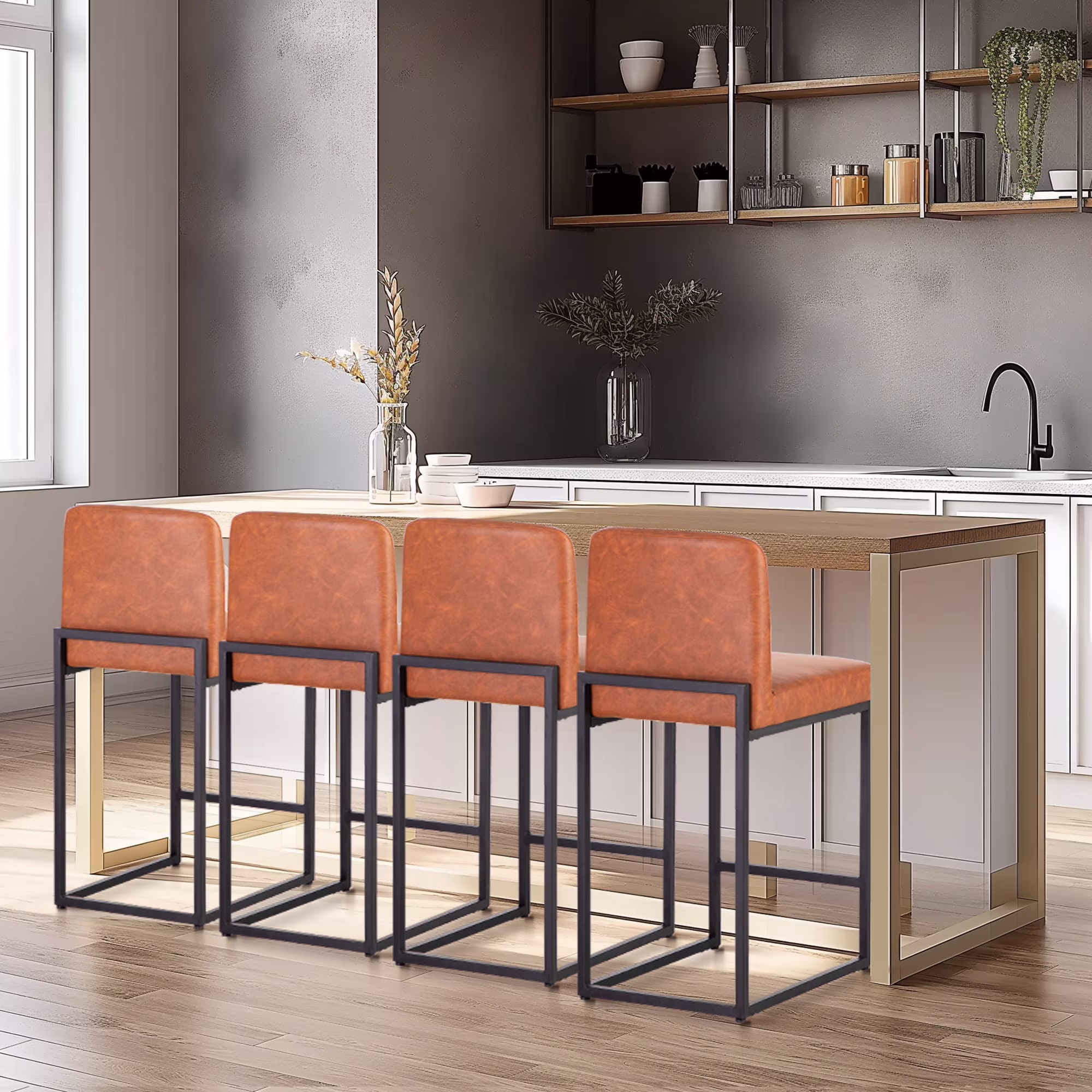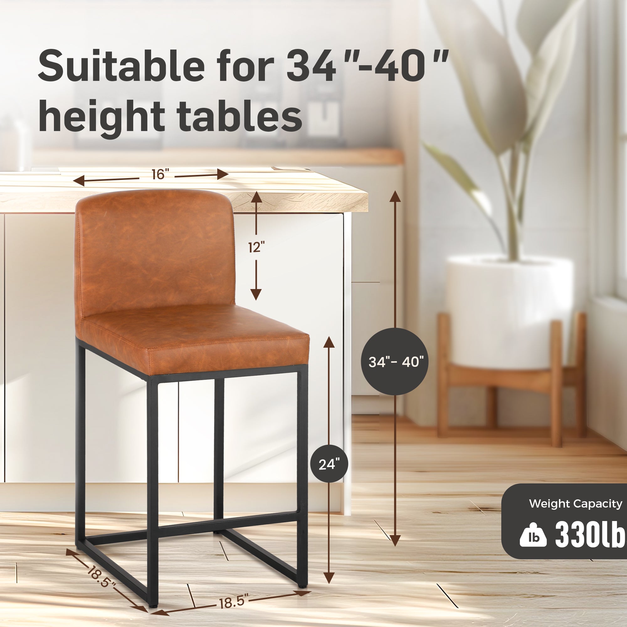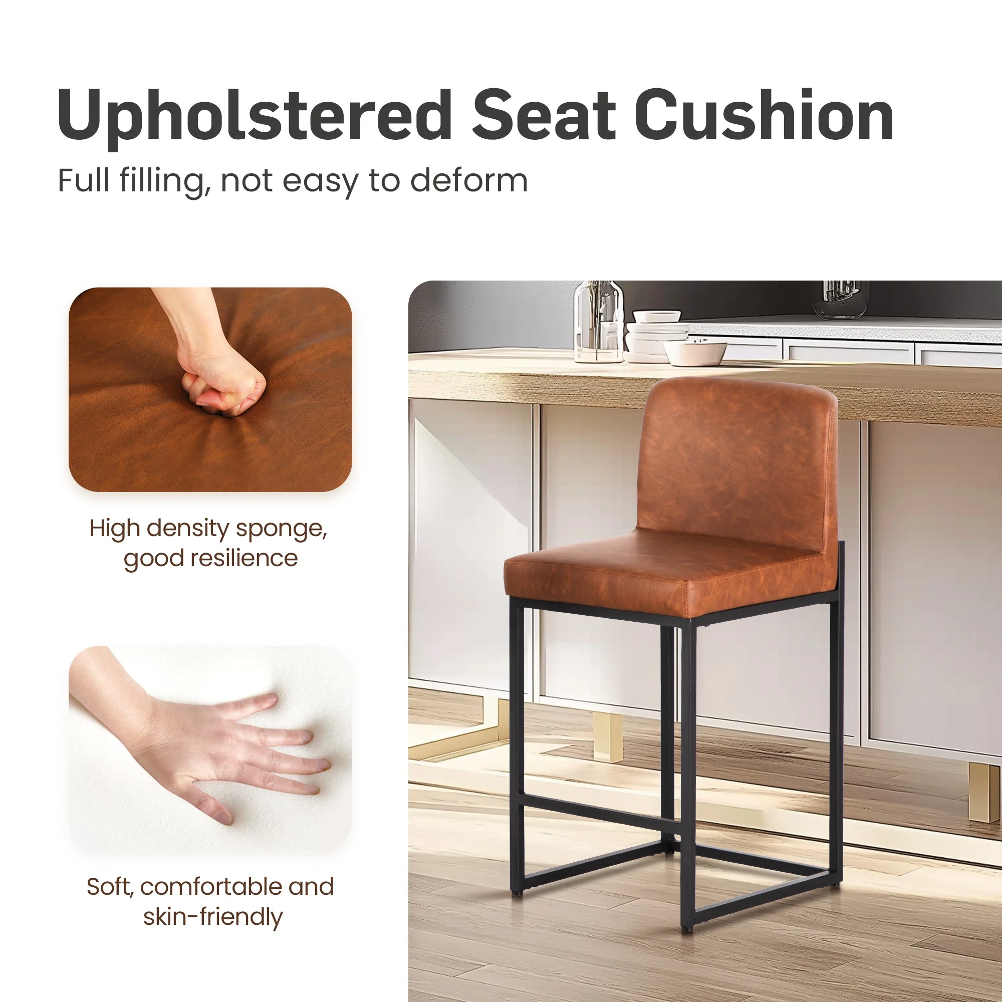 Sophia & William 24" PU Leather Counter Height Bar Stool with Backrest-Set of 4-Brown