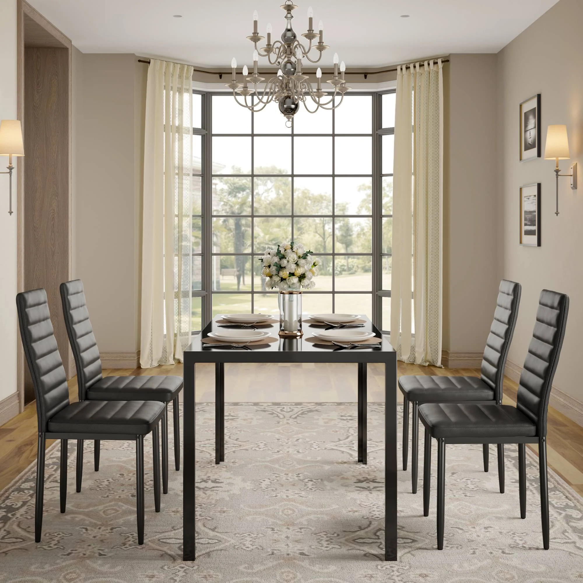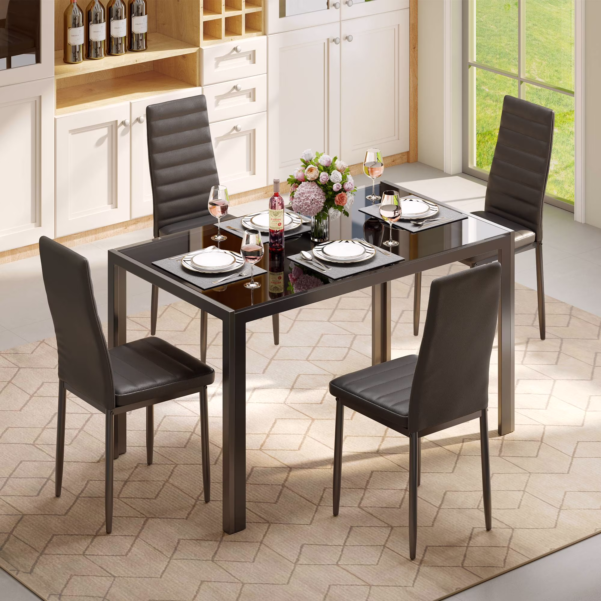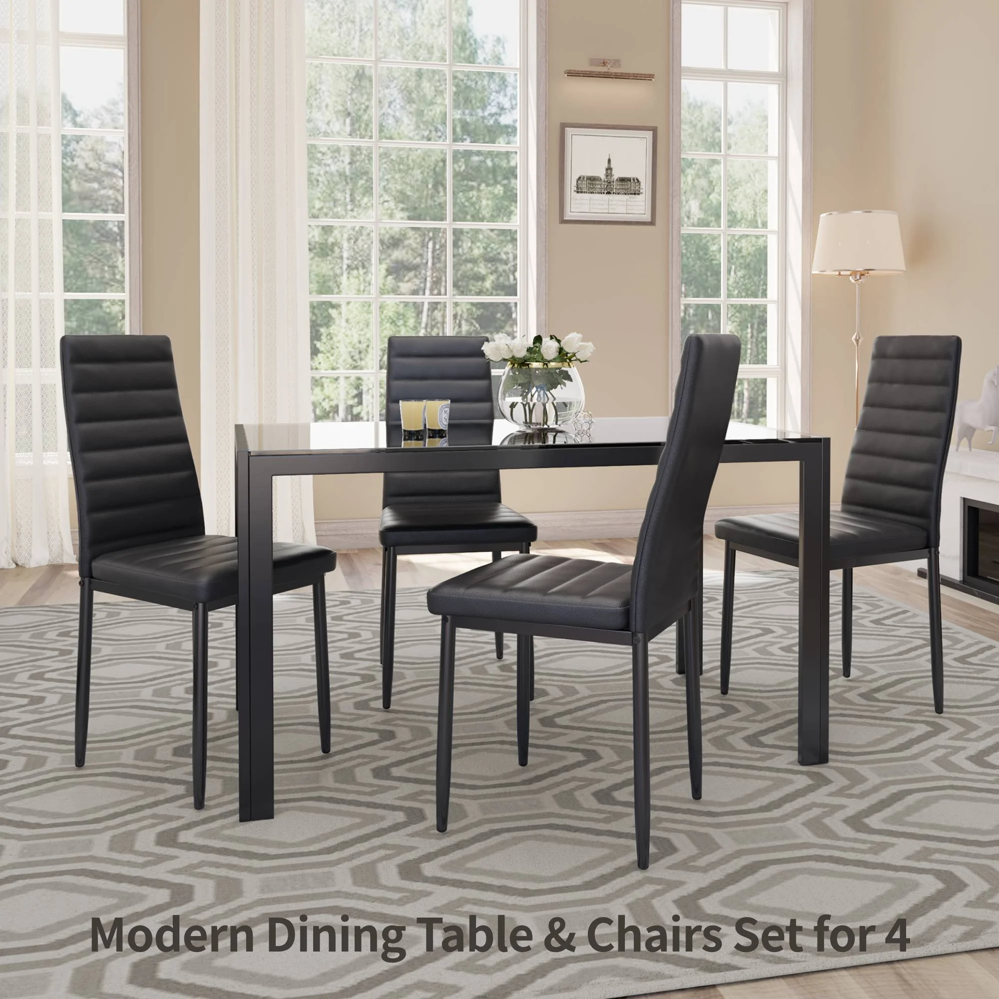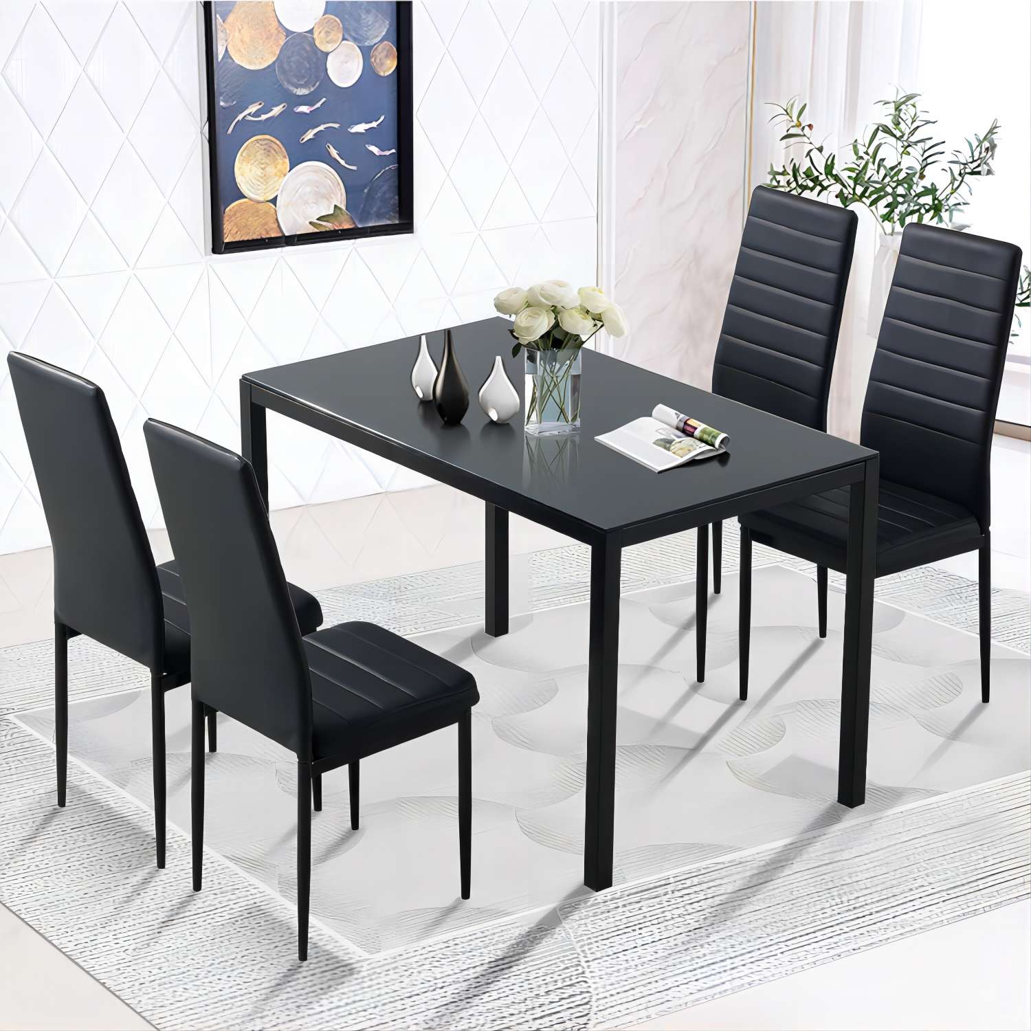 Aiho 5-Piece Rectanglar Kitchen Dining Table Set for 4 for Dining Room, Black, Black