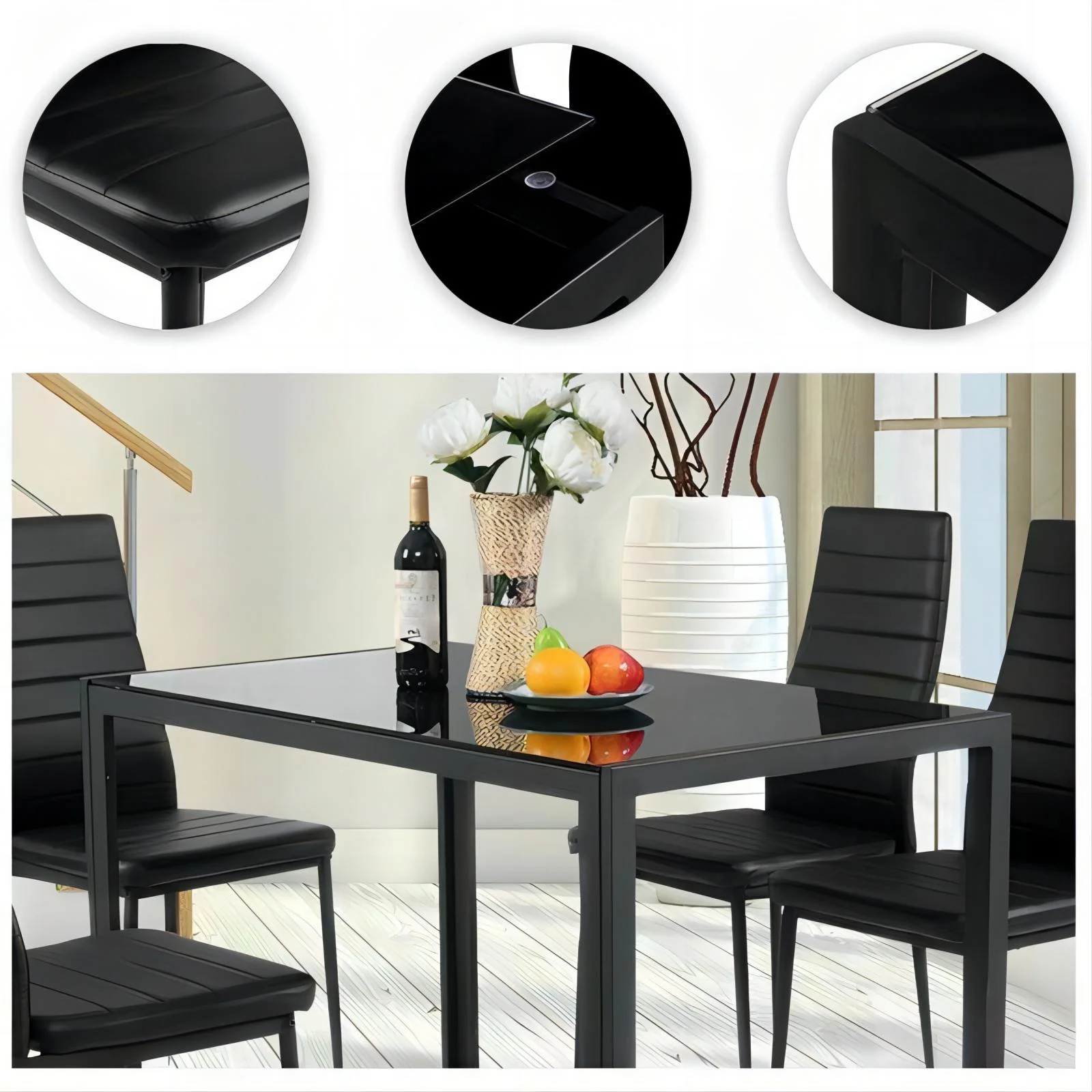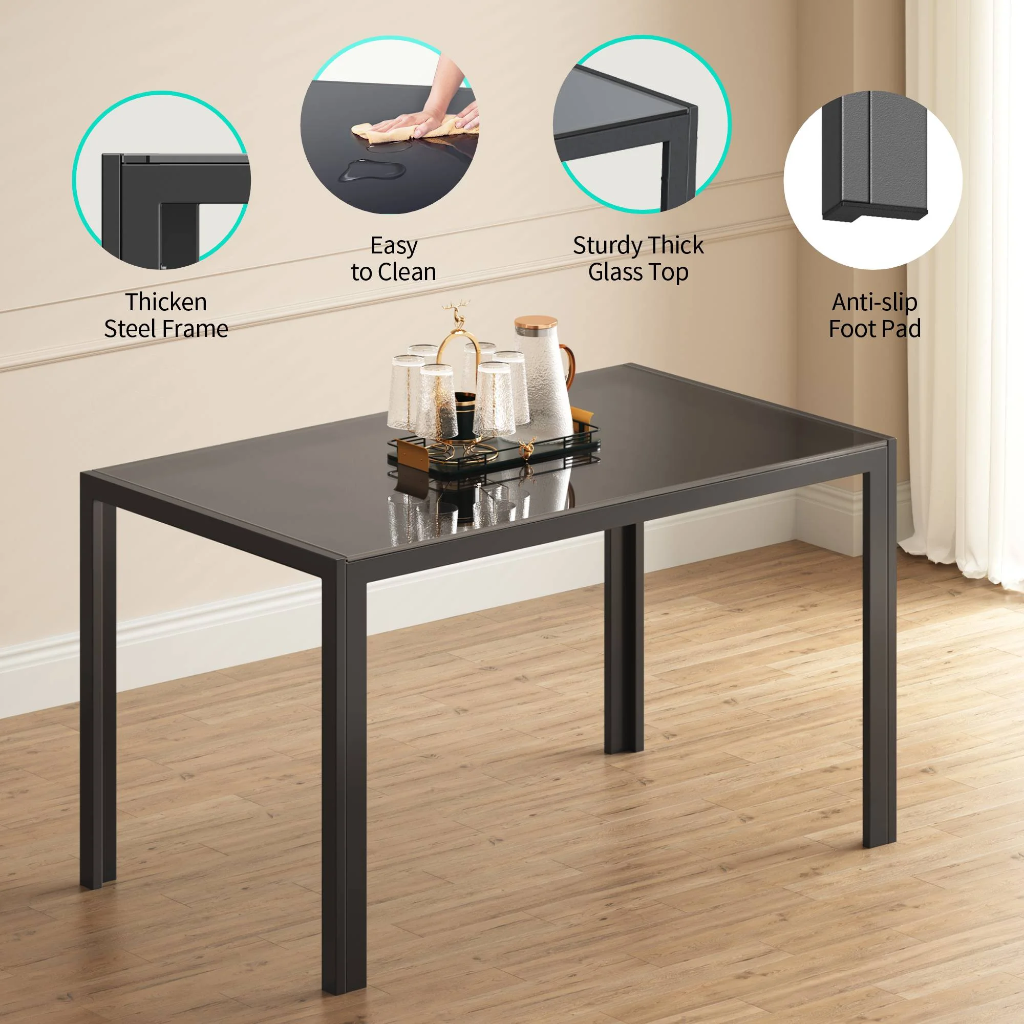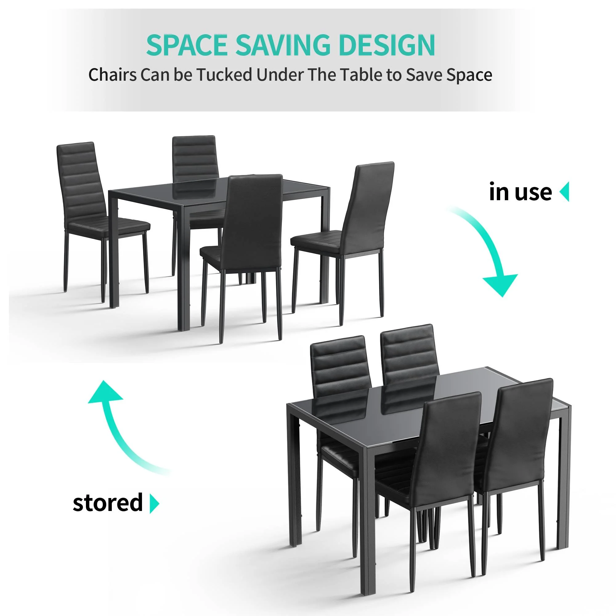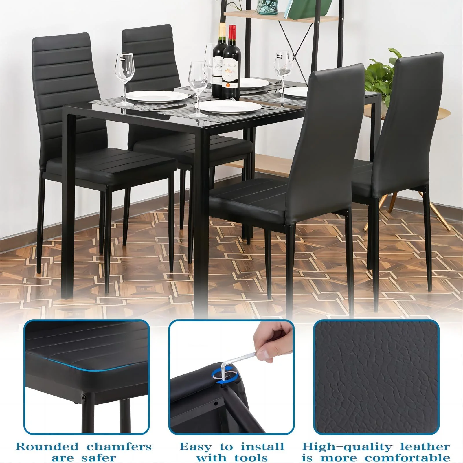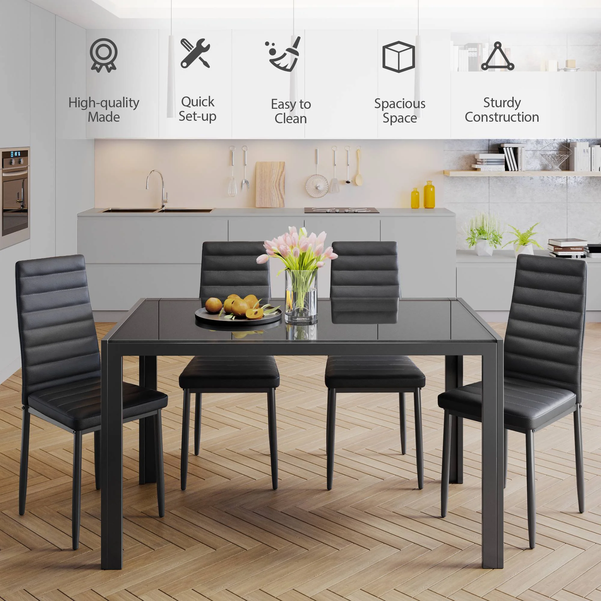 Aiho 5-Piece Rectanglar Kitchen Dining Table Set for 4 for Dining Room, Black, Black