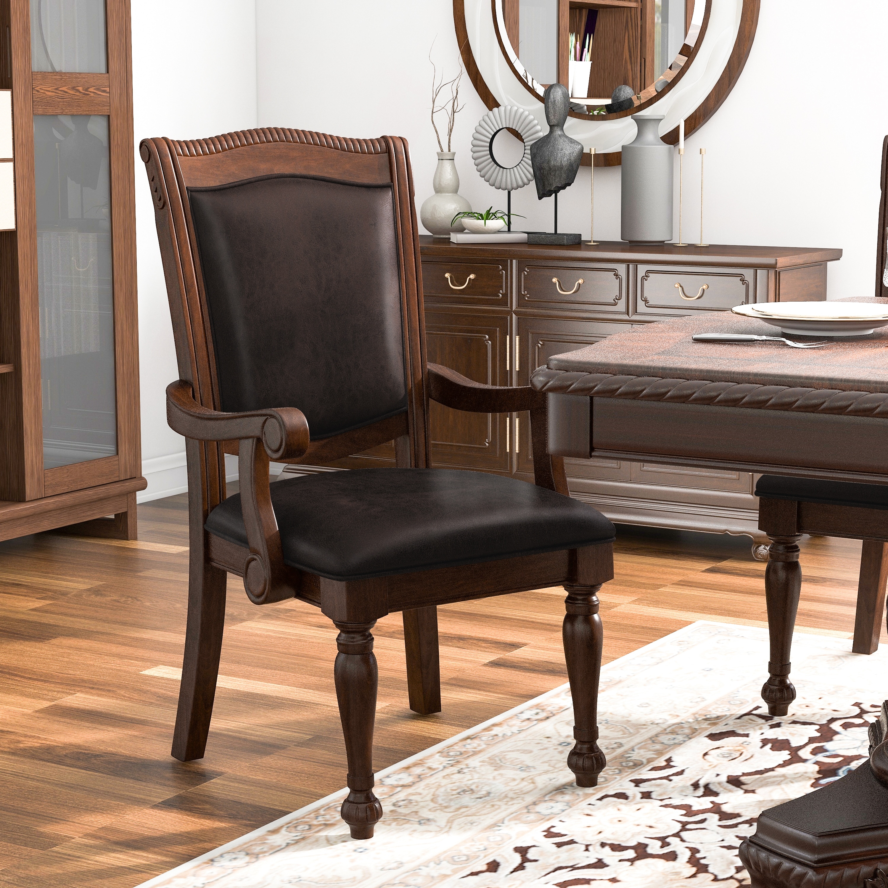 Furniture of America Tima Traditional Faux Leather Dining Arm Chairs (Set of 2) by