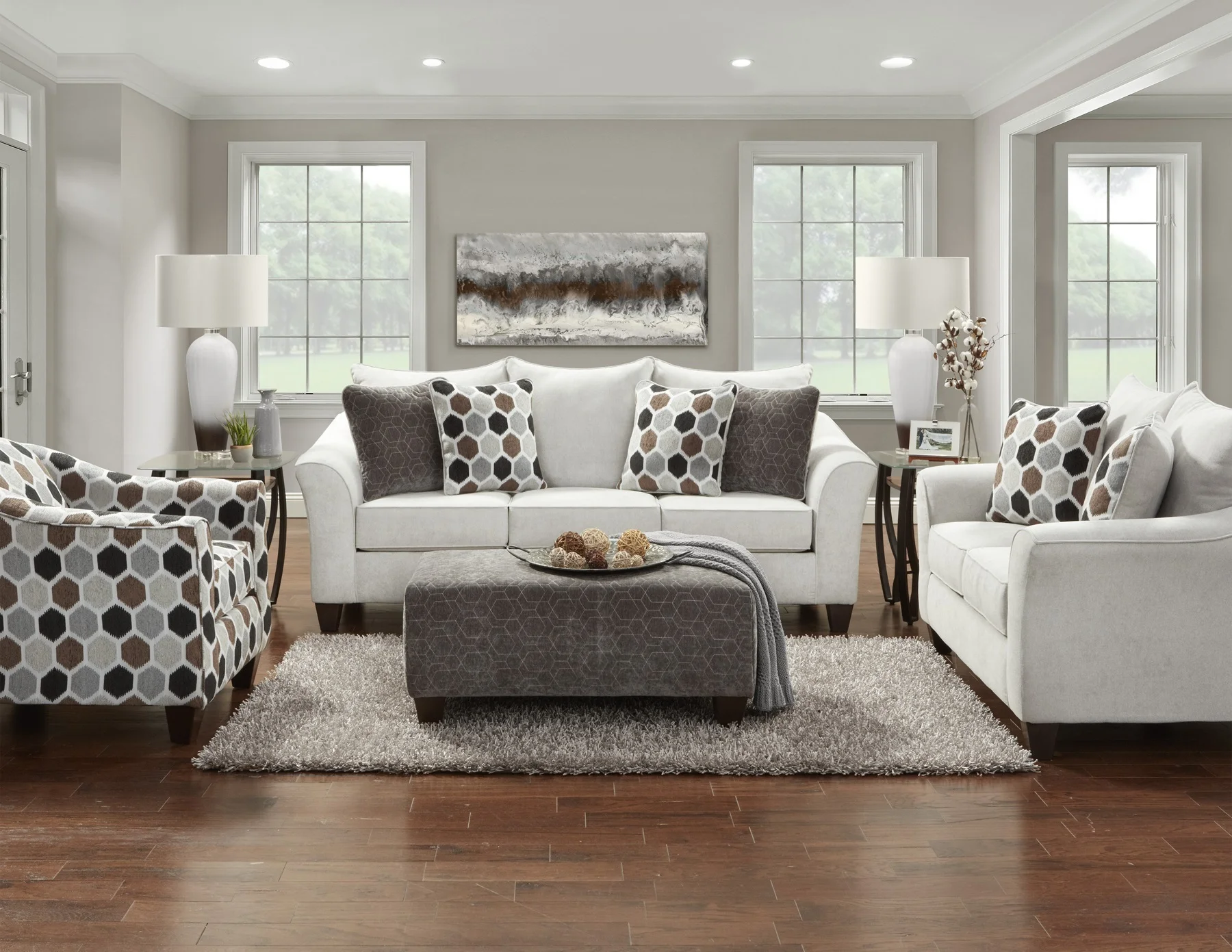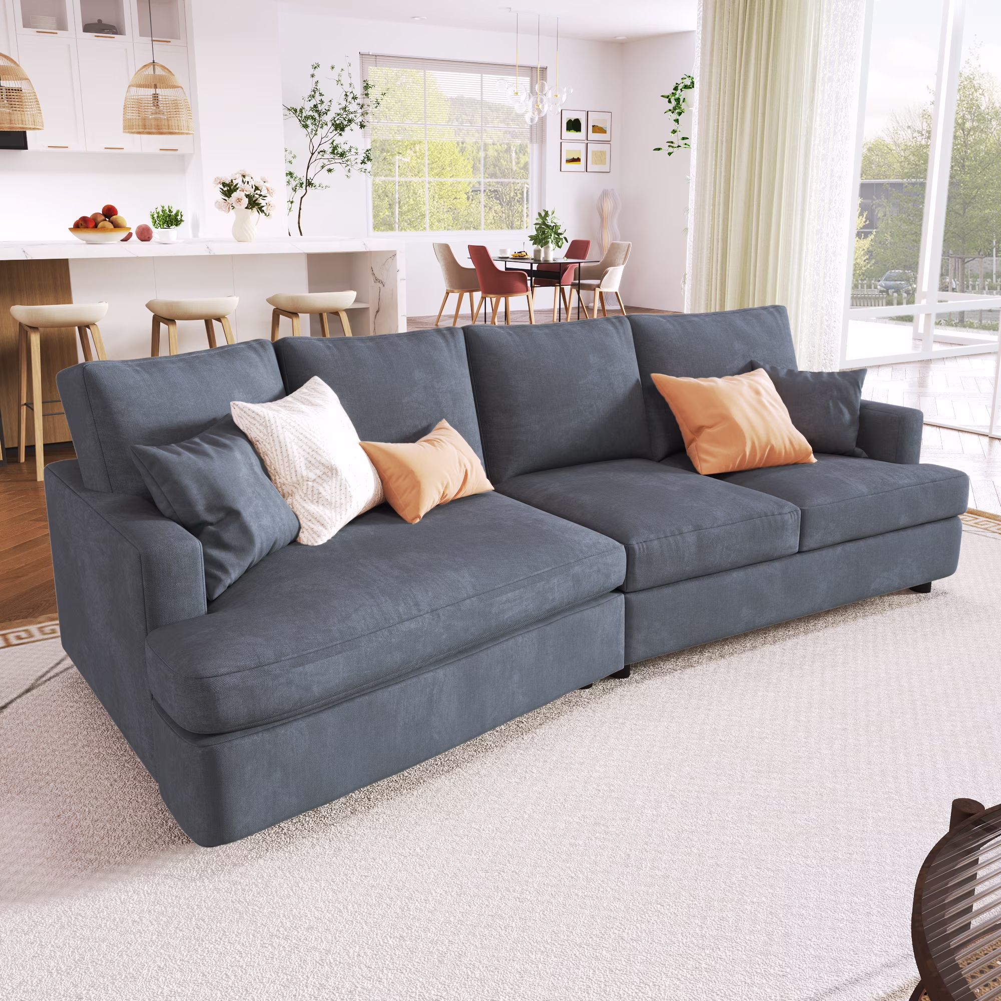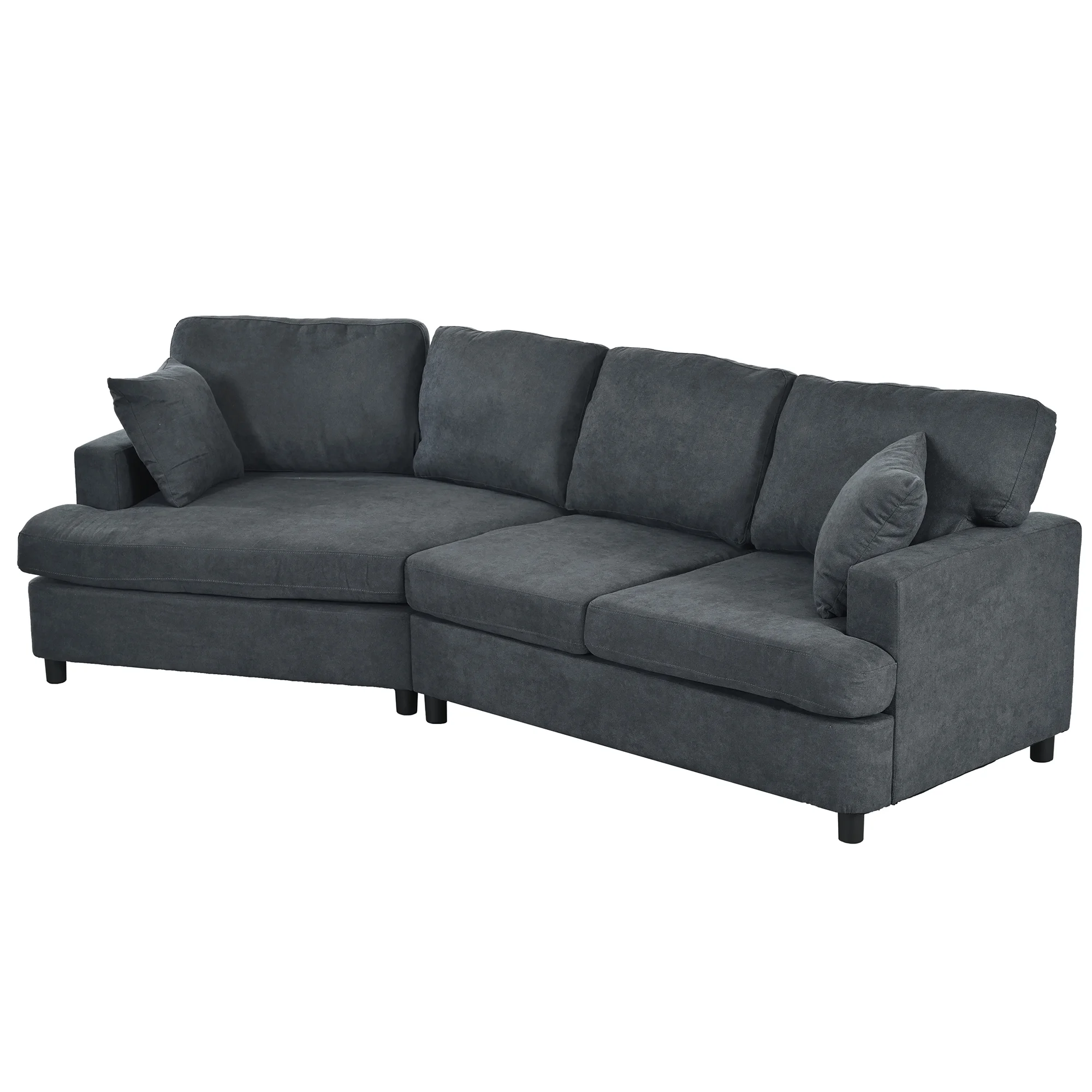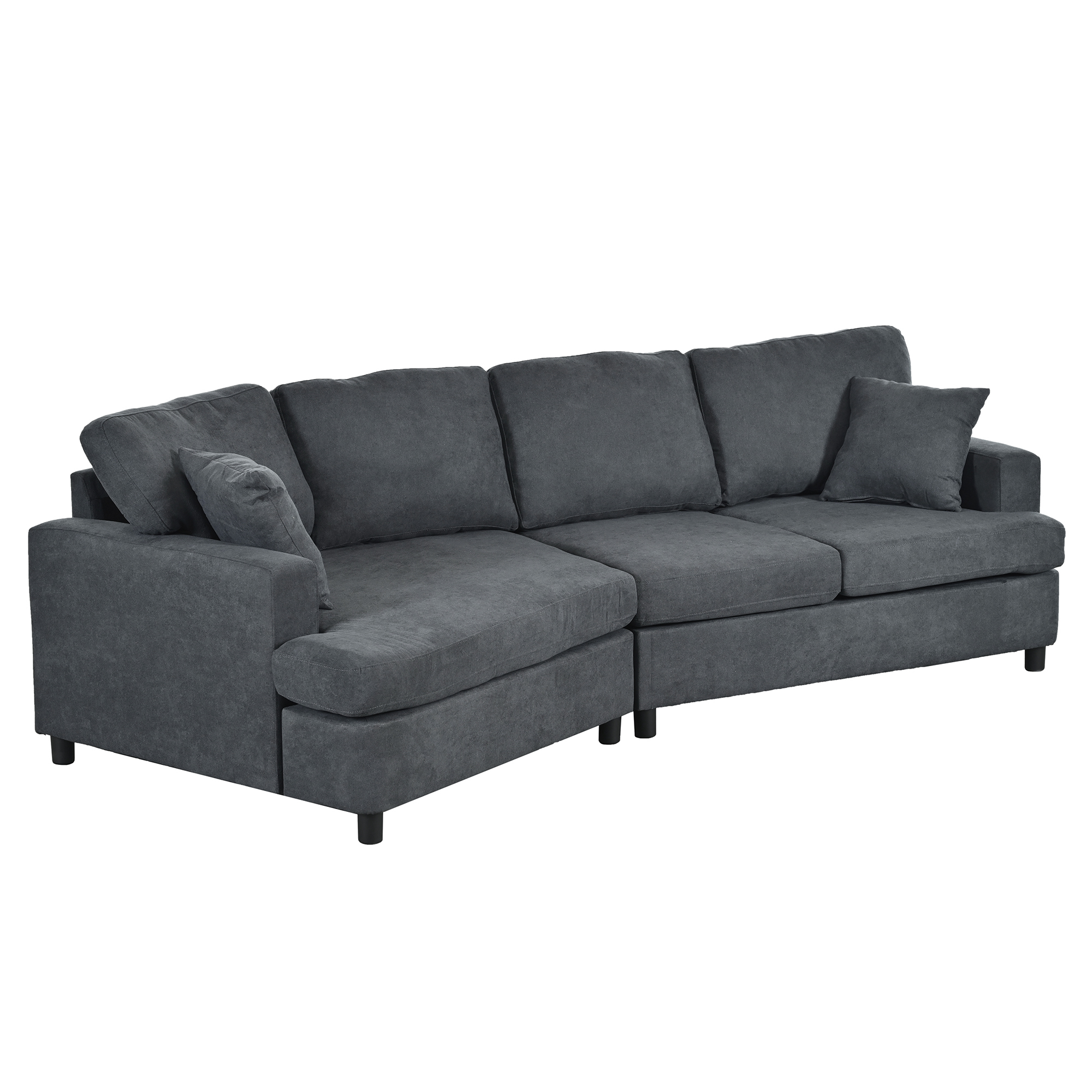 3 Seat Gray Streamlined Sofa with Removable Back and Seat Cushions and 2 pillows for Living Room and Office