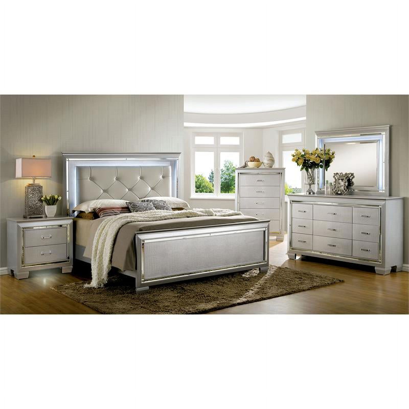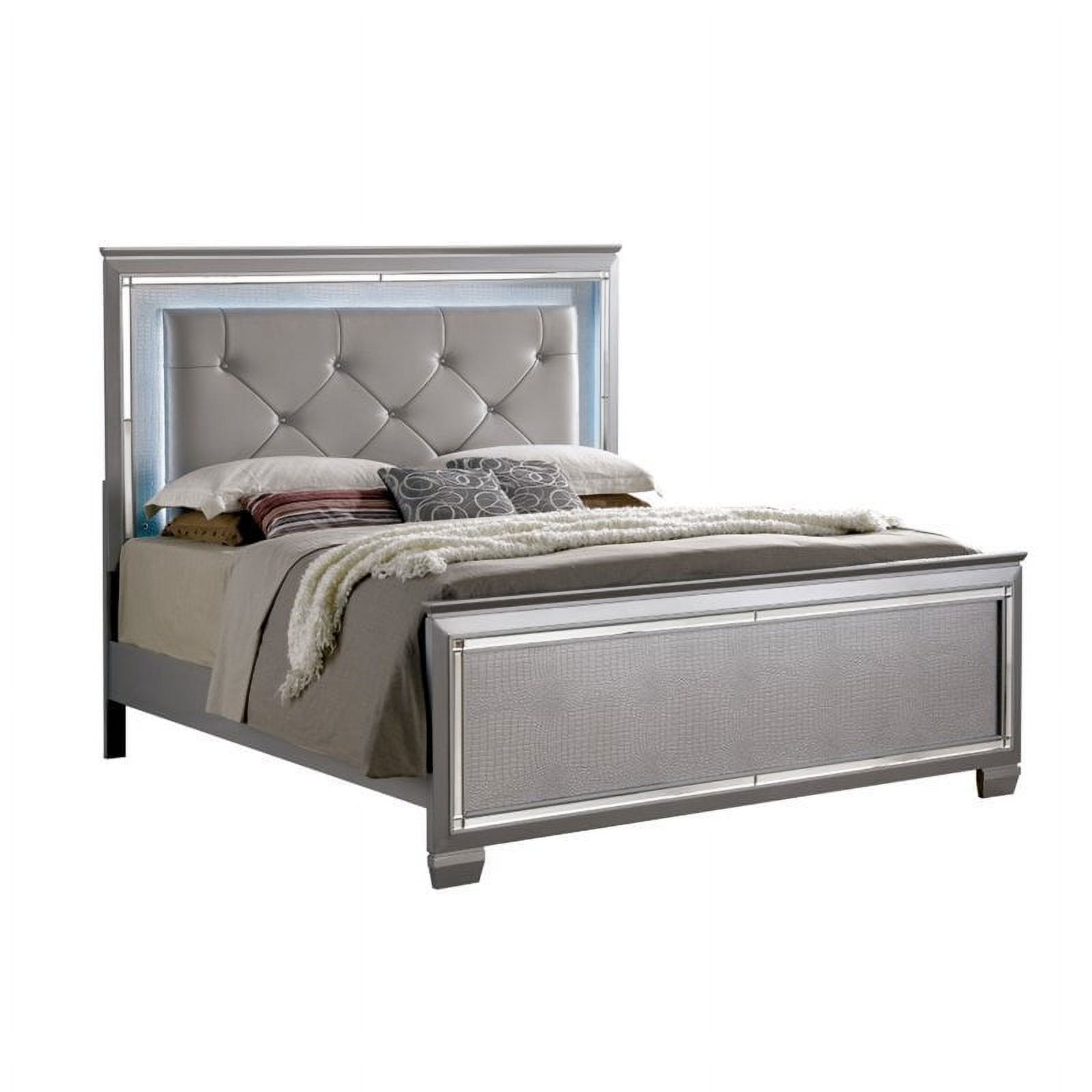 Furniture of America Rachel Faux Leather King LED Panel Bed in Silver