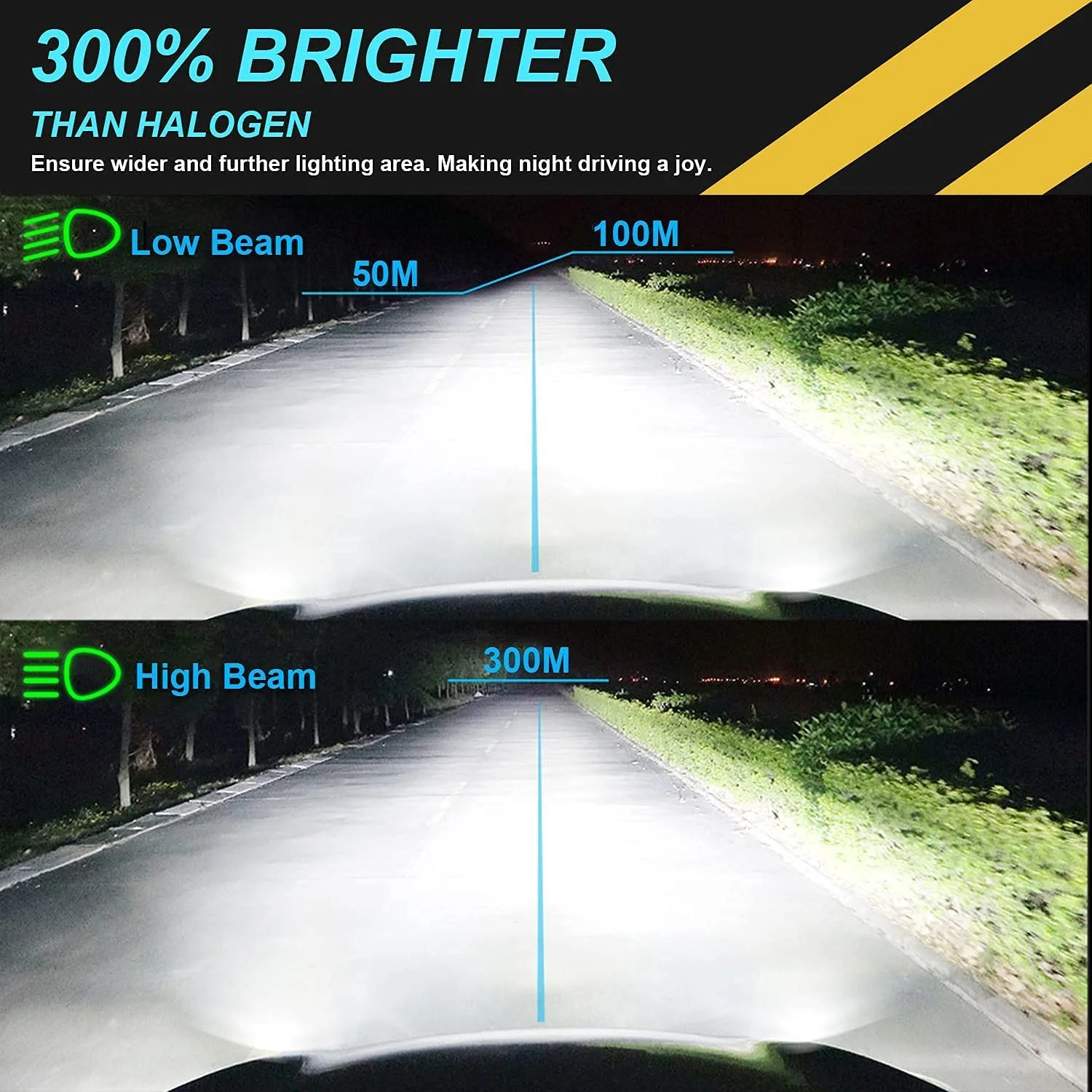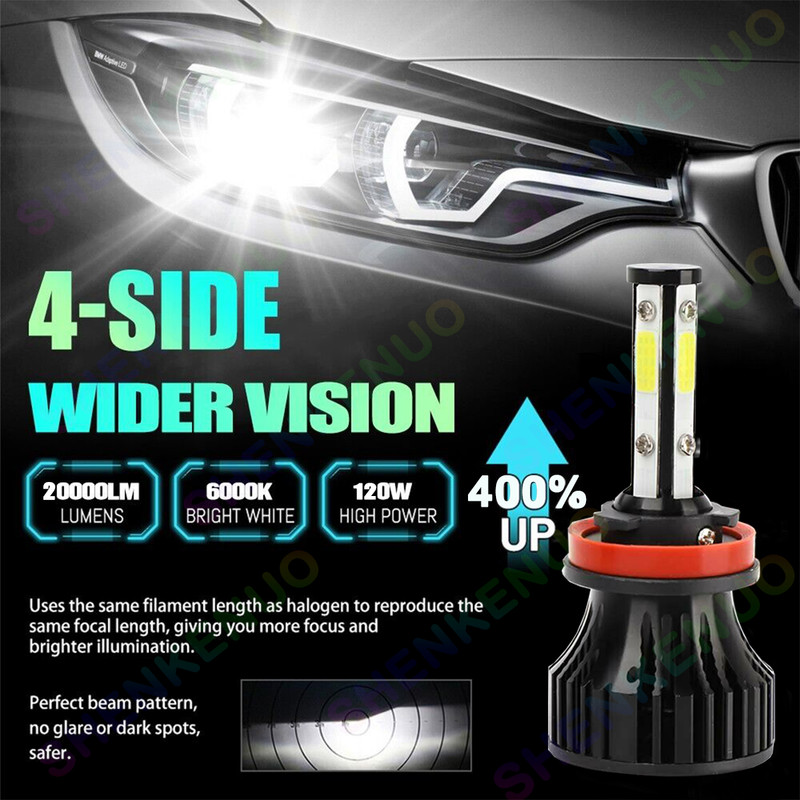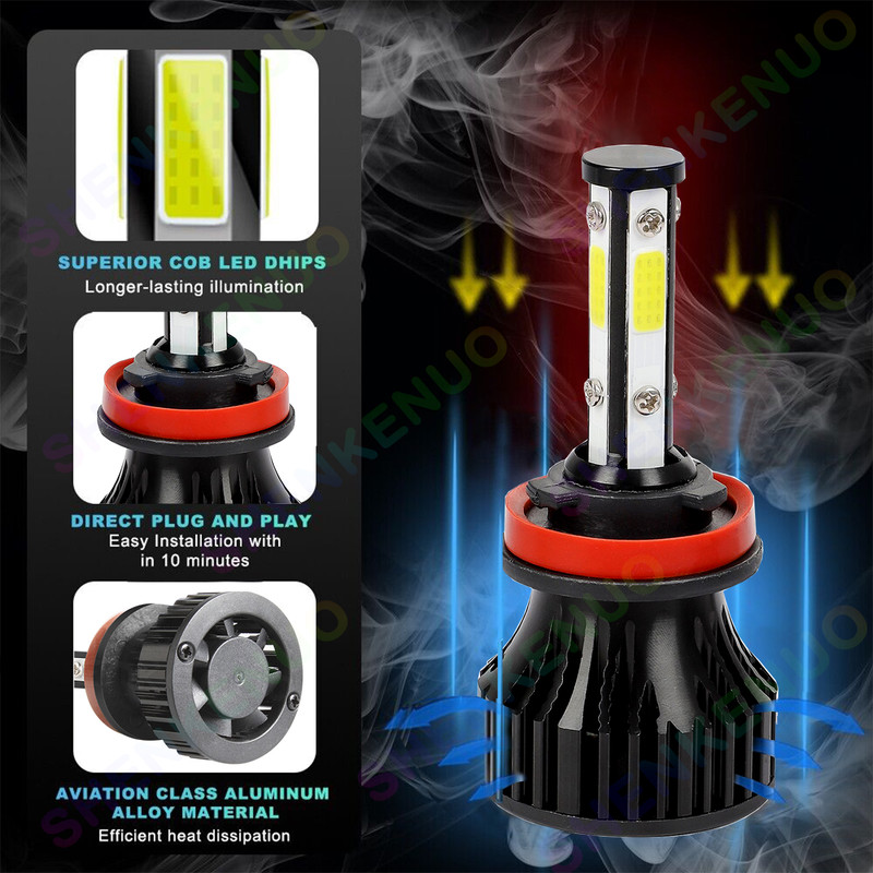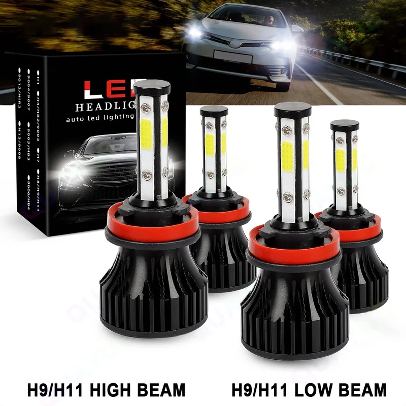 4-Side H9 H11 High/Low Beam Headlights for Nissan X-Trail 2015-2019 6000K White,4pc