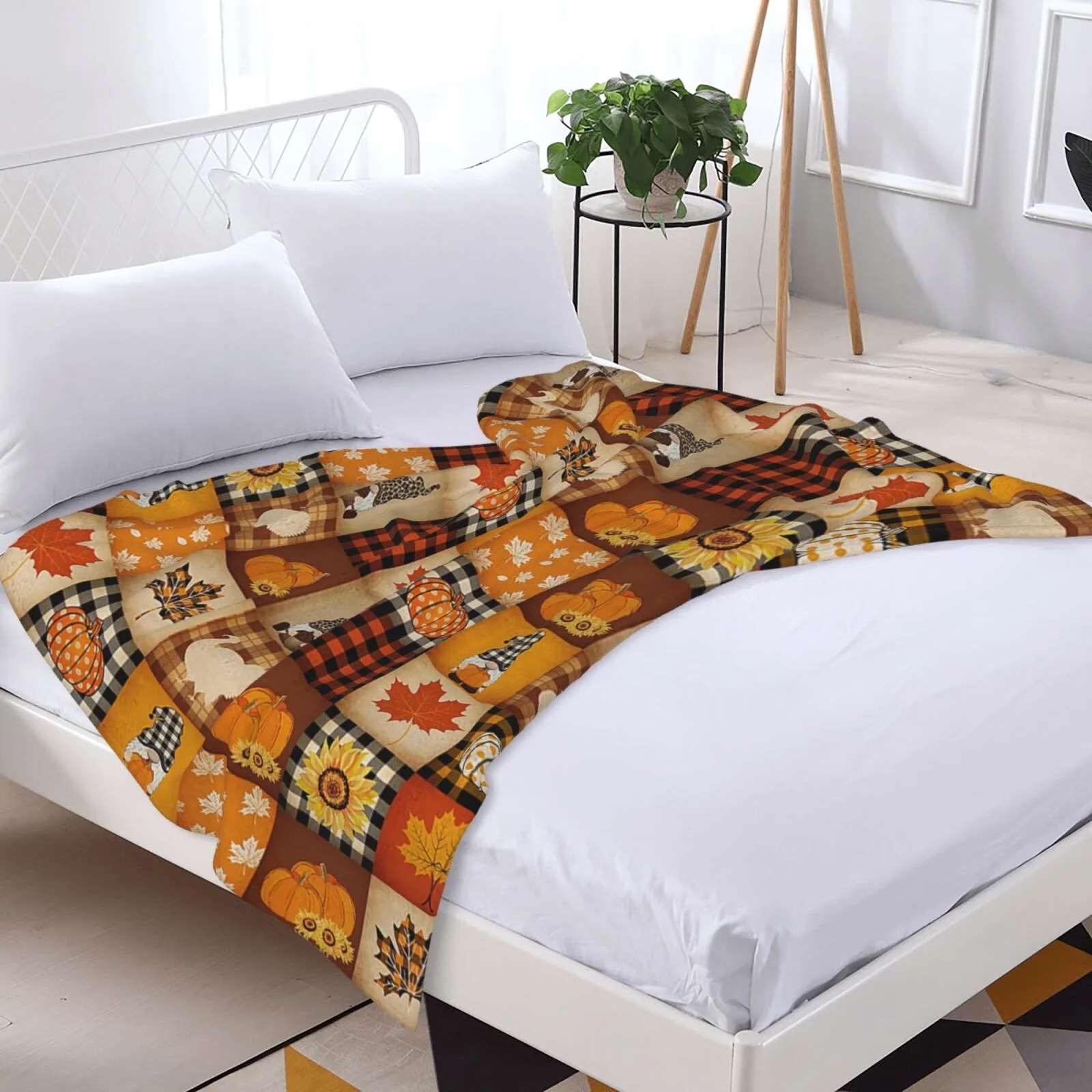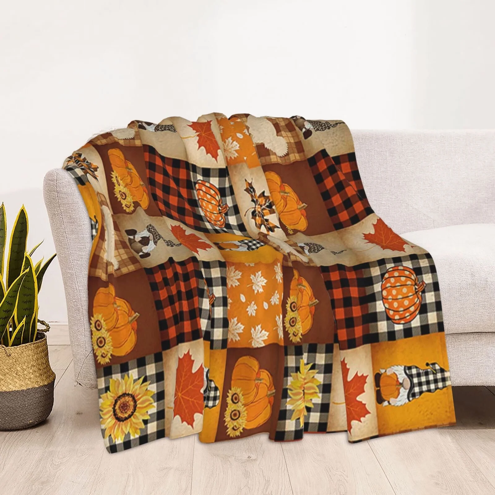 Thanksgiving Pumpkin Blanket Soft Flannel Throw Blankets Pumpkin Turkey Maple Leaf Gnome Plaid Blanket Plush Microfiber Blankets 50 X 40 Inch