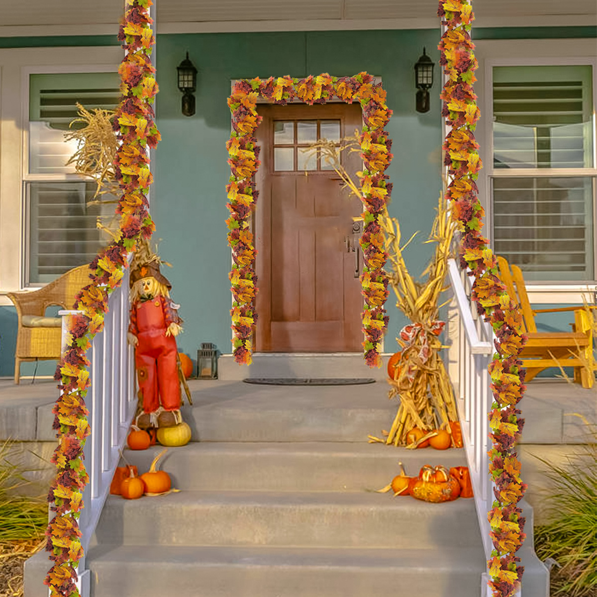 Fall Garland Maple Leaf, 5.56Ft/Piece Hanging Vine Garland Artificial Autumn Foliage Garland Thanksgiving Decor for Home Wedding Fireplace Party Christmas 2-Pack