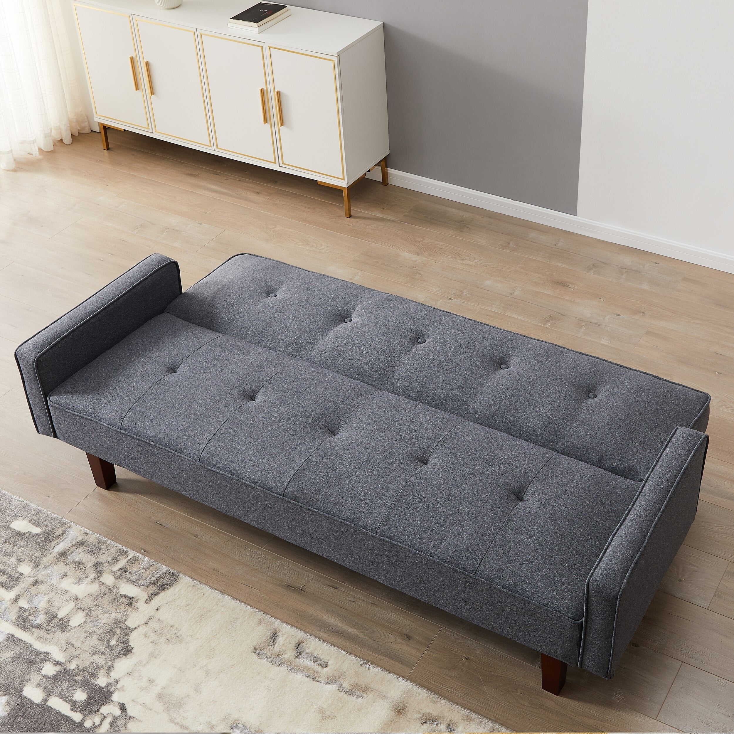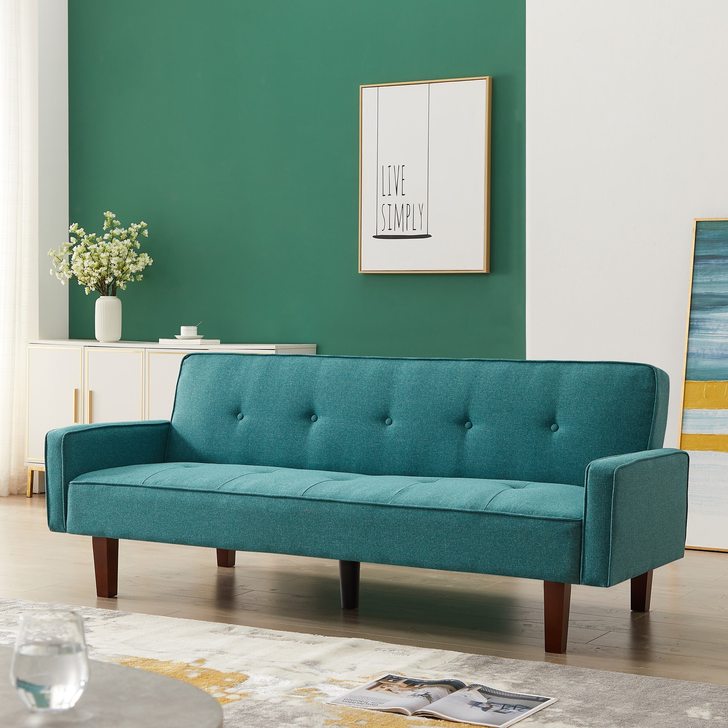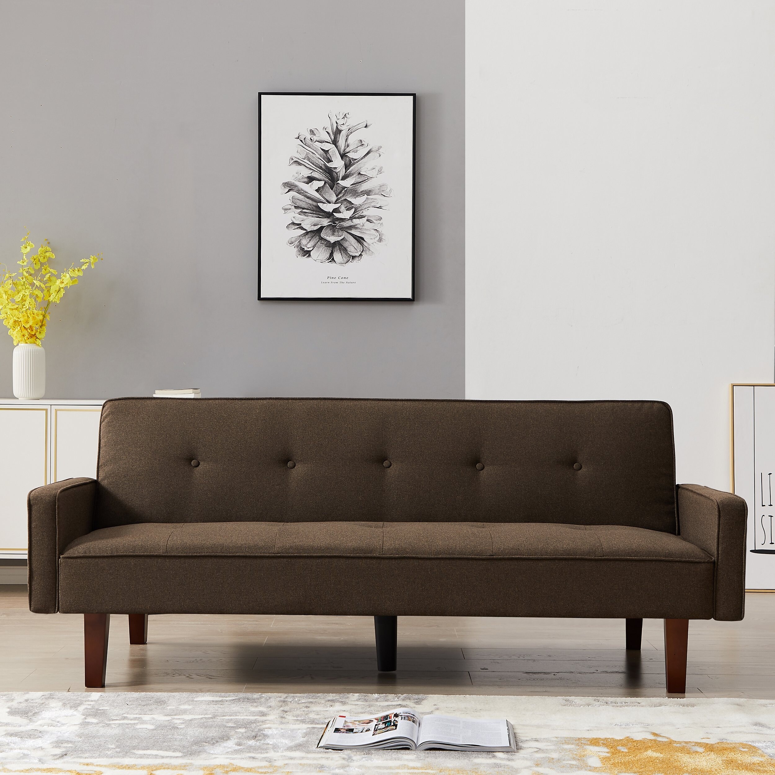 KINWELL 75-inch Modern Square Arm Futon Sleeper Sofa Brown Wood, Foam