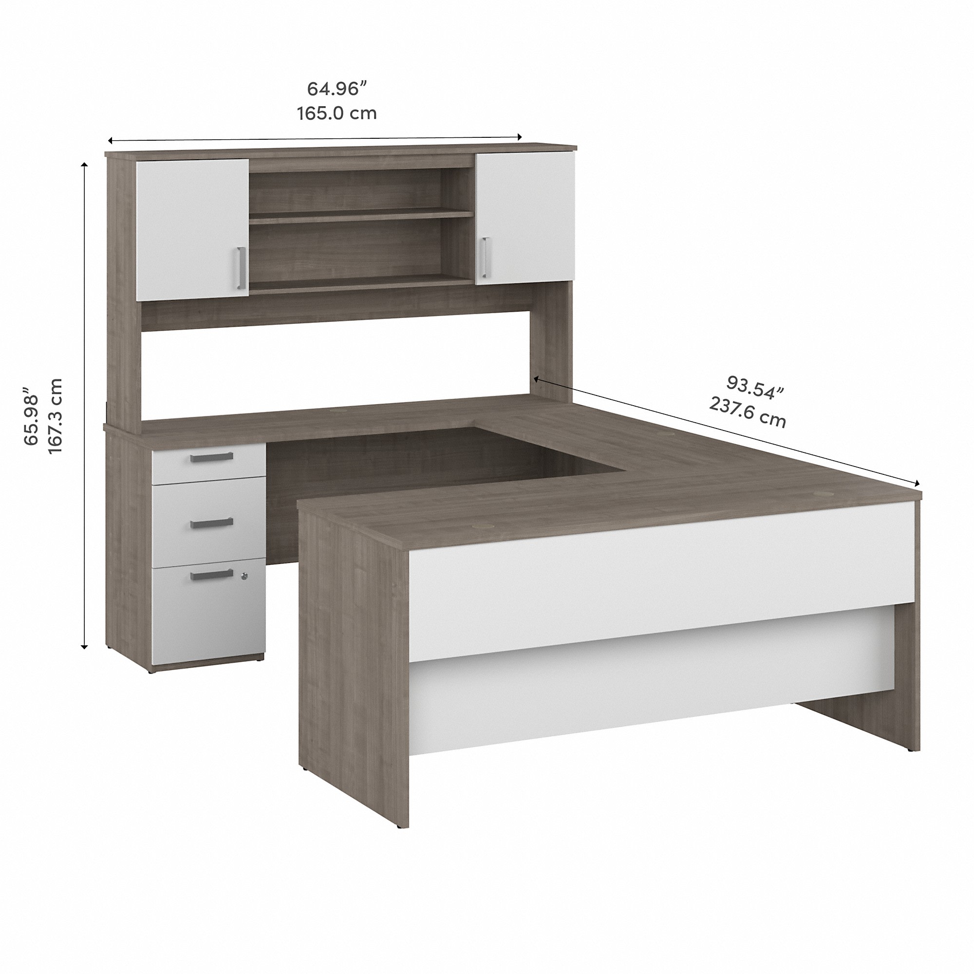 Bestar Ridgeley 65"W U-Shaped Computer Desk With Hutch, Silver Maple/Pure White