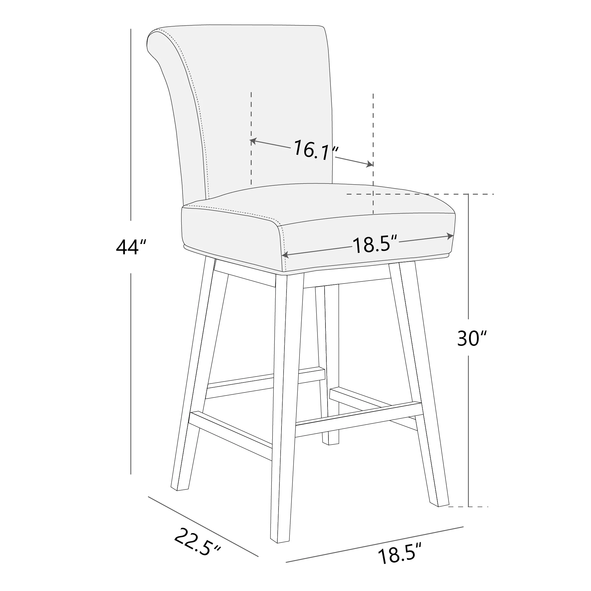 CHITA 30 in Upholstered Swivel Counter Bar Stools with Back&Wood Legs Set of 2, Faux Leather in Dark Blue