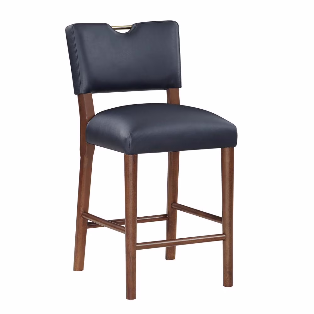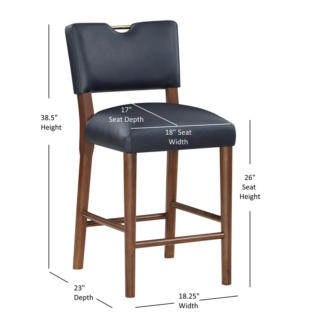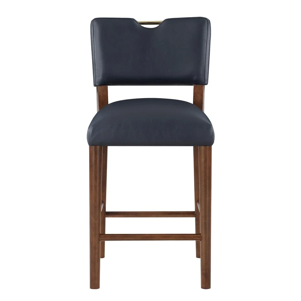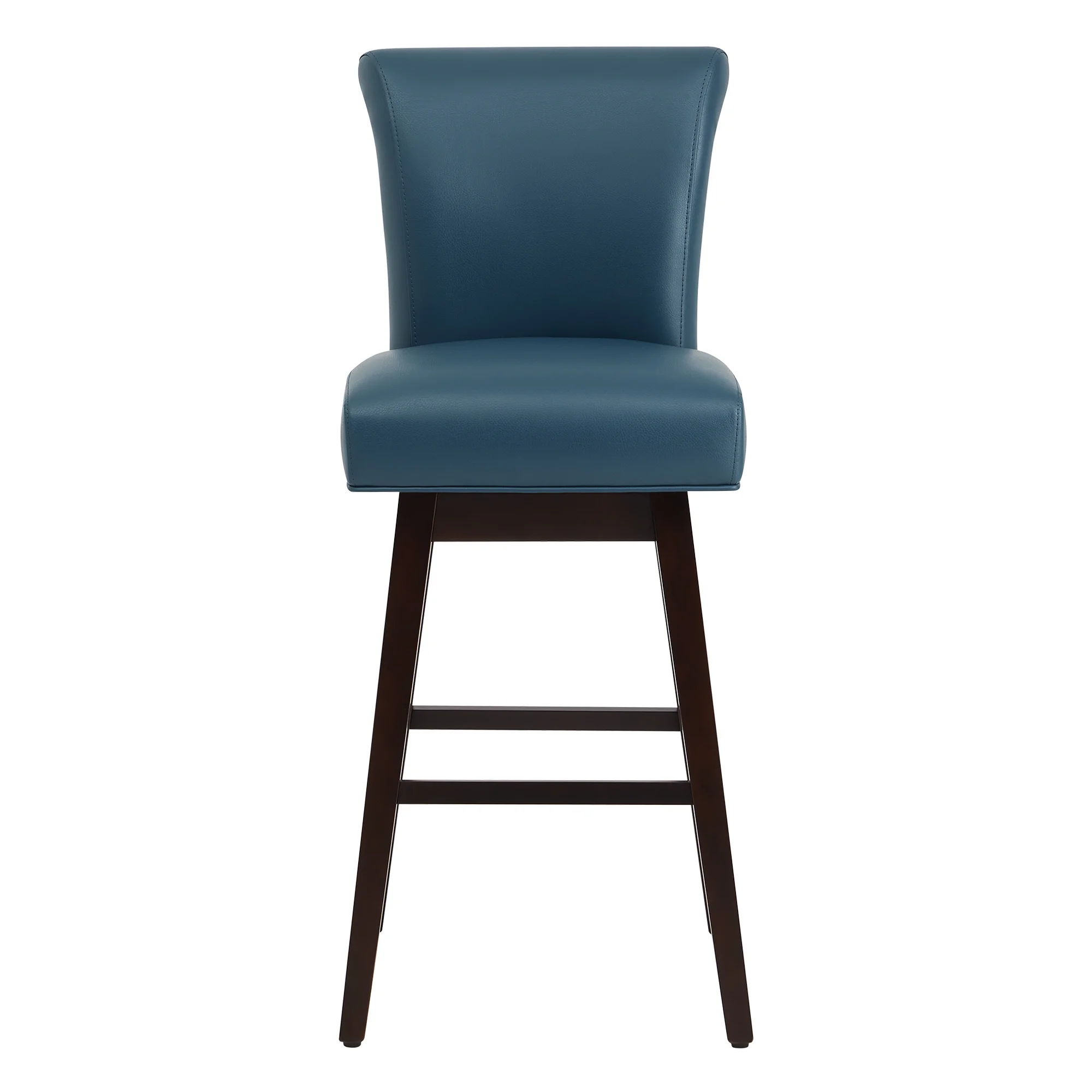 Comfort Pointe Bonito 26" Faux Leather & Wood Counter Stool in Blue/Walnut