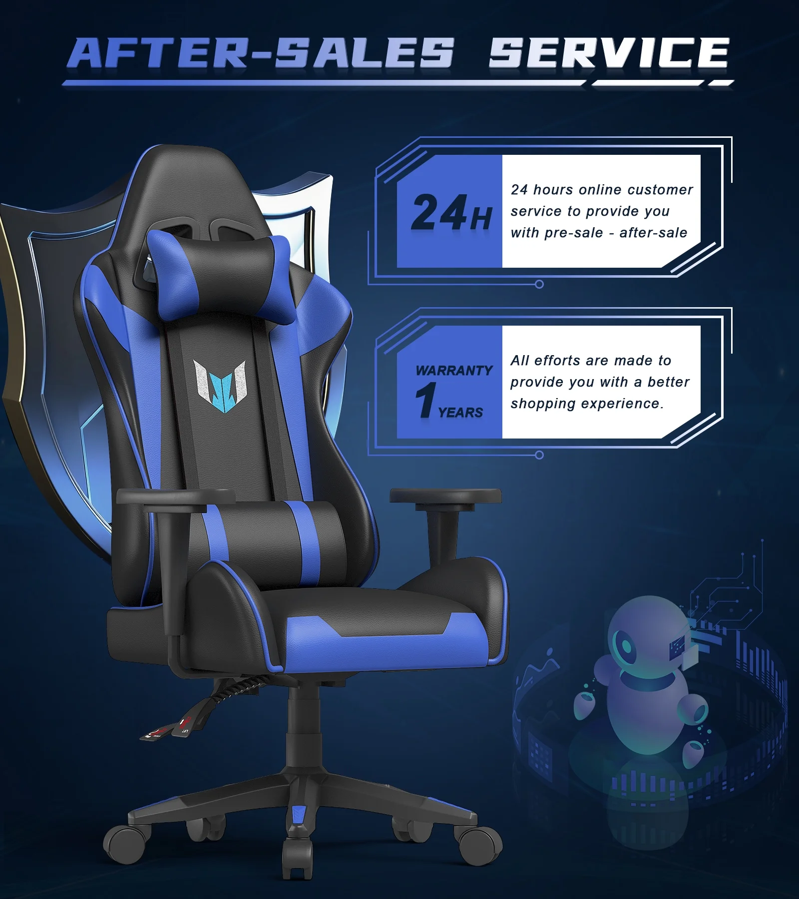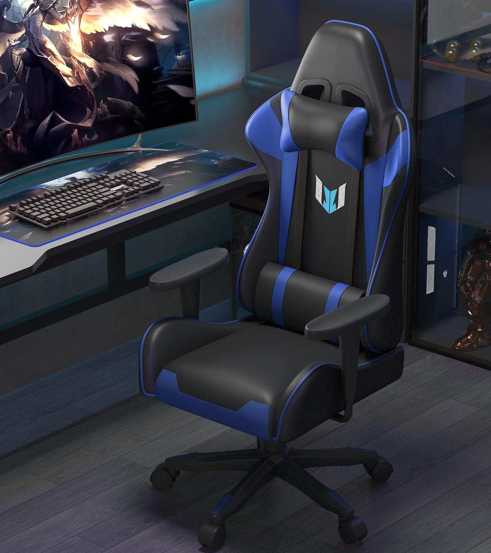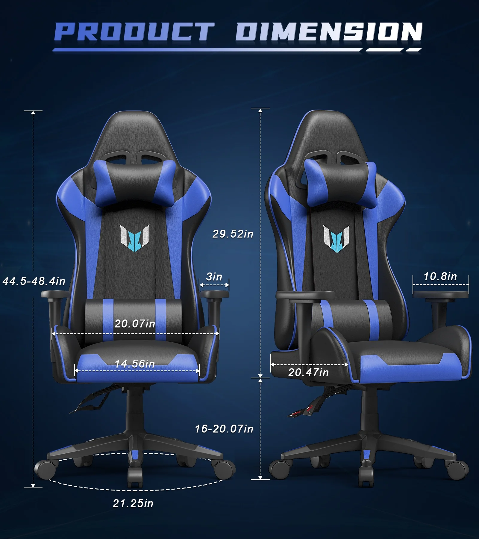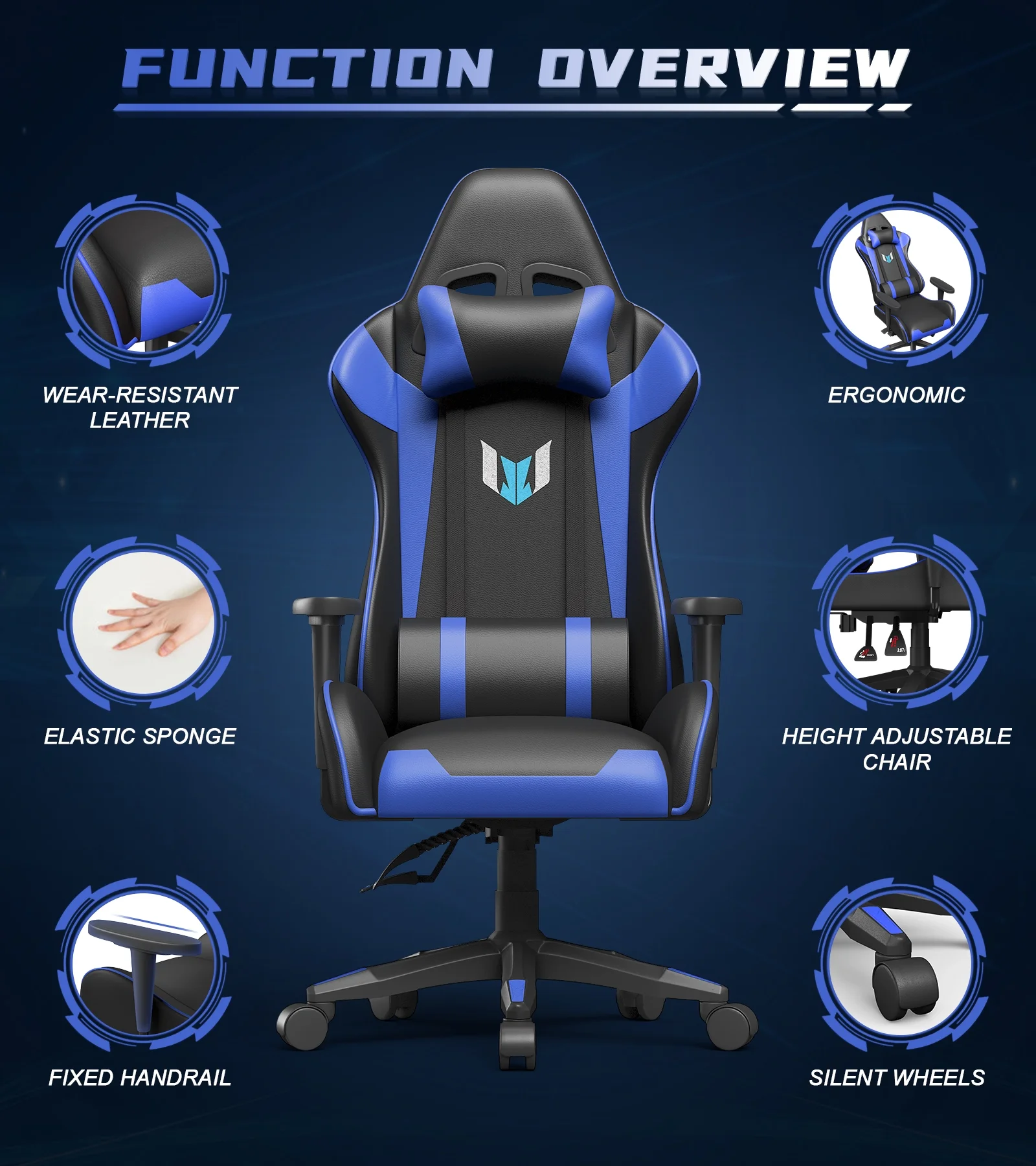 Bigzzia Gaming Chair Pu Leather Ergonomic Game Chair with Lumbar Support & Headrest, Blue