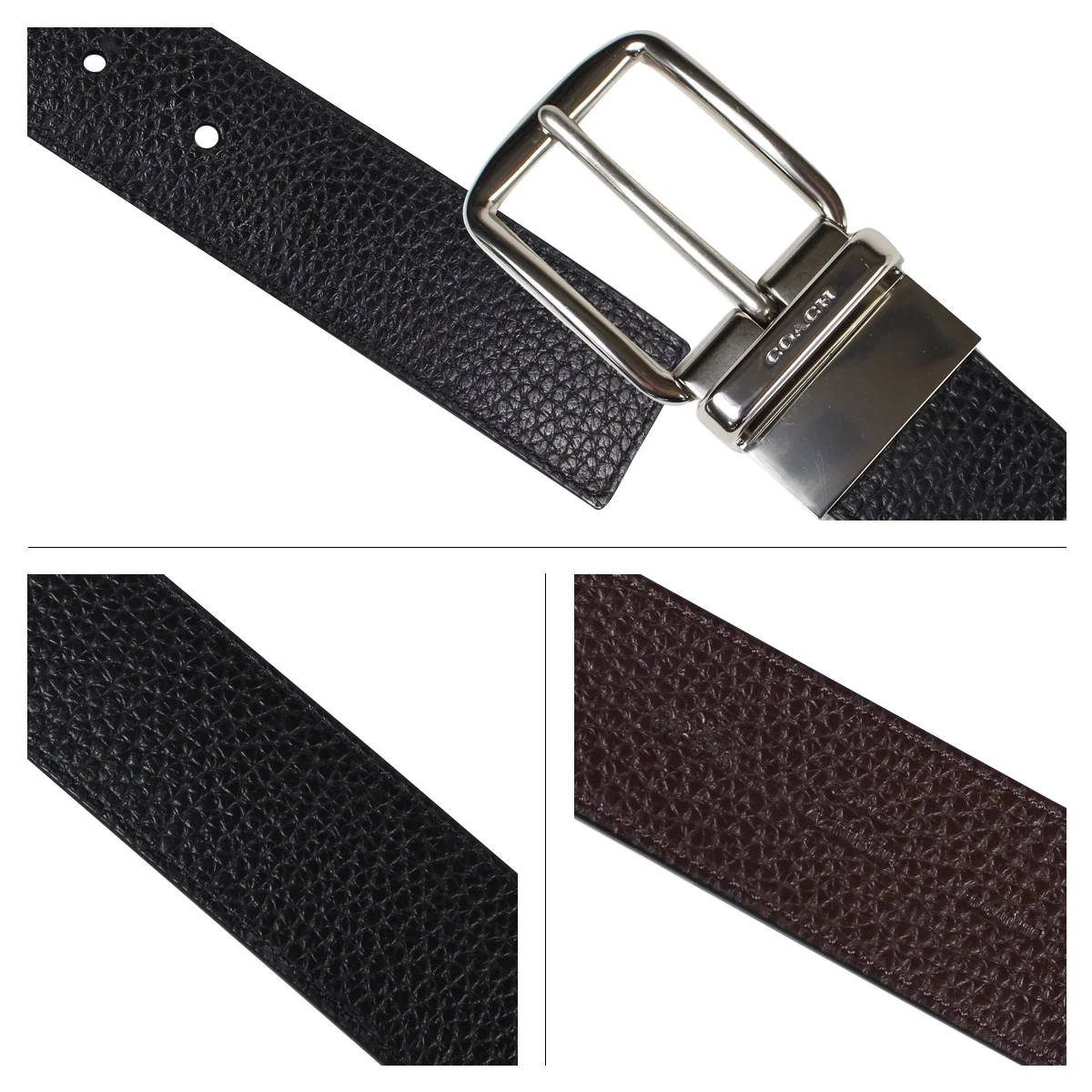 Coach Wide Harness Cut To Size Reversible Pebble Leather Belt, Black F64840