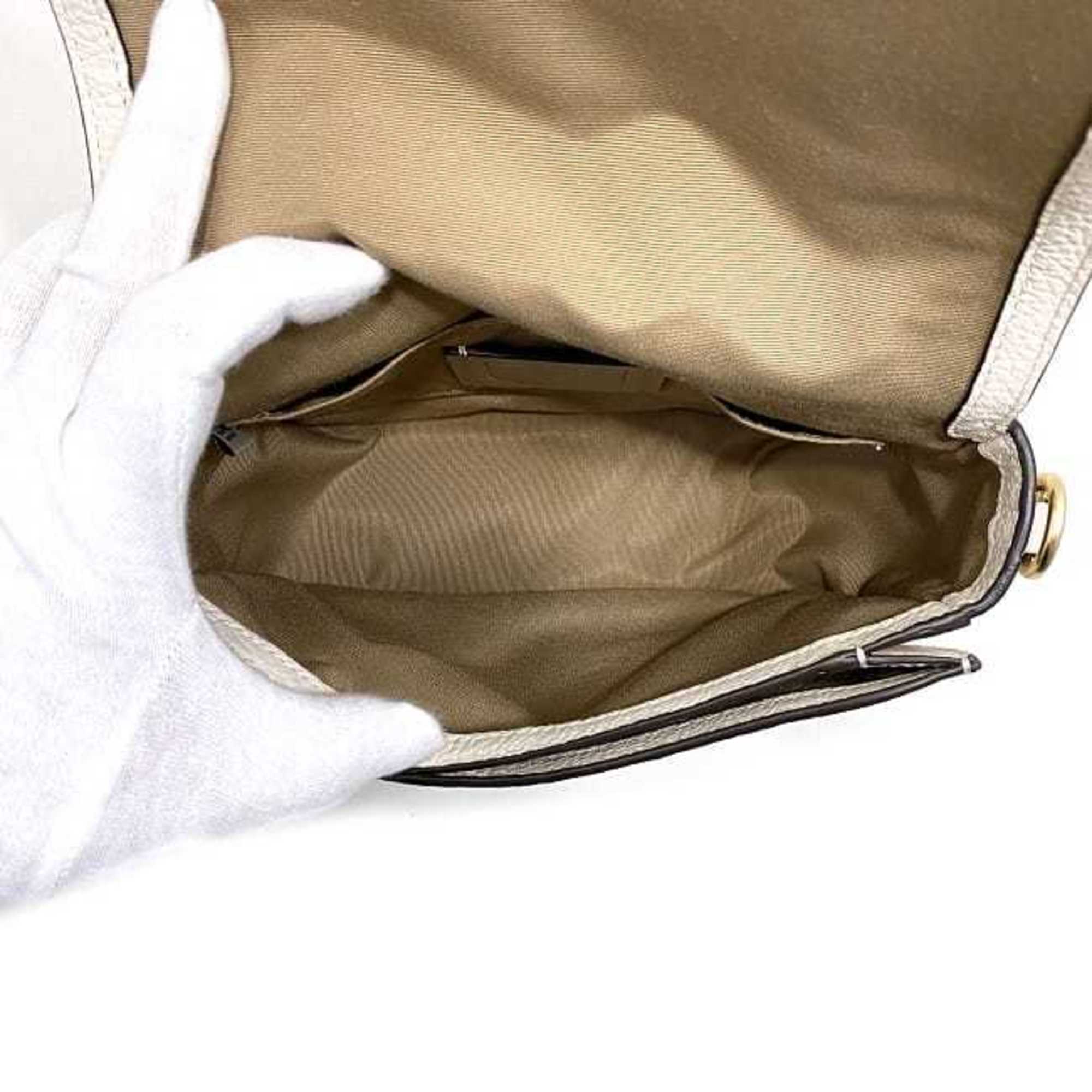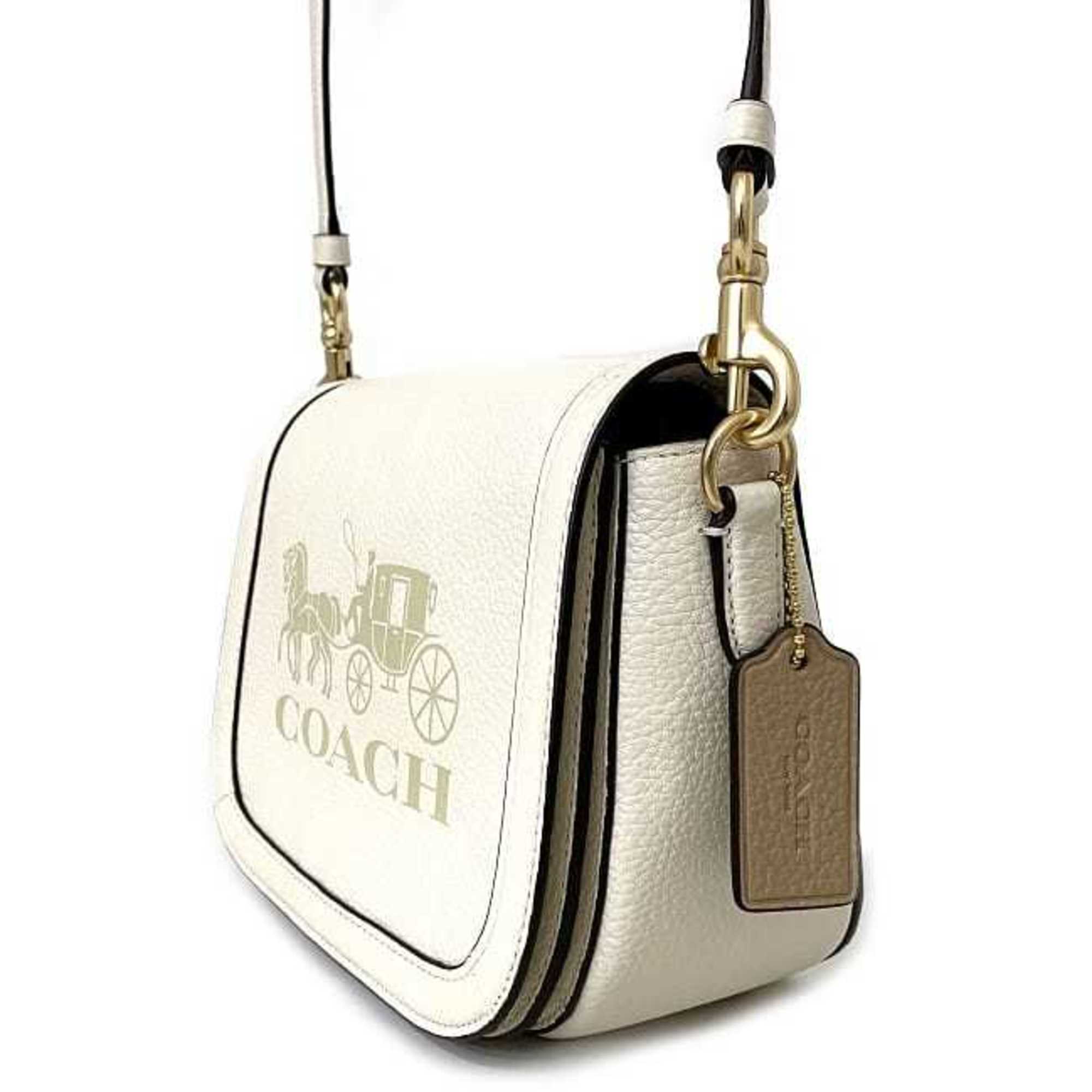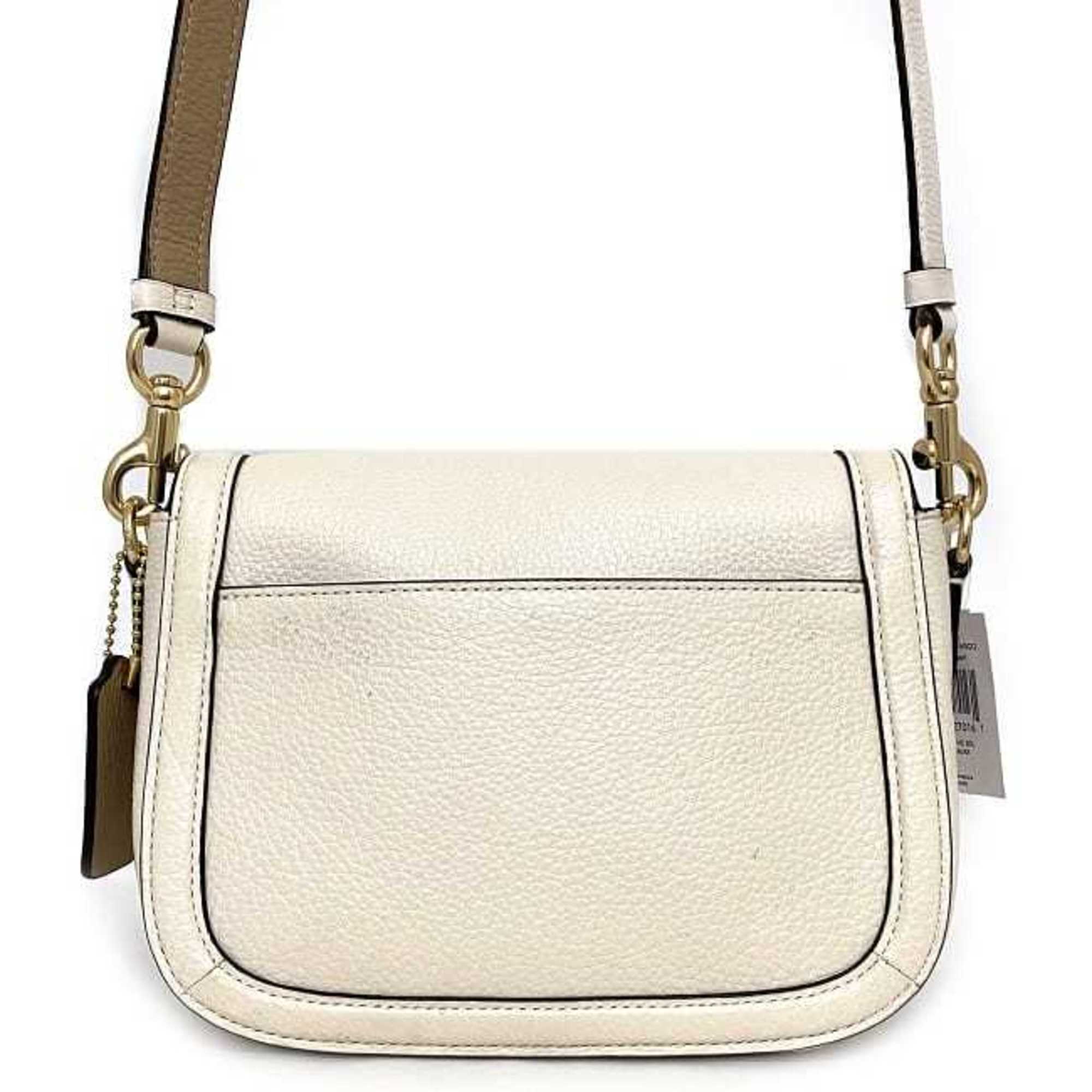 Pre-Owned Coach shoulder bag white beige horse and carriage C4058 leather COACH flap saddle (Like New)