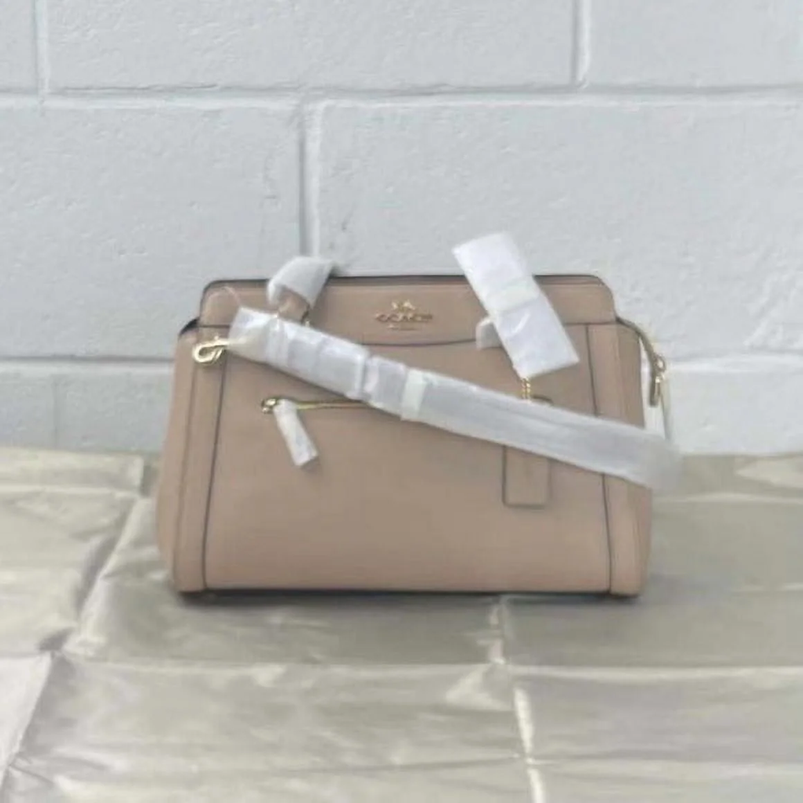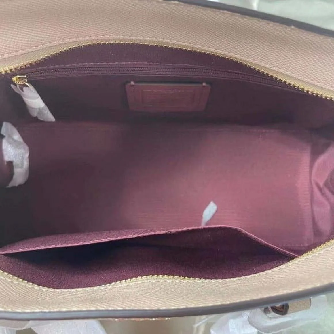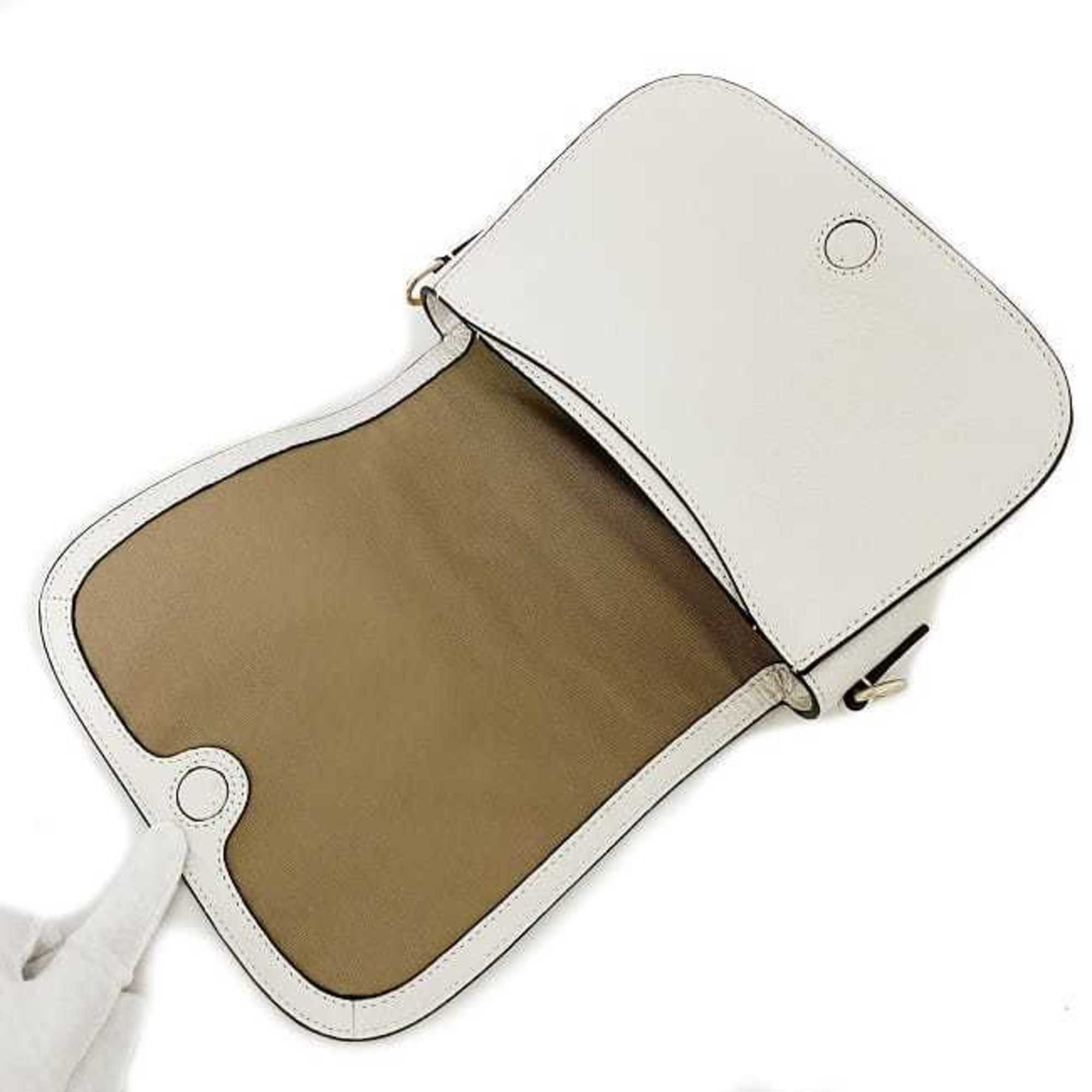 Pre-Owned Coach shoulder bag white beige horse and carriage C4058 leather COACH flap saddle (Like New)