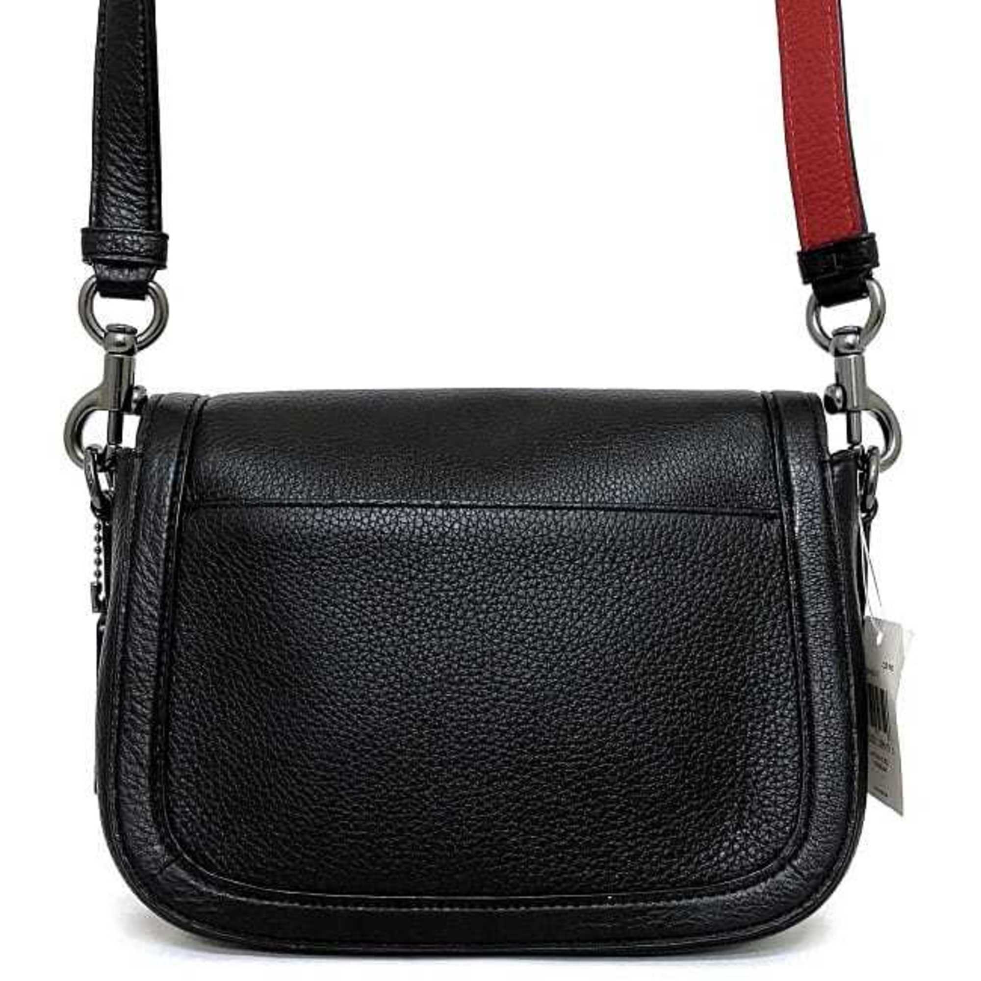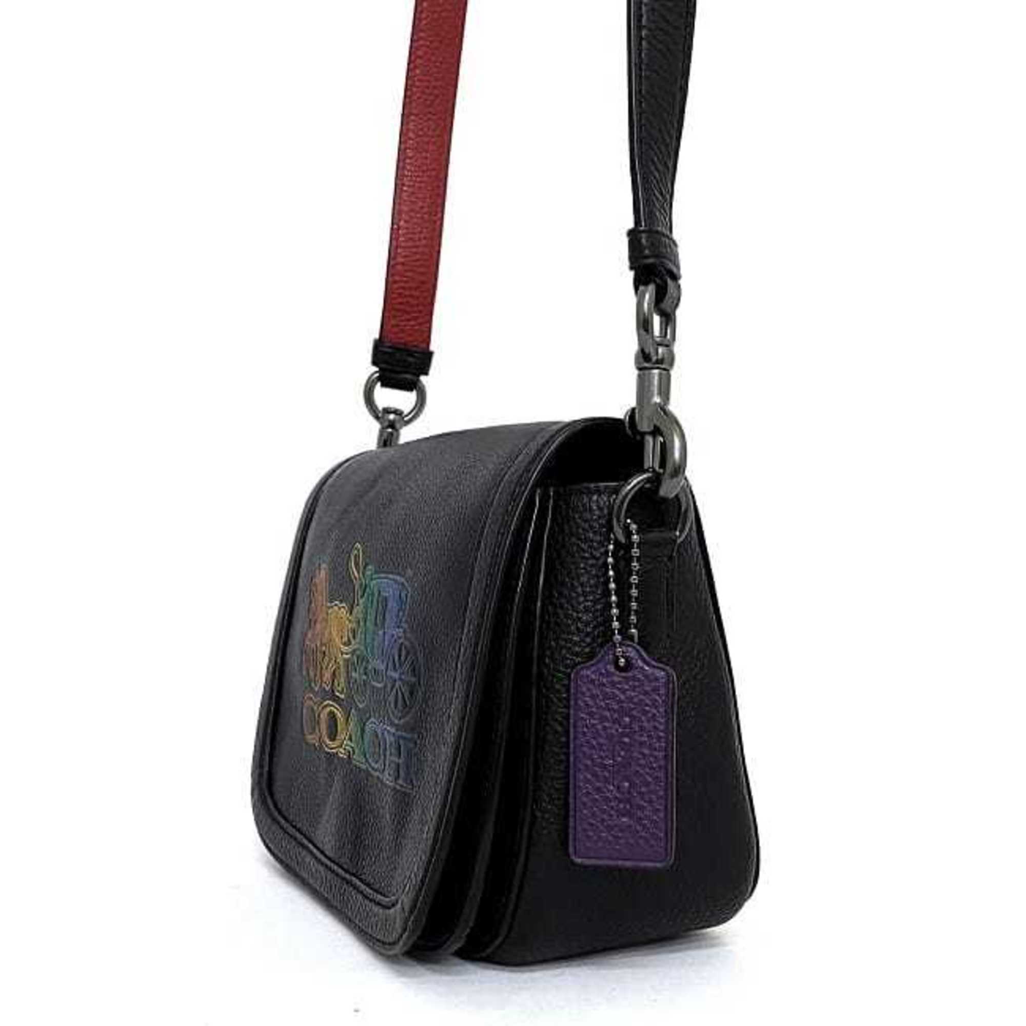 Pre-Owned Coach shoulder bag black rainbow horse and carriage C6804 leather COACH flap saddle (Like New)