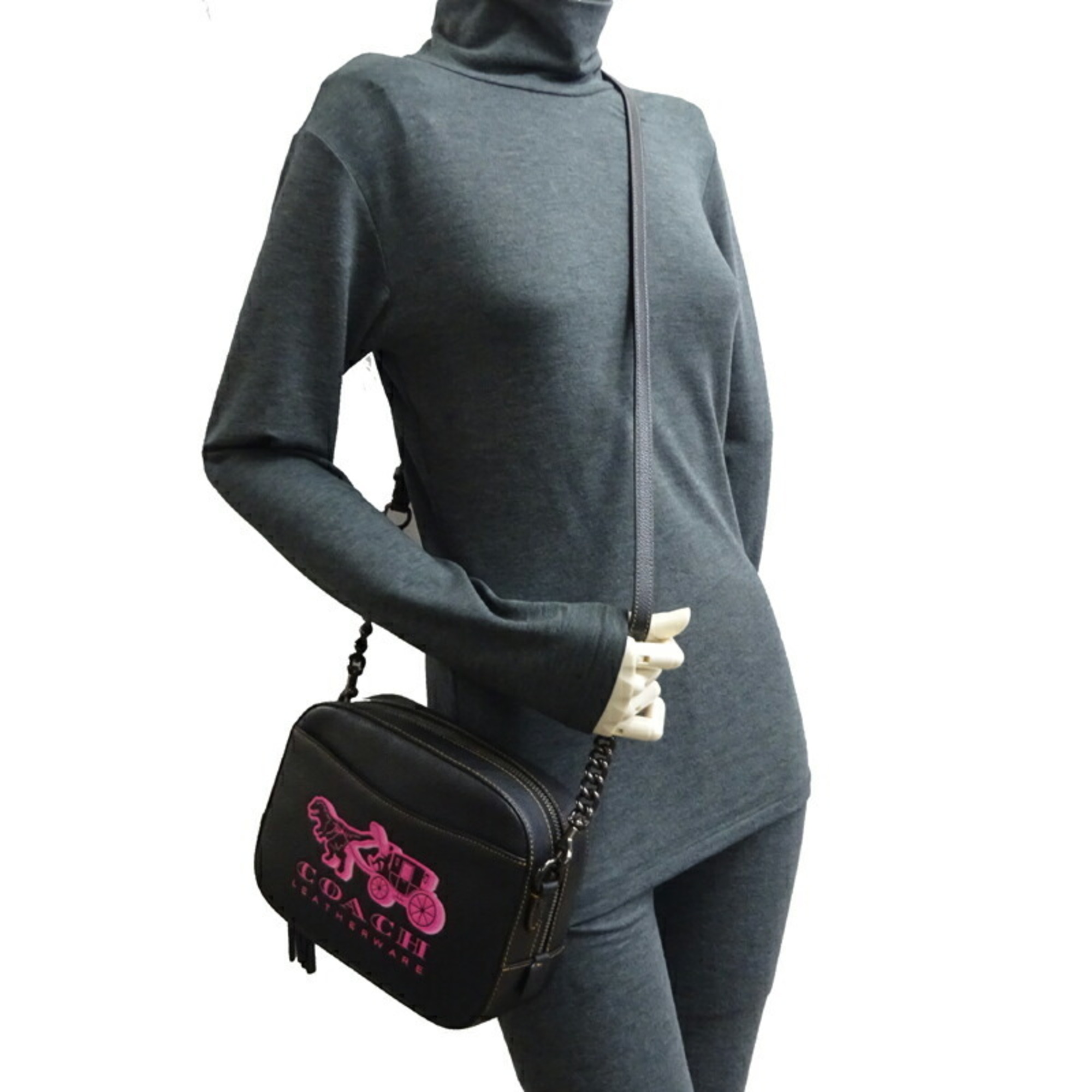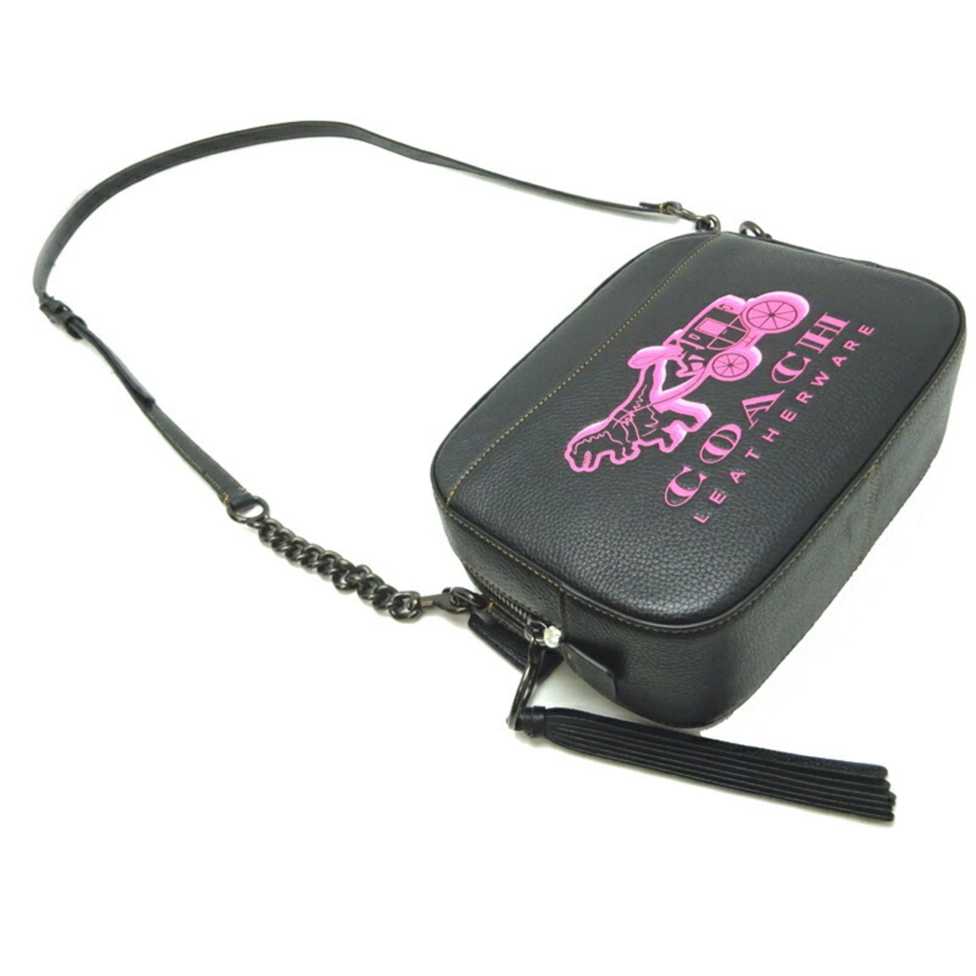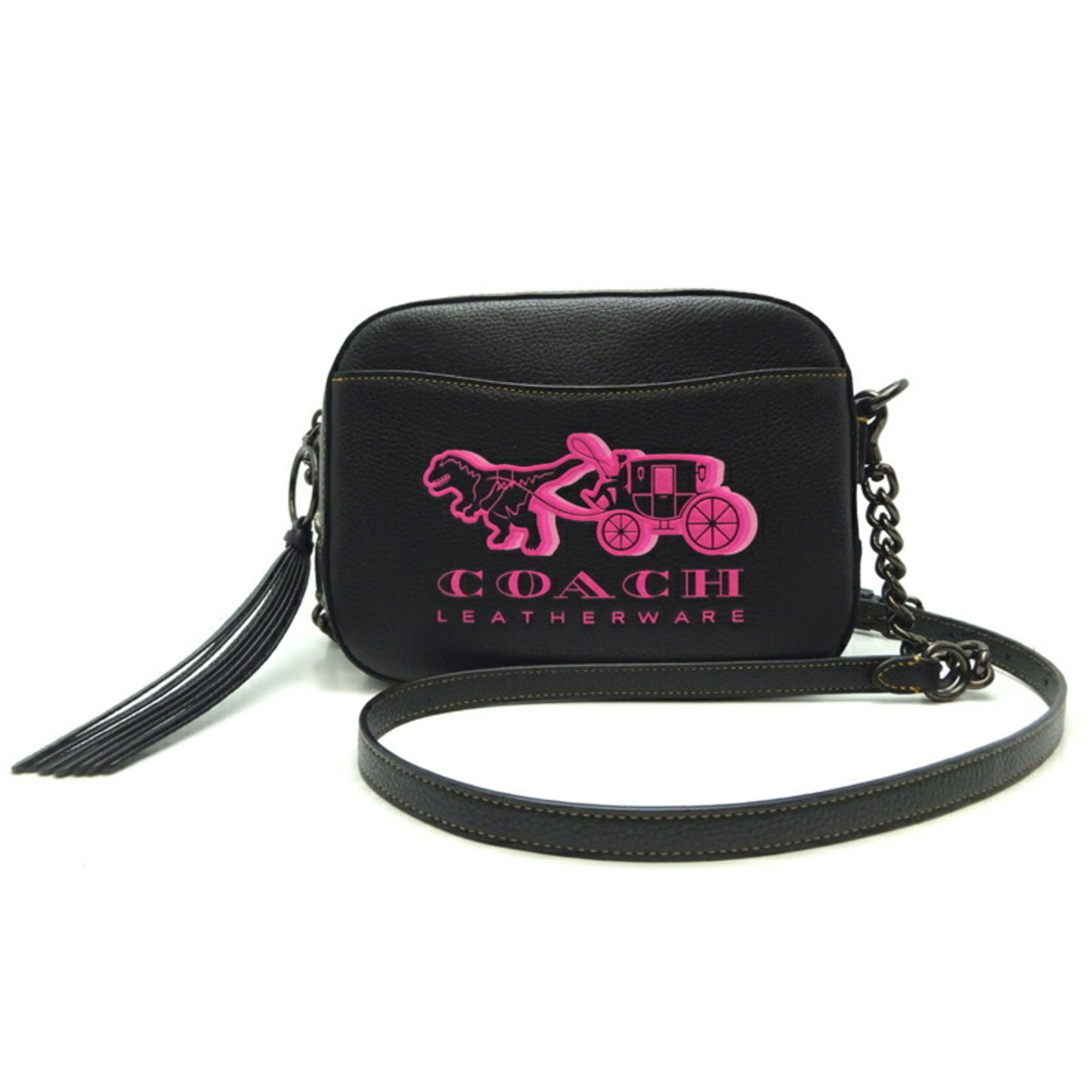 Pre-Owned Coach Camera Bag Women's Shoulder C0893 Leather Black/Pink (Like New)