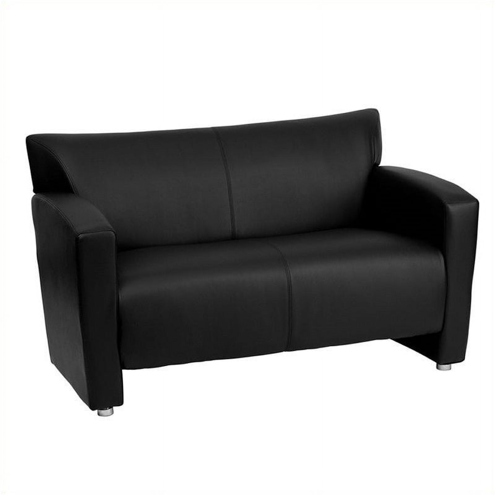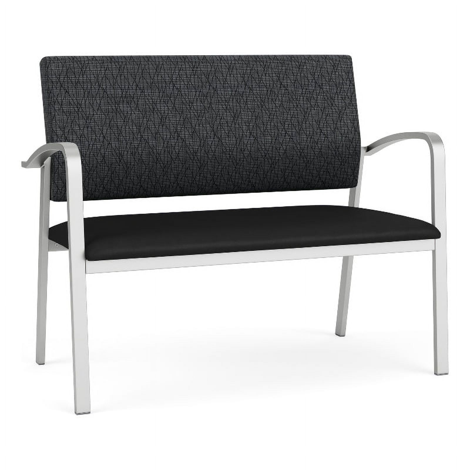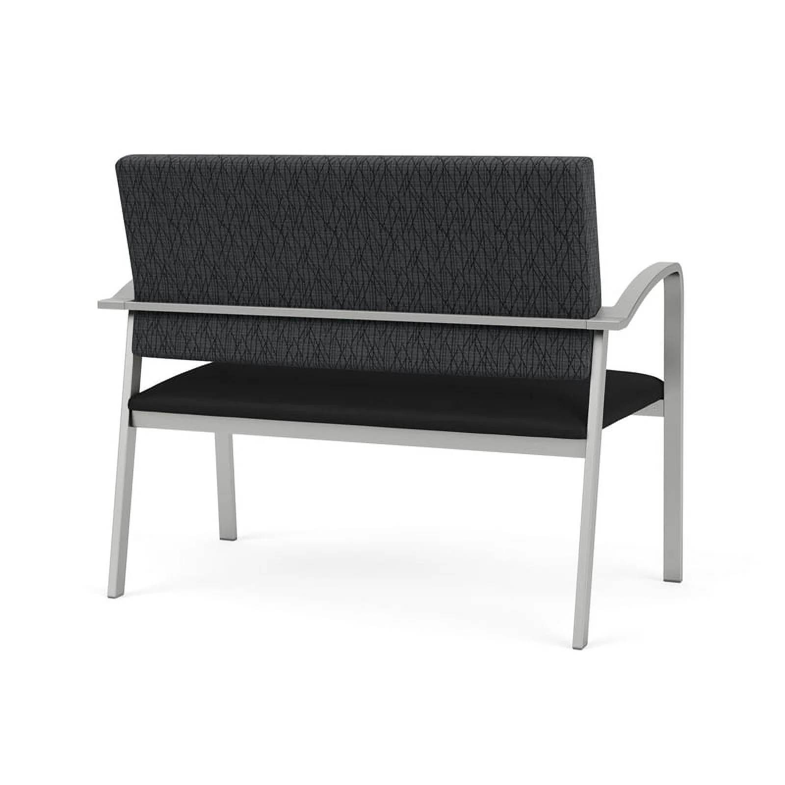 Lesro Siena Fabric Lounge Reception Loveseat in Black and Brushed Steel