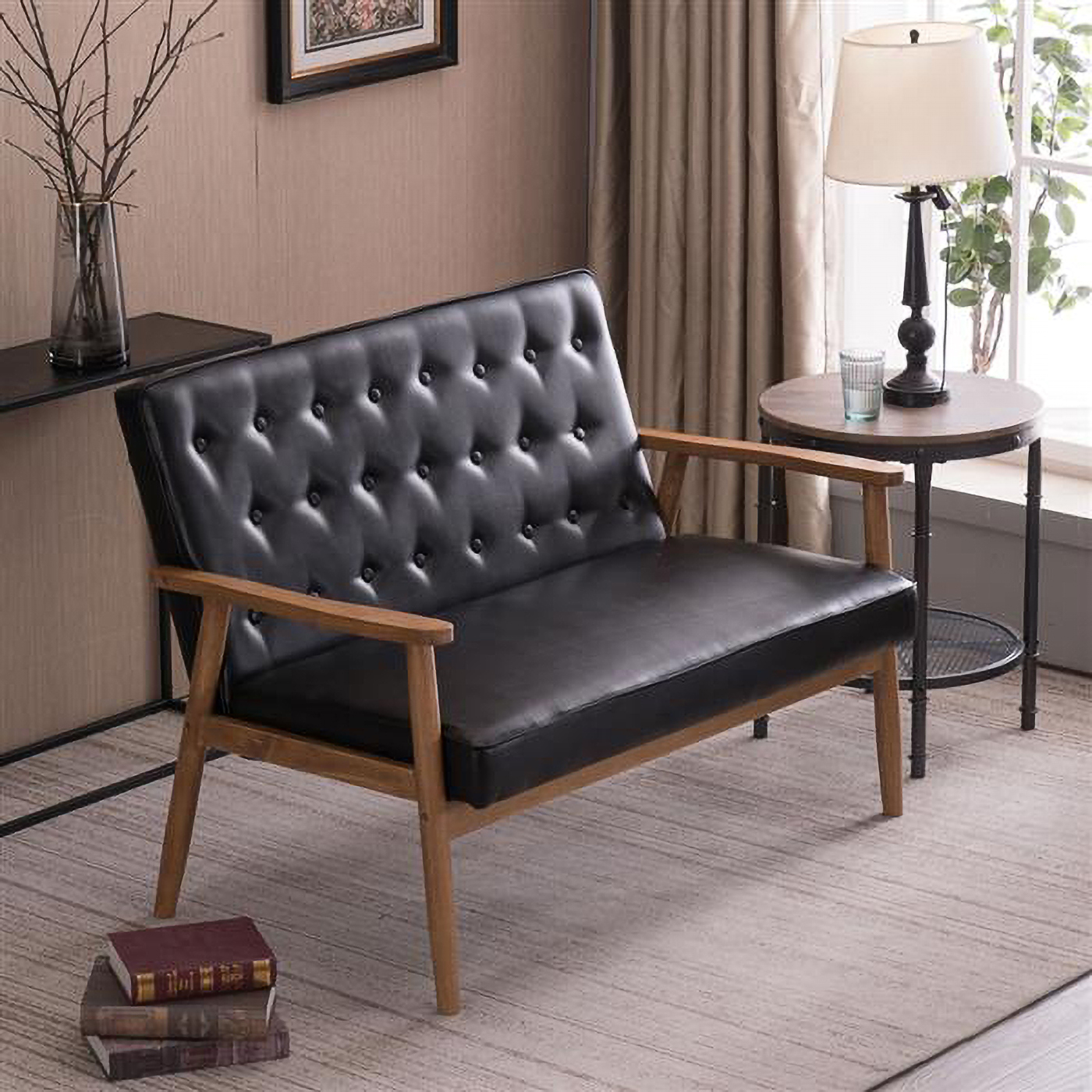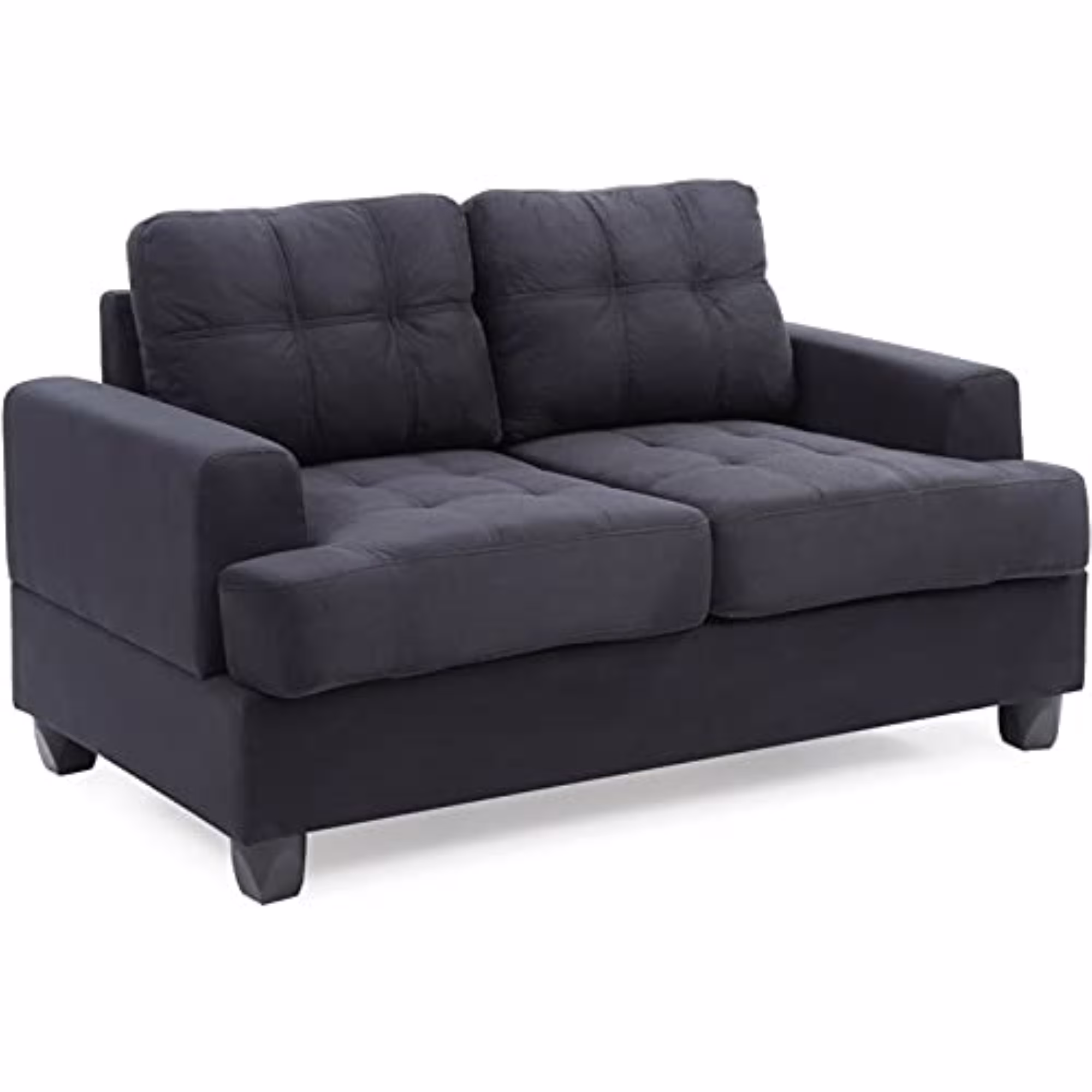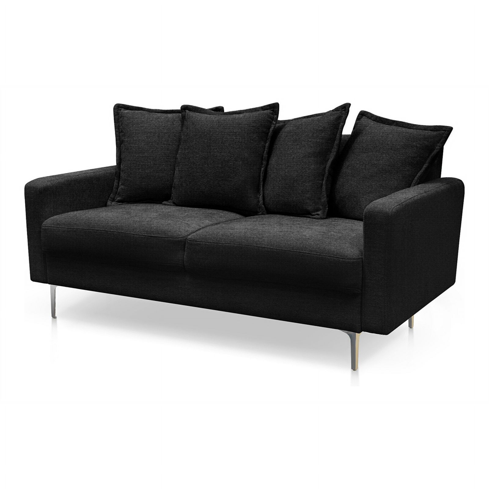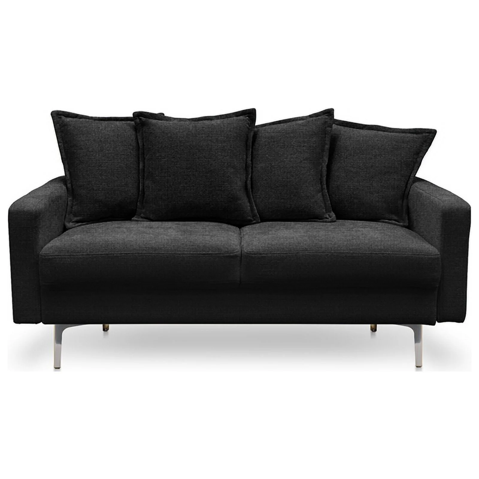 Lesro Siena Fabric Lounge Reception Loveseat in Black and Brushed Steel