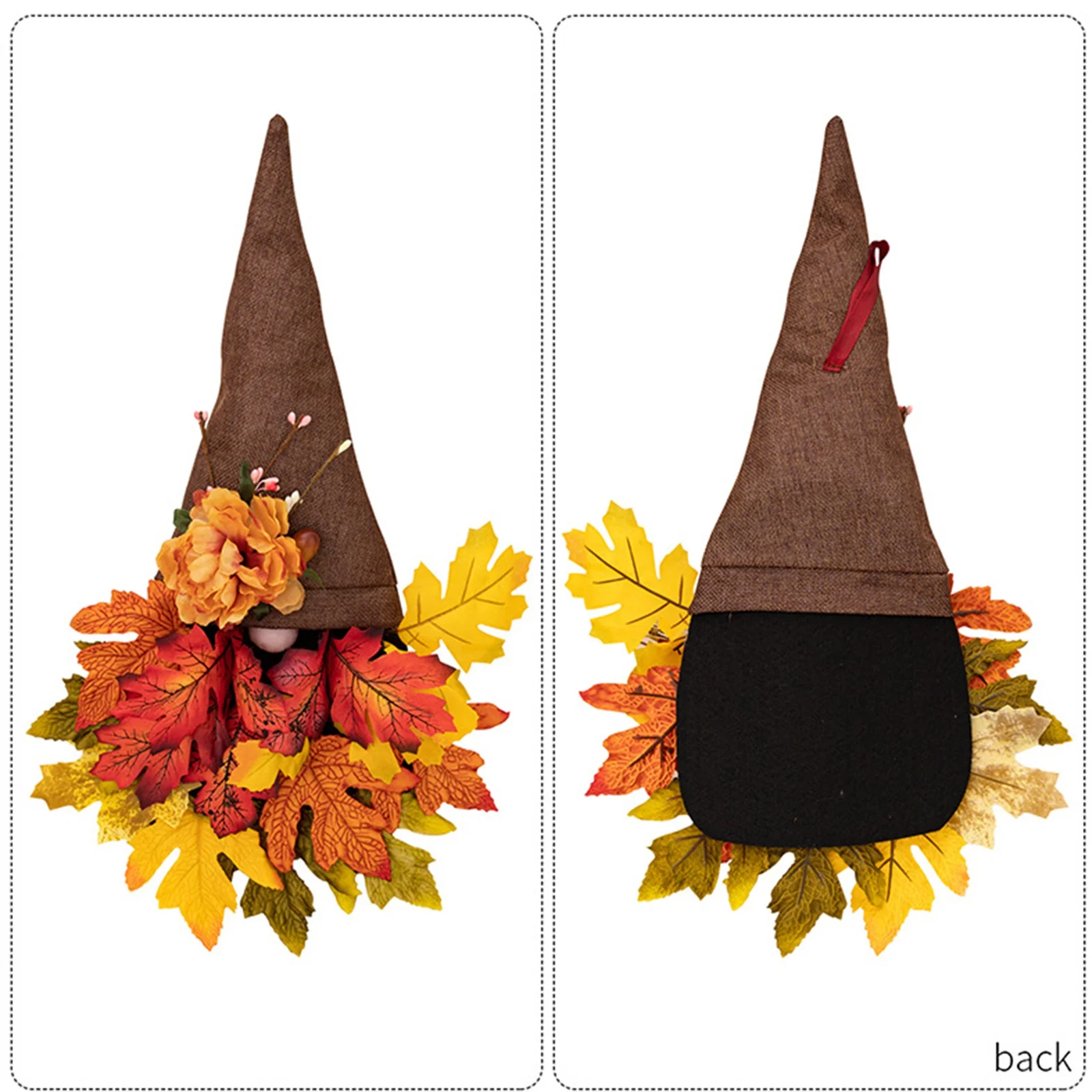 Fall Wreaths for Front Door, Cute Dwarf Doll with Autumn Maples Leaf Wreath, for Indoor Outdoor Harvest Thanksgiving Farmhouse