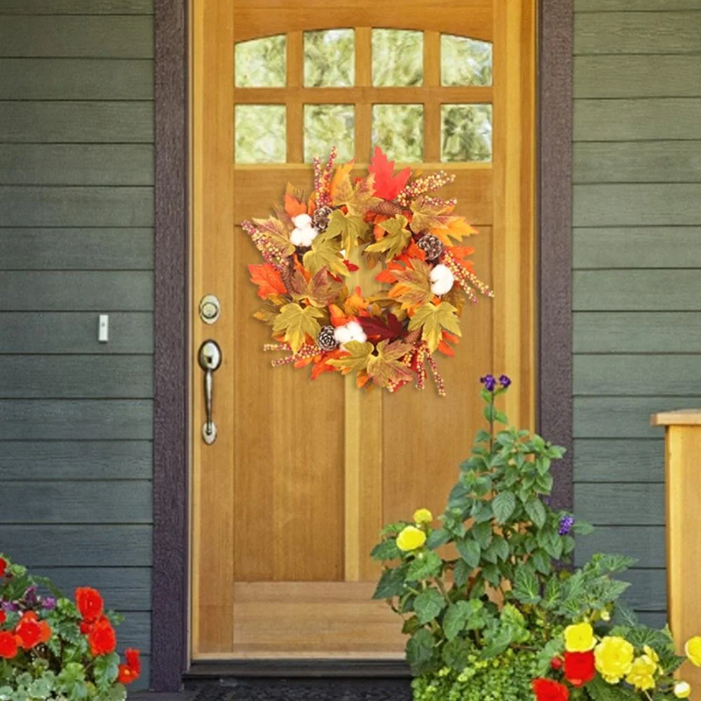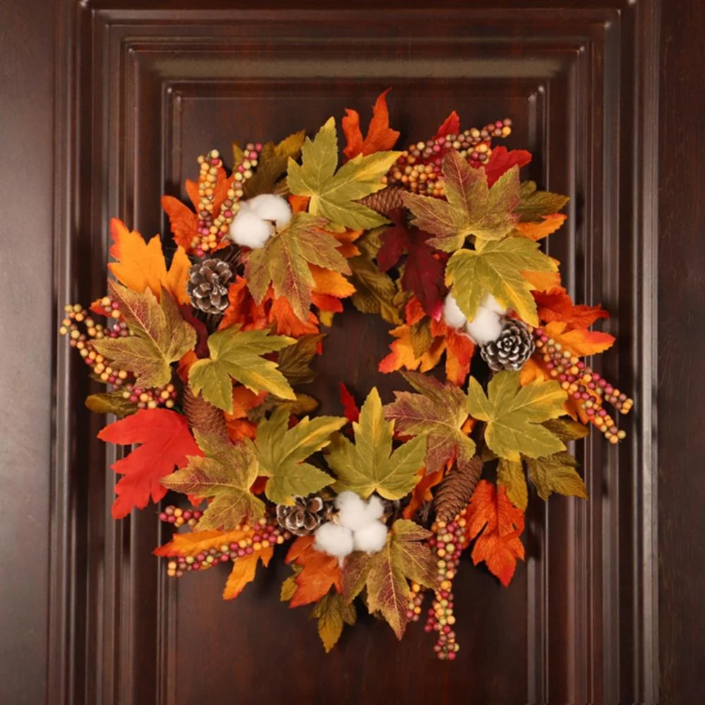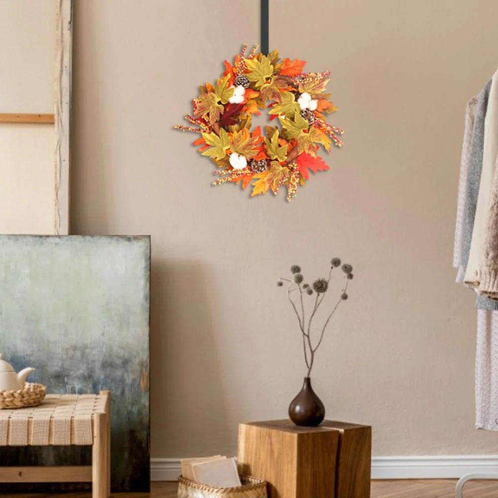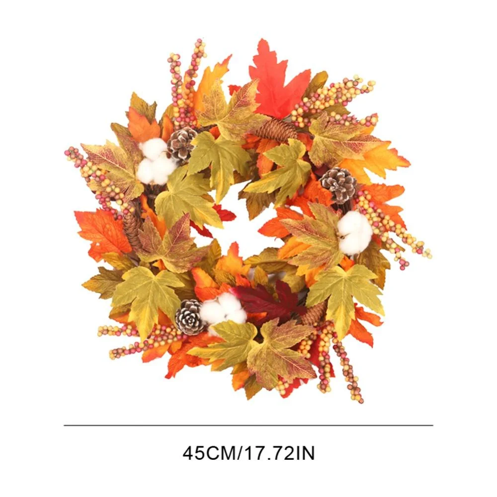 Farmhouse Cotton Berries Wreath, Rustic Simple Decor, Fall Wreaths for Front Door Autumn Harvest Wreath,Vintage Maple Leaf Wreath Thanksgiving Decoration for Home Party