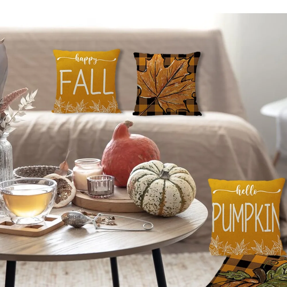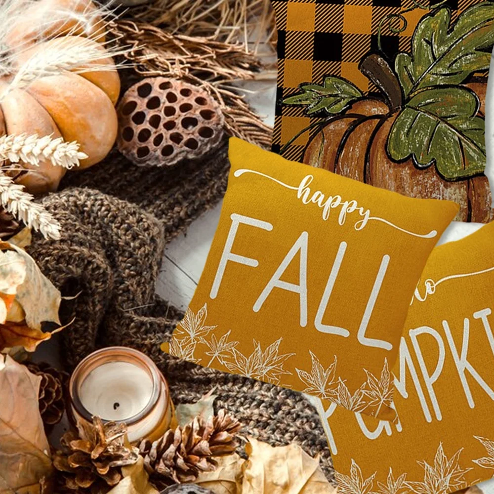 Fall Pillow Covers 18x18 Set of 4,Buffalo Plaid Pumpkin Maple Leaf Hello Fall Throw Pillow Covers Decorative Happy Harvest Farmhouse Fall Autumn Thanksgiving Cushion Case Decoration for Home