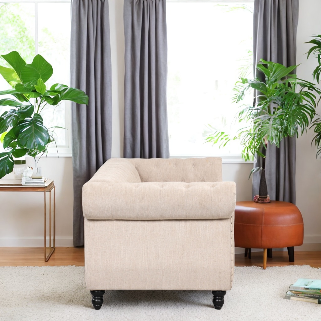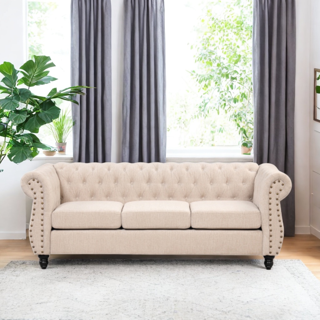 82" Modern Sofa Dutch Plush upholstered Sofa, Solid Wood Legs, Buttoned Tufted backrest (Beige)