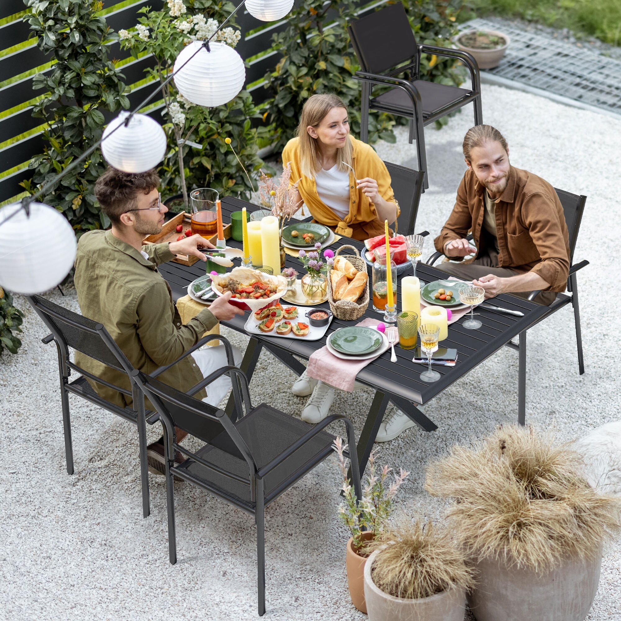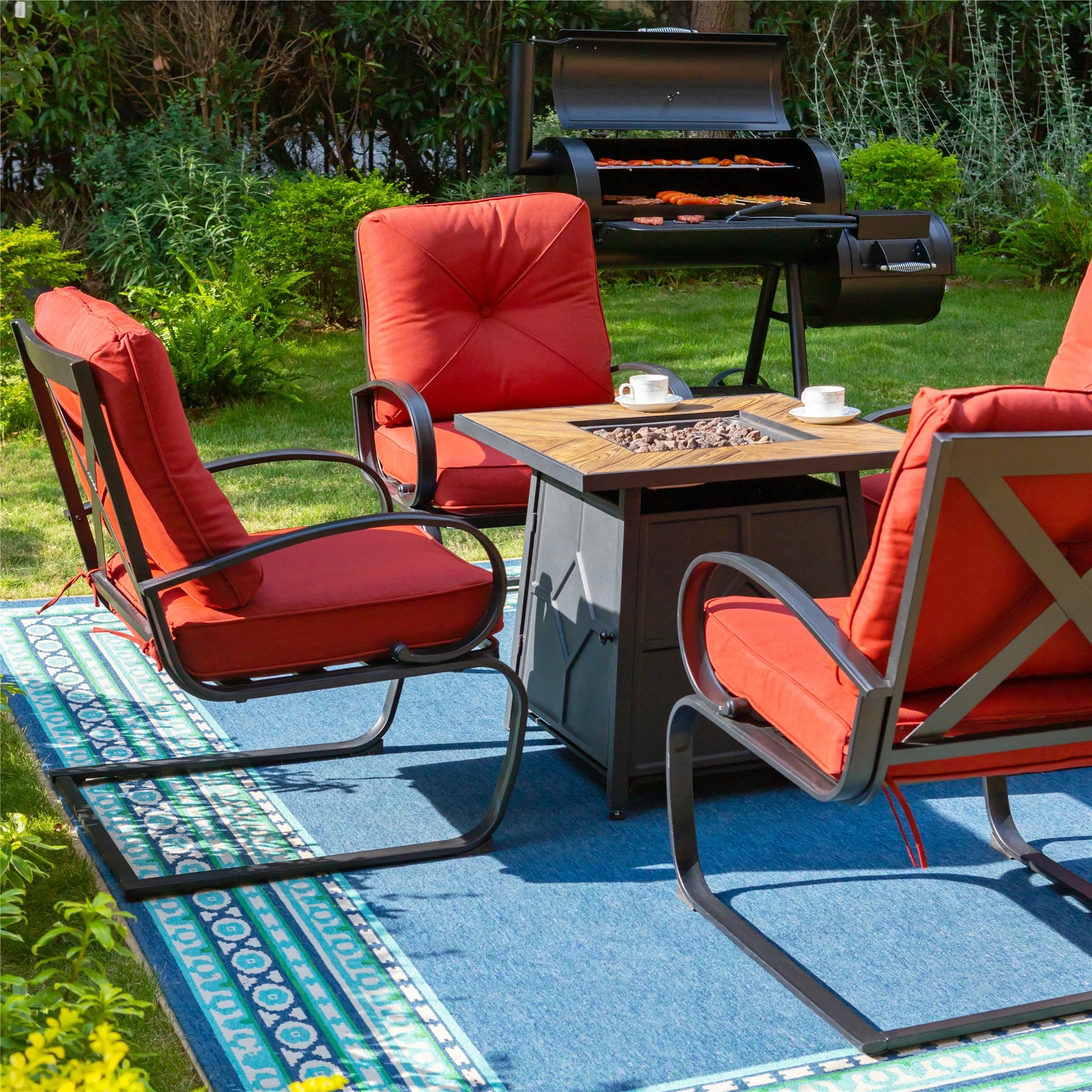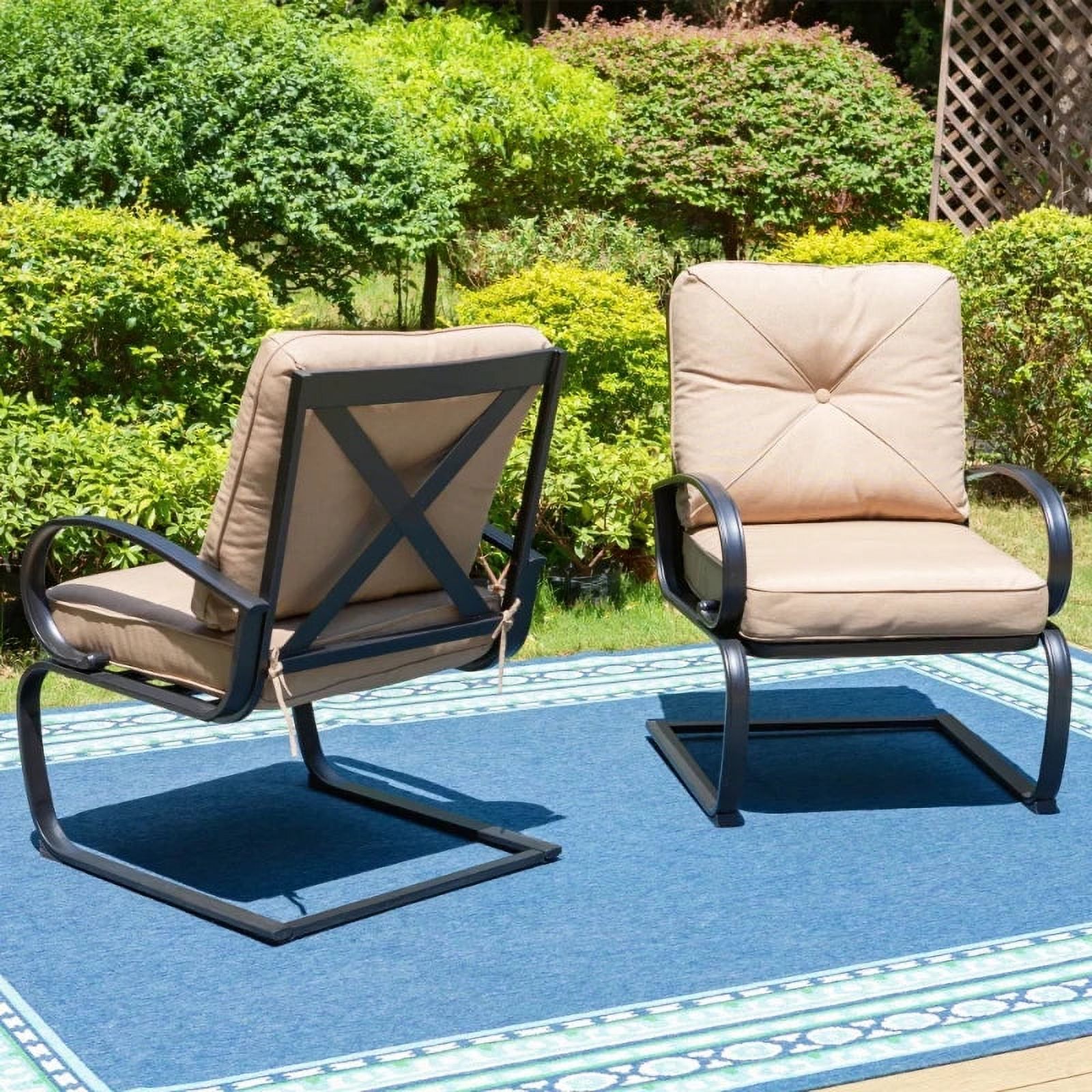 MF Studio 5-Piece Outdoor Dining Set with C-Shape Padded Chairs for 4 Person, Black Steel Frame&Beige Cushion