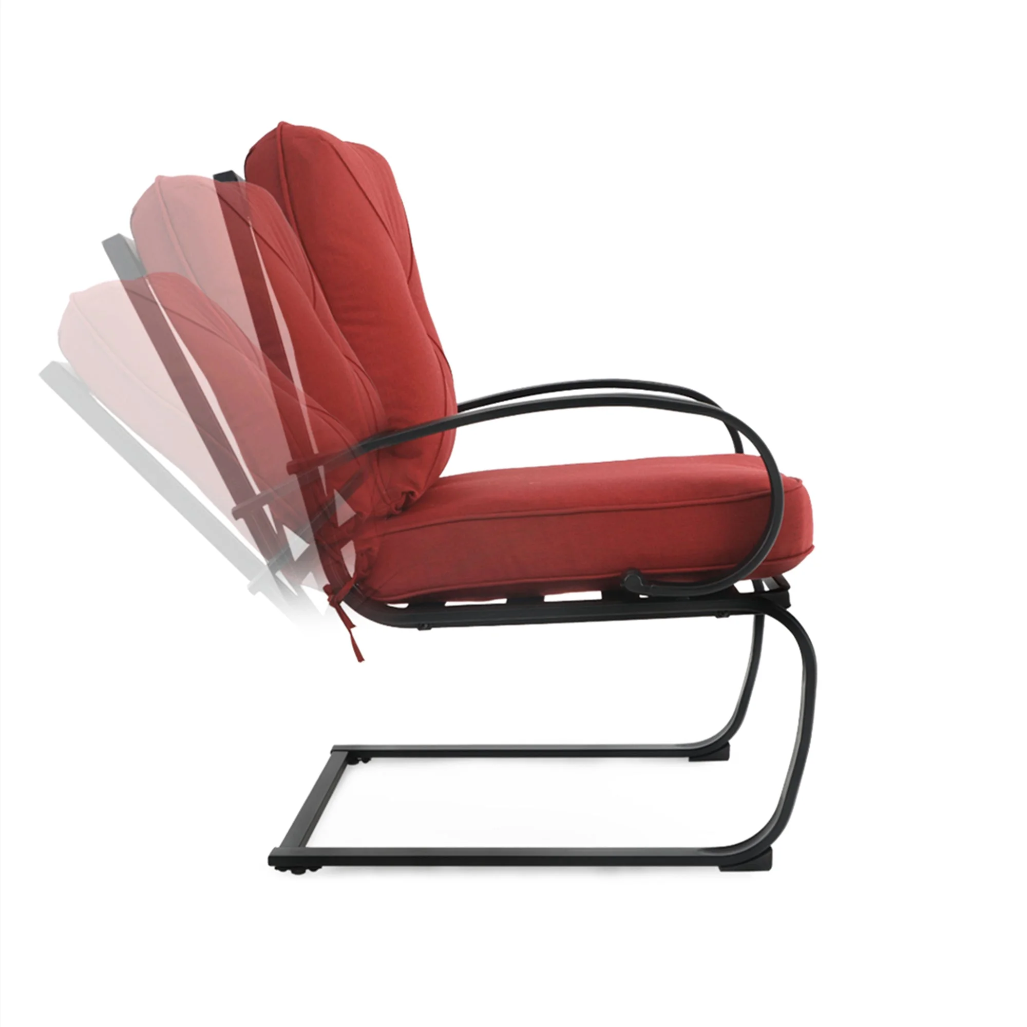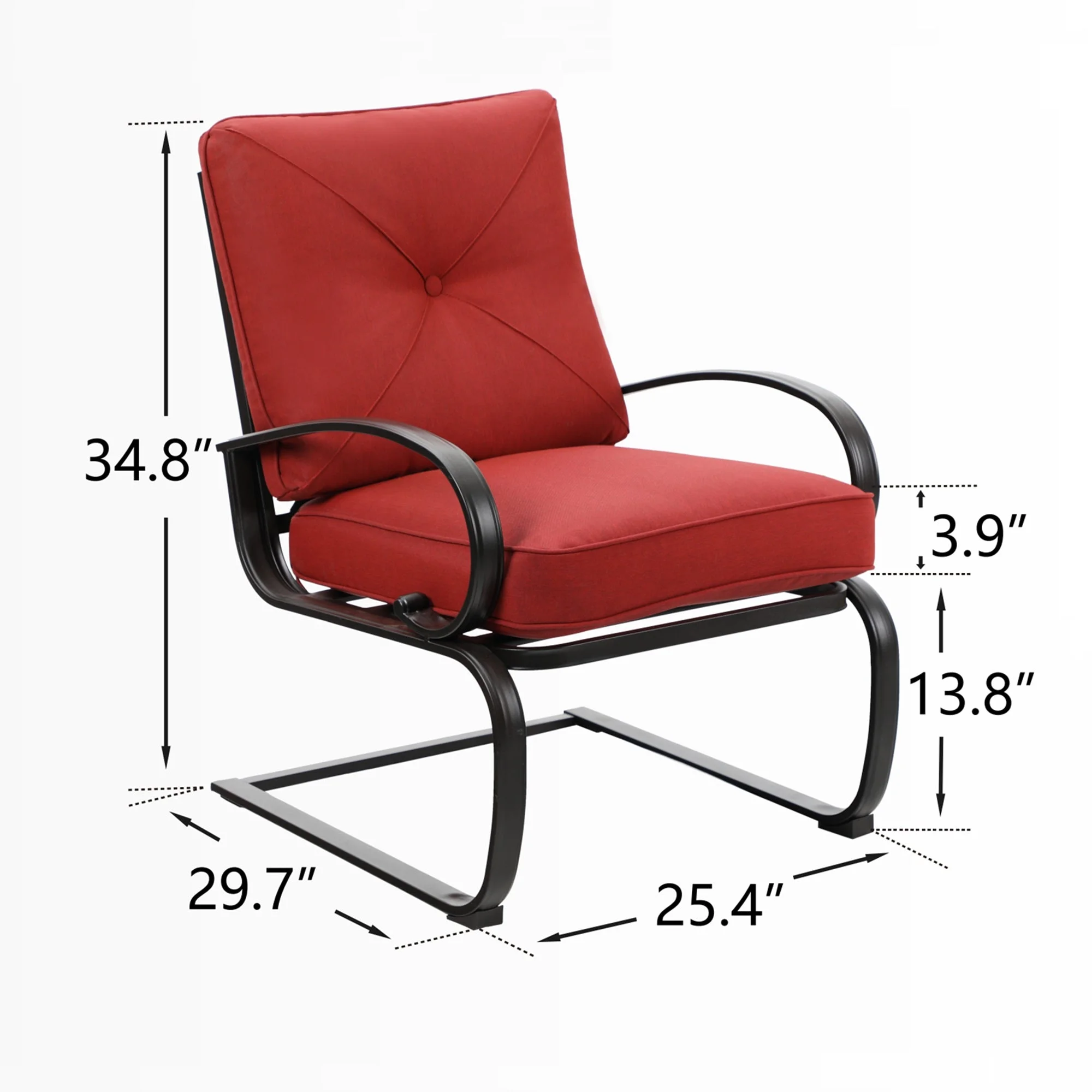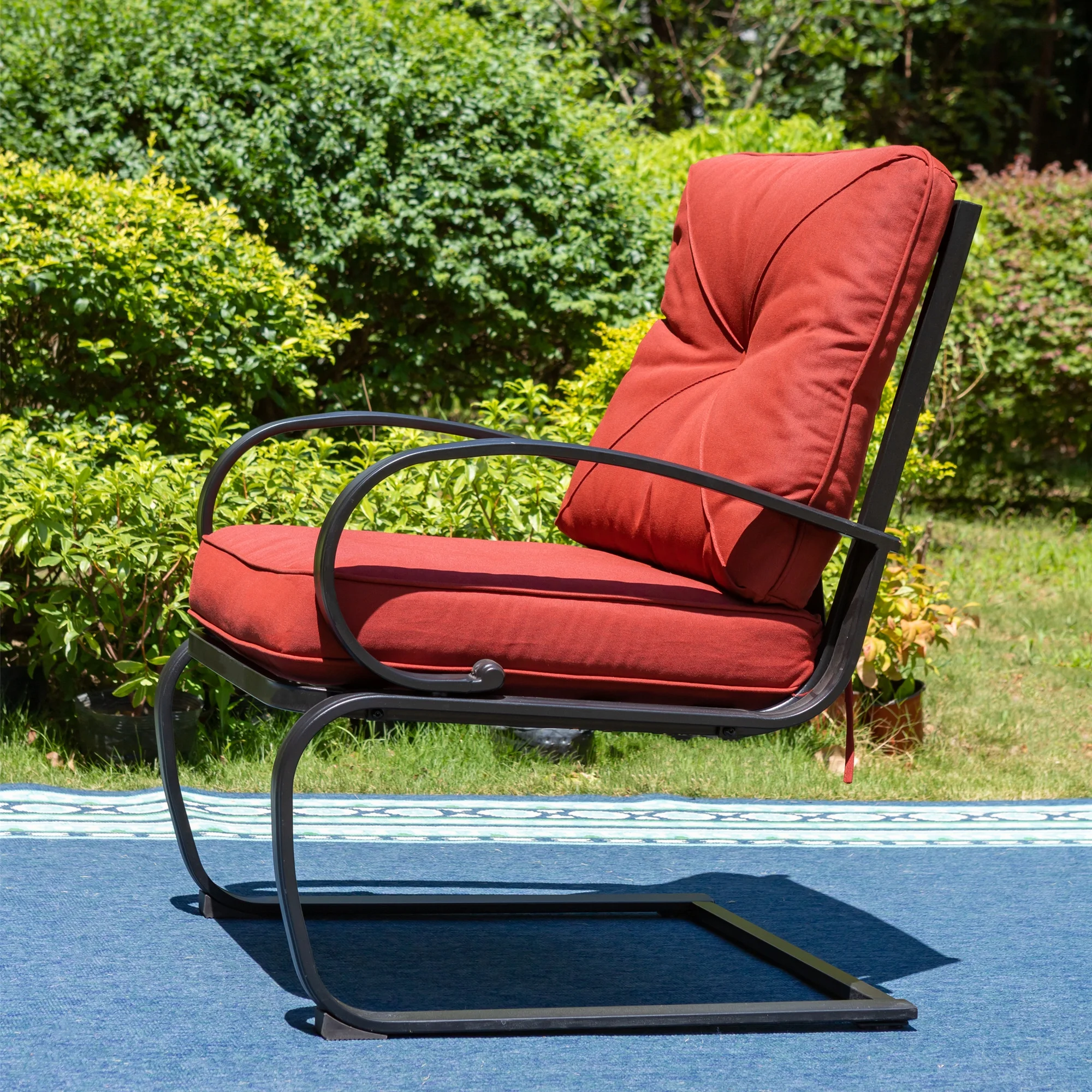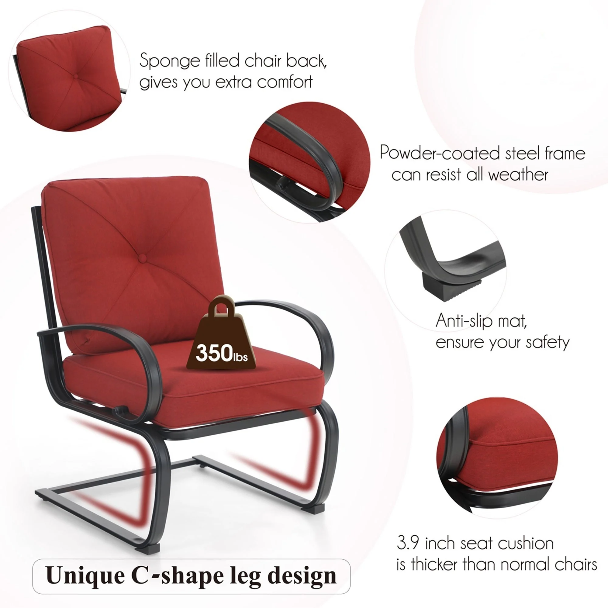 MF Studio Set of 2 Outdoor Dining Chairs, C-shape Steel Frame with Cushions, Black&Red