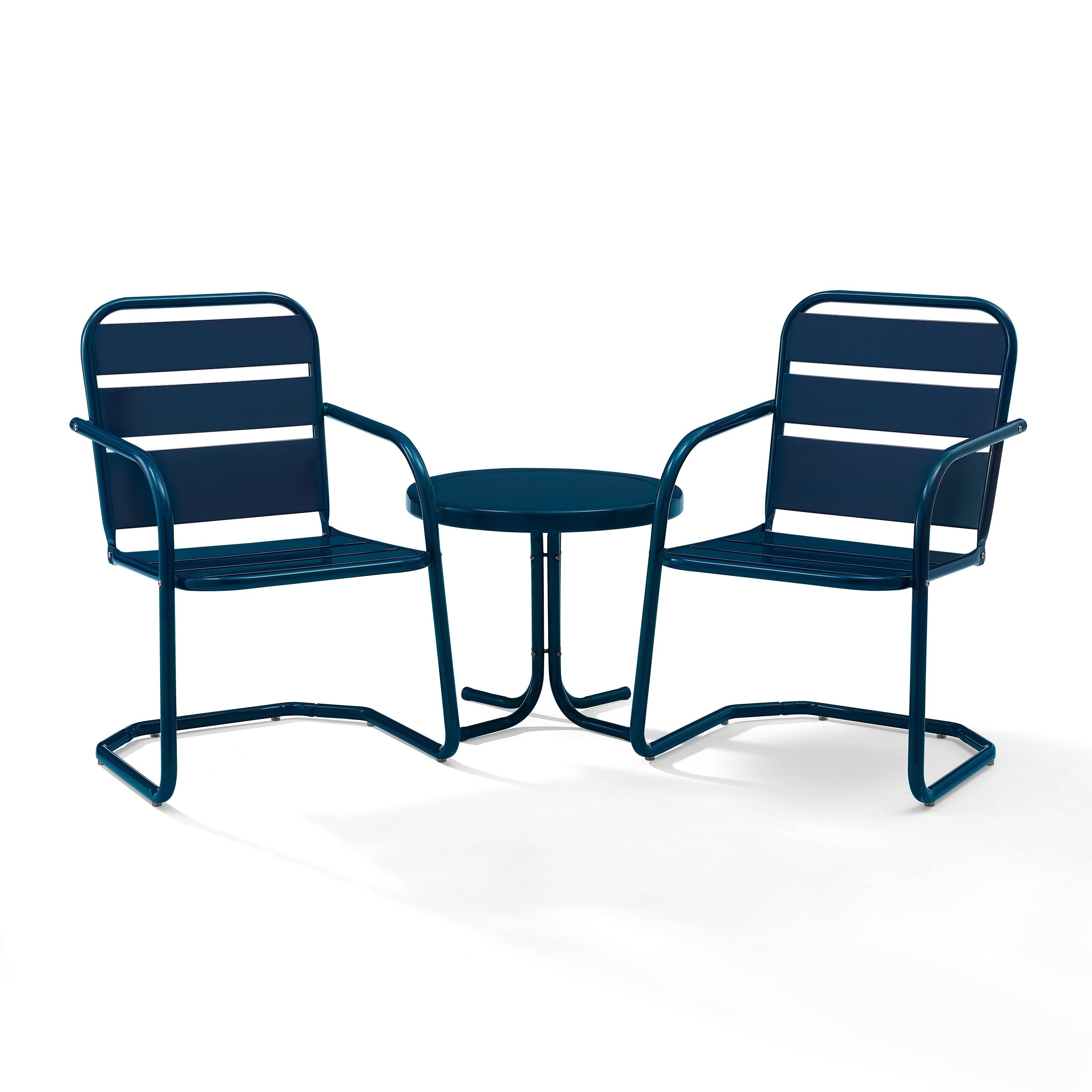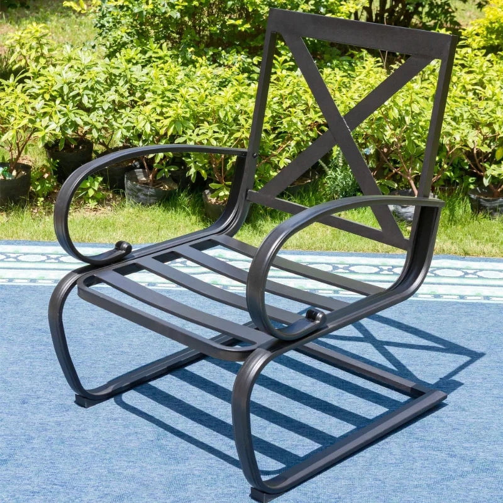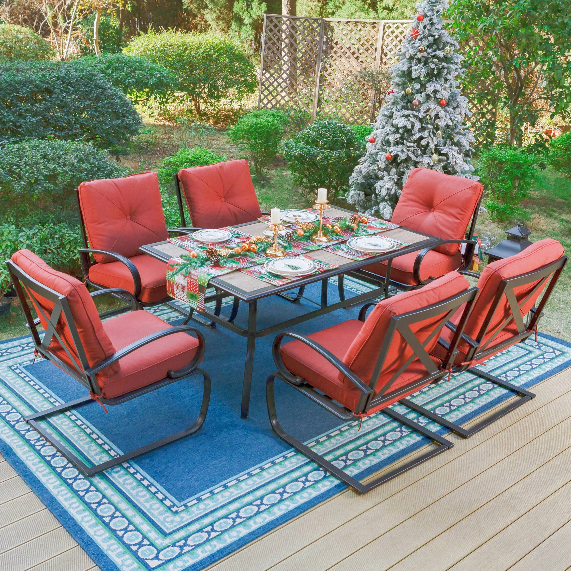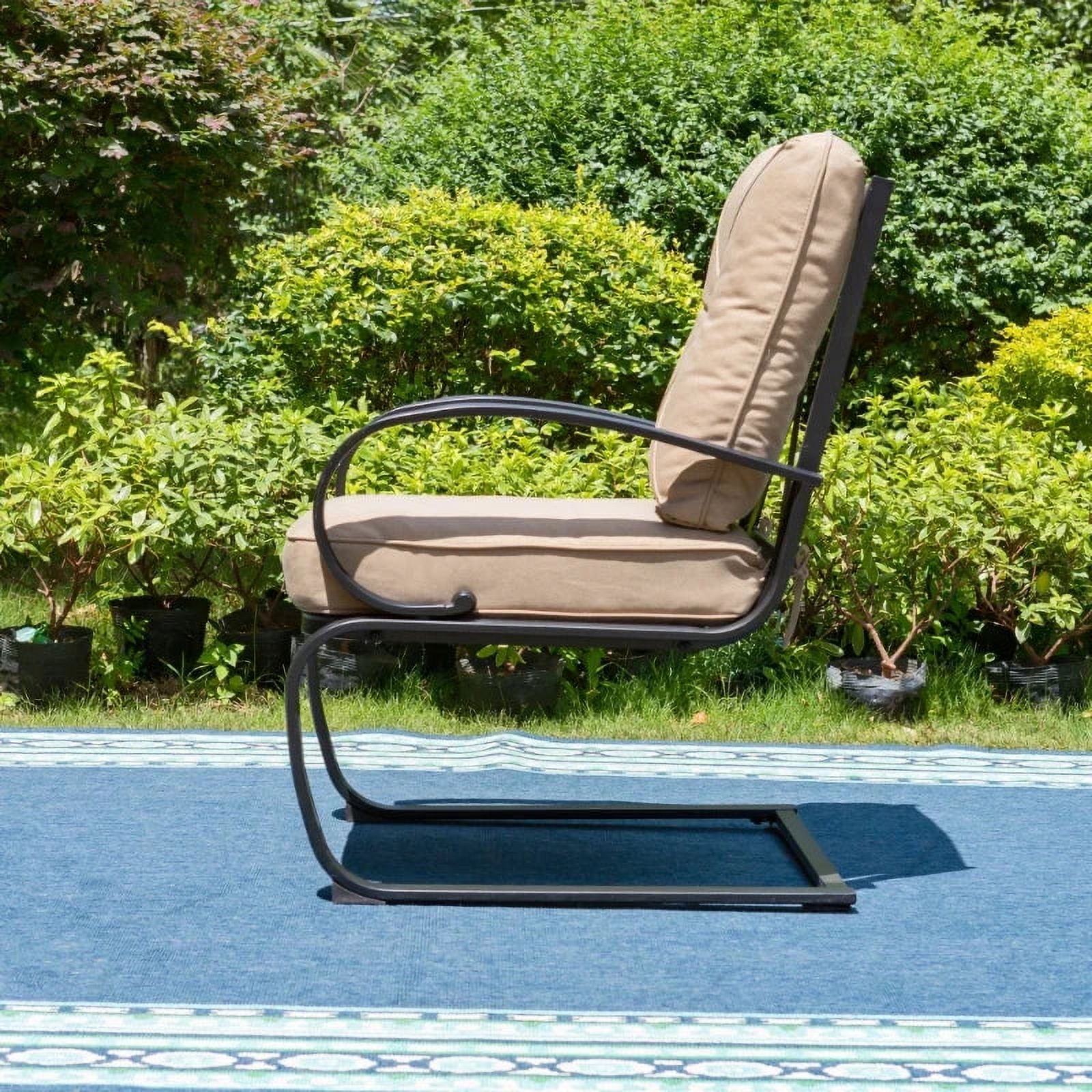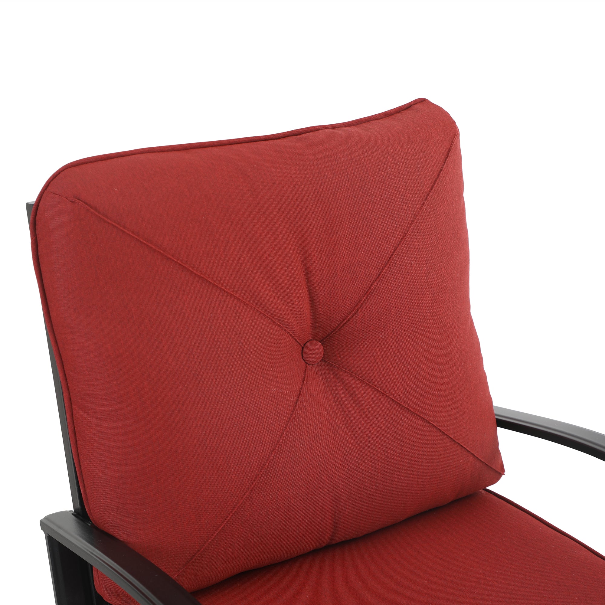 MF Studio Set of 2 Outdoor Dining Chairs, C-shape Steel Frame with Cushions, Black&Red