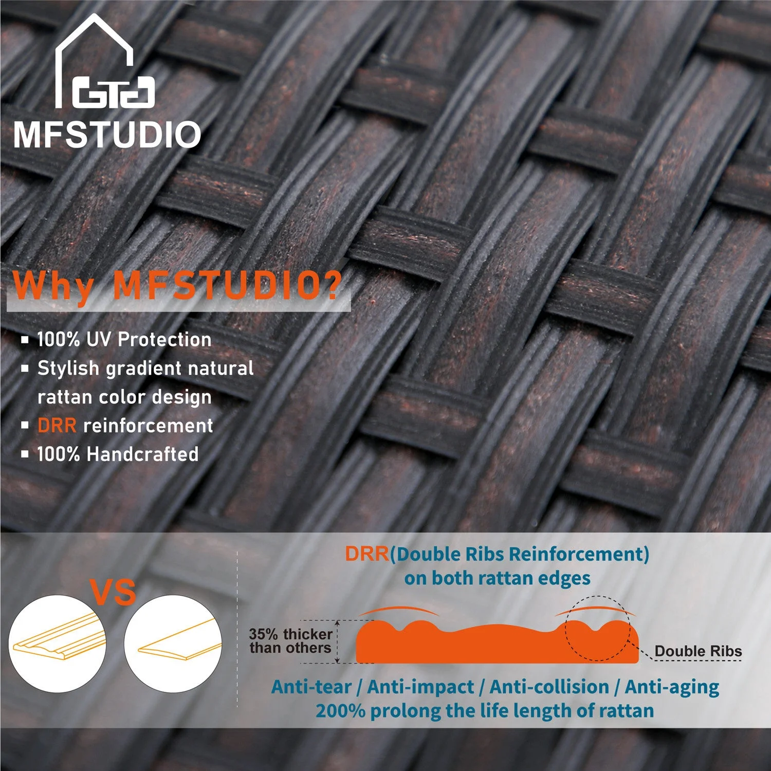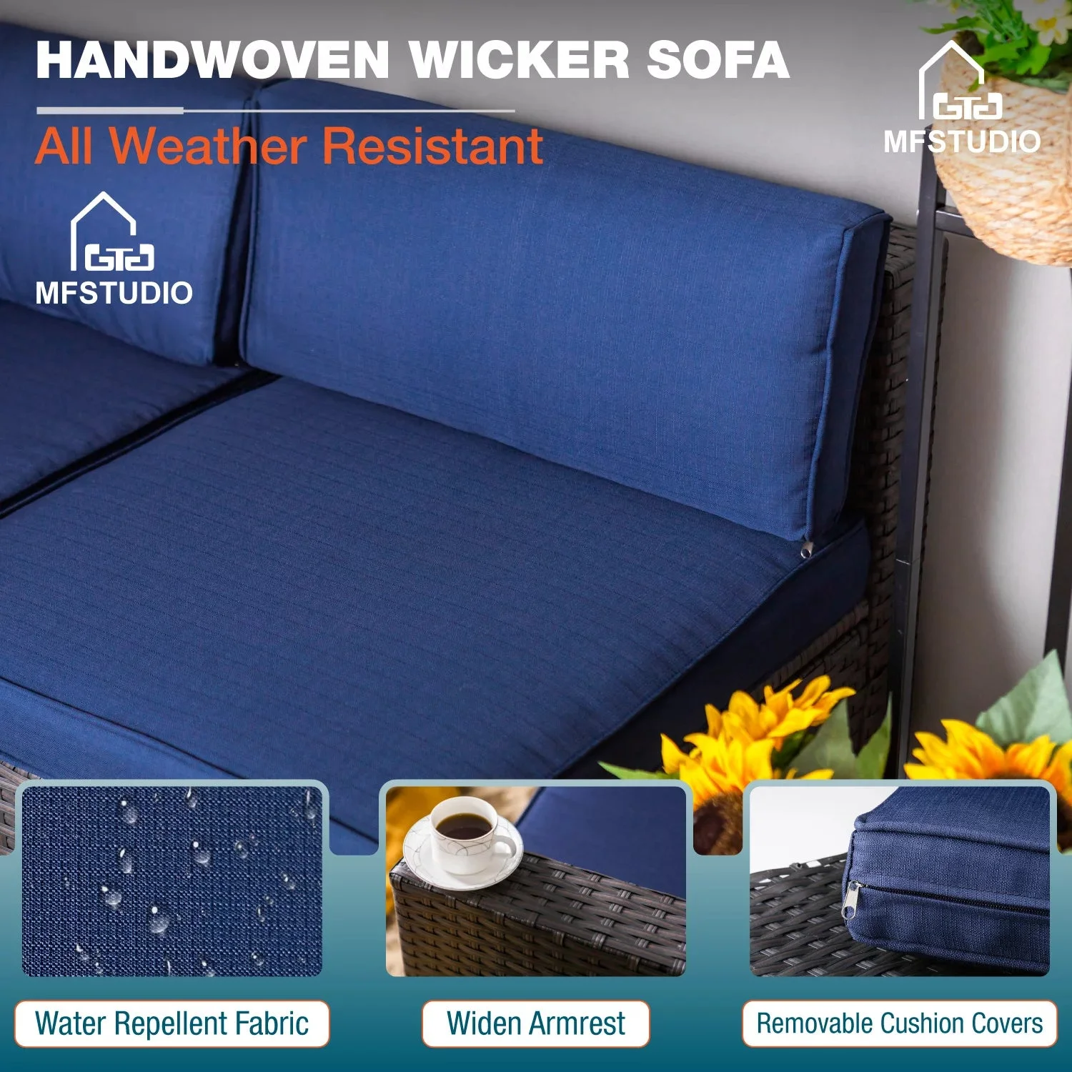 MF Studio 6 Pieces Patio Conversation Set Wicker Outdoor Furniture Set Navy Blue