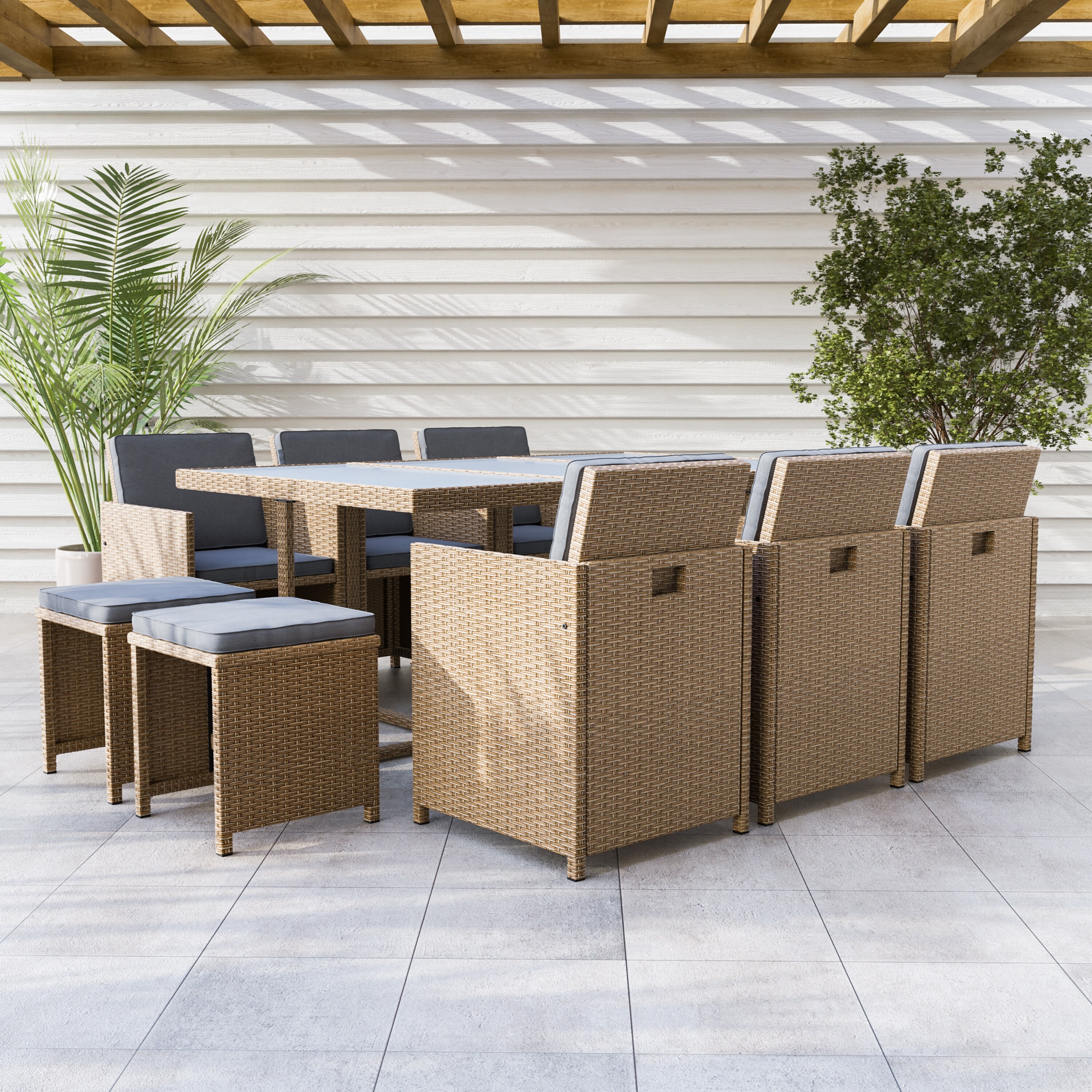 Muse & Lounge Co Liyana Compact Wicker & Glass 11-Piece Outdoor Dining Set by M&L Co. Natural