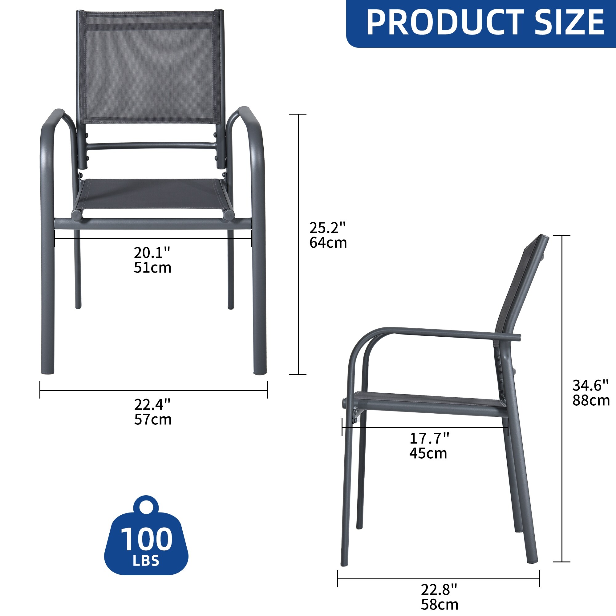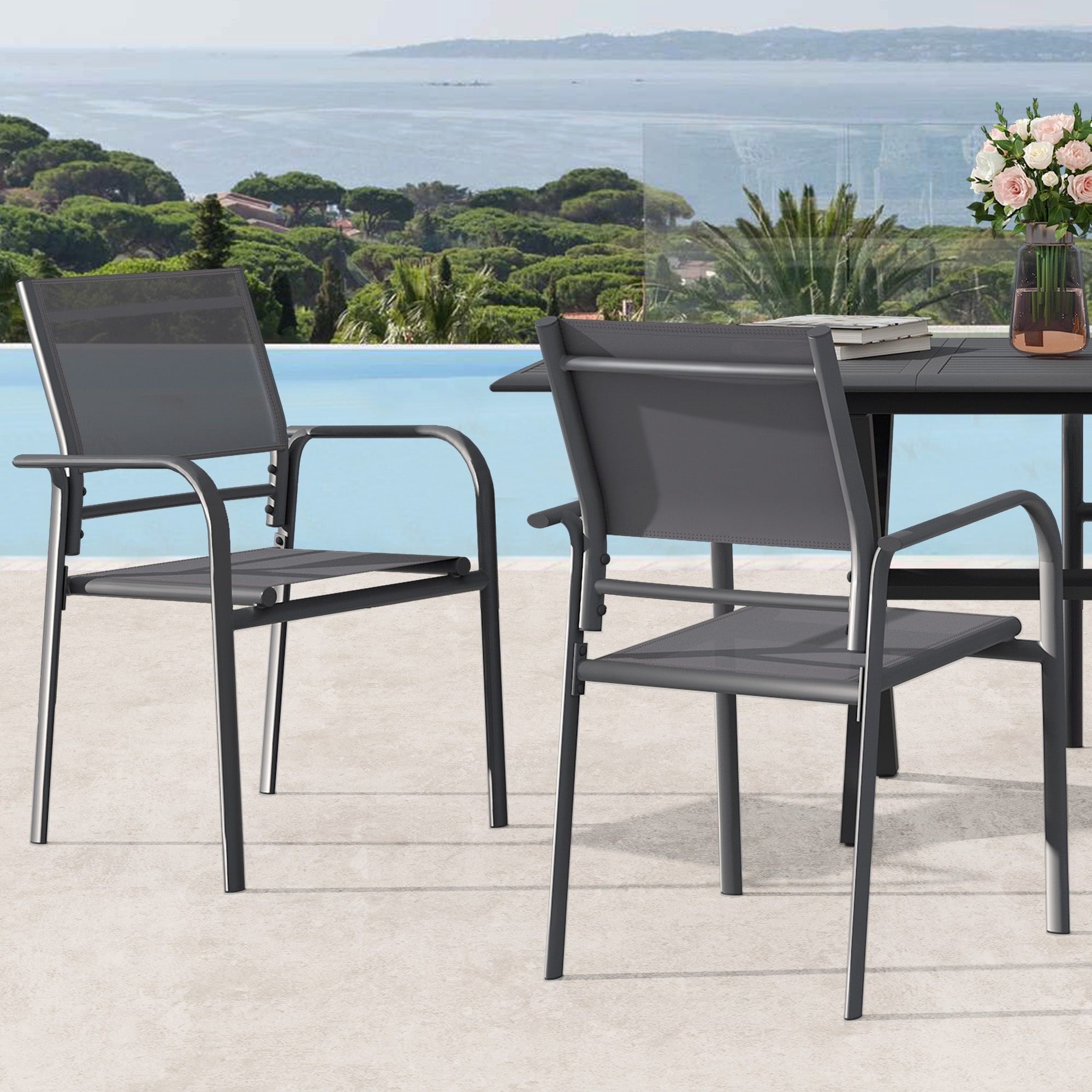 Mcferran's Inc Set of 6 Aluminum Outdoor Patio Dining Chairs with Adjustable Feet Grey