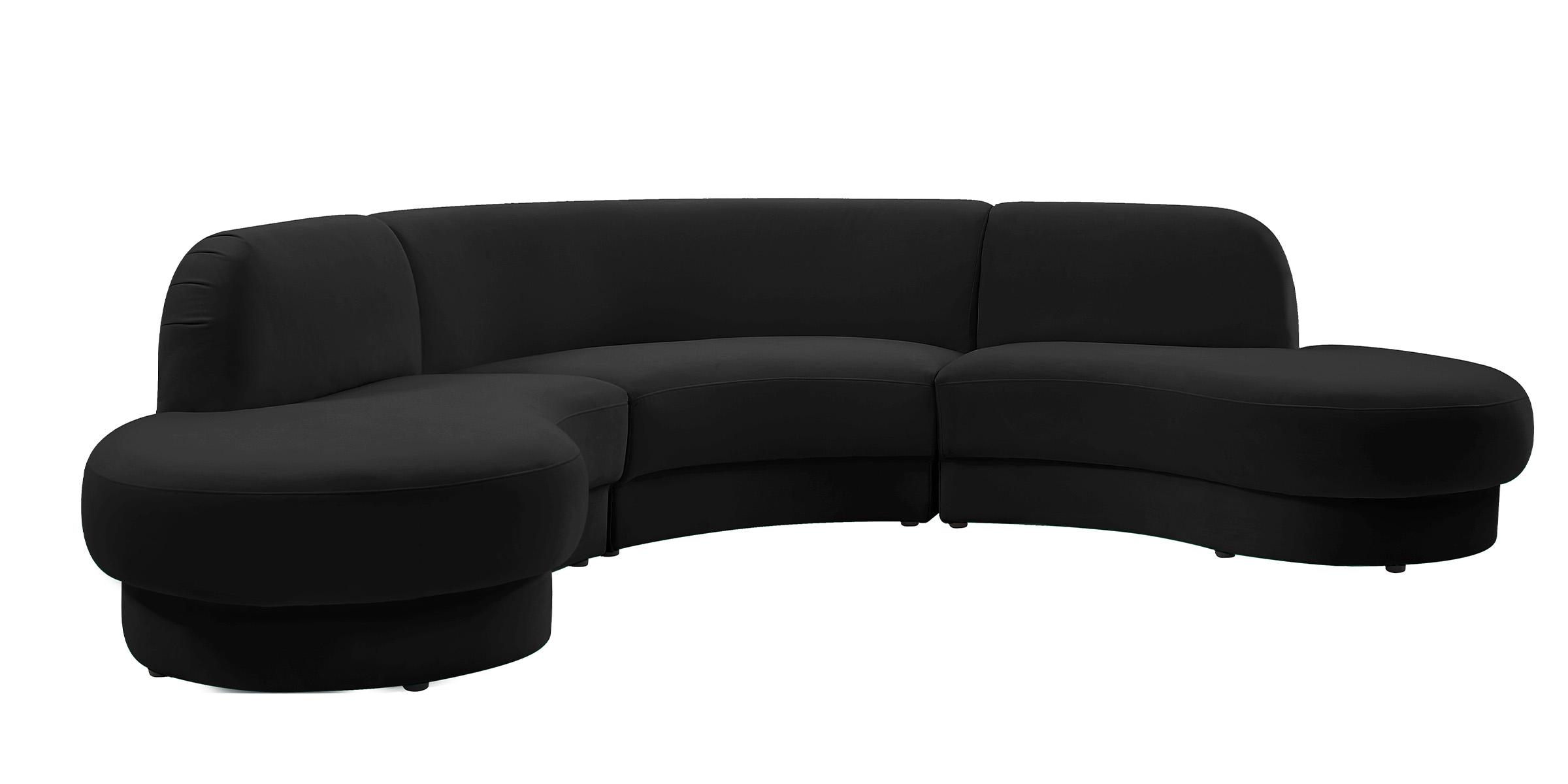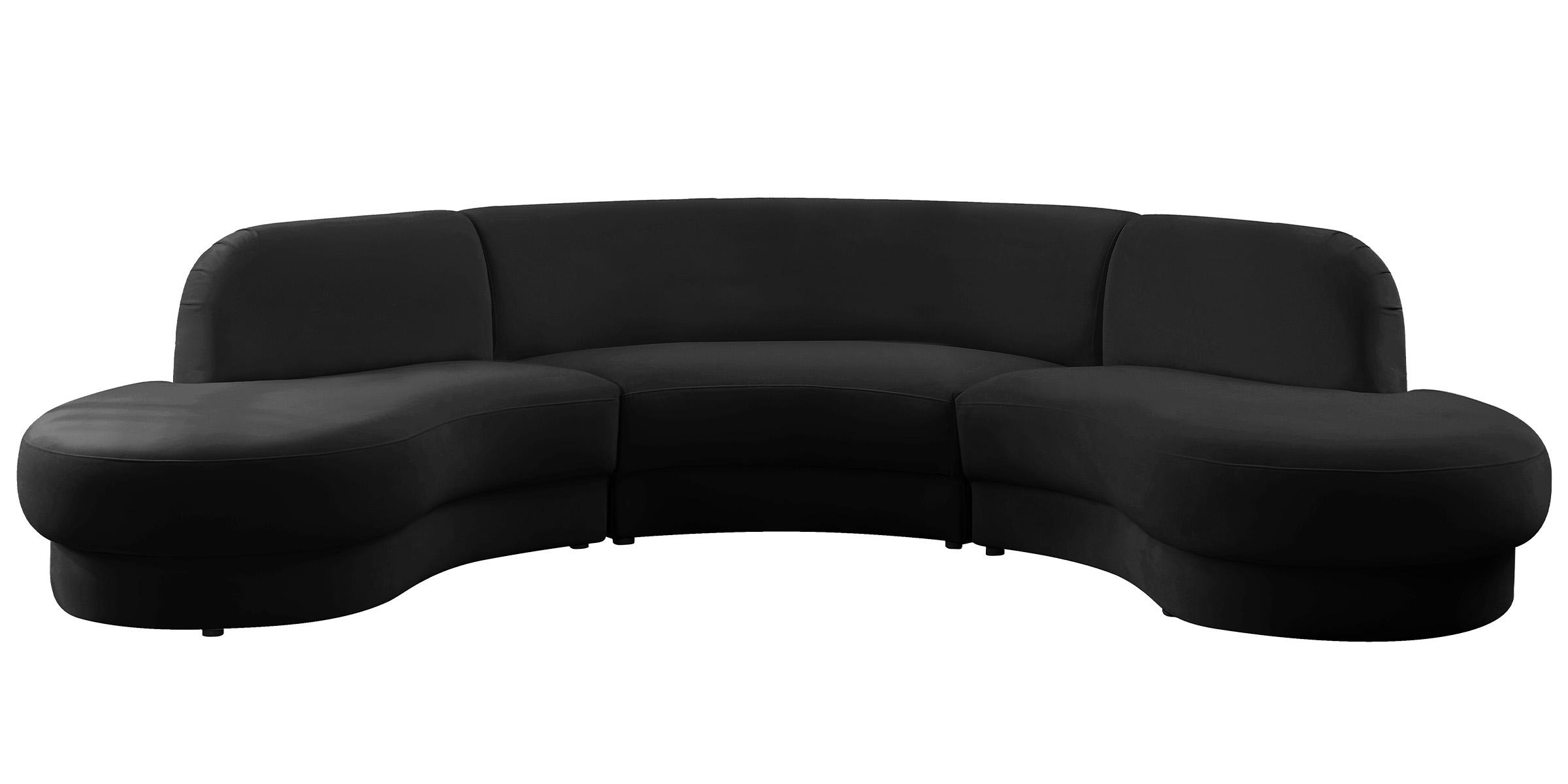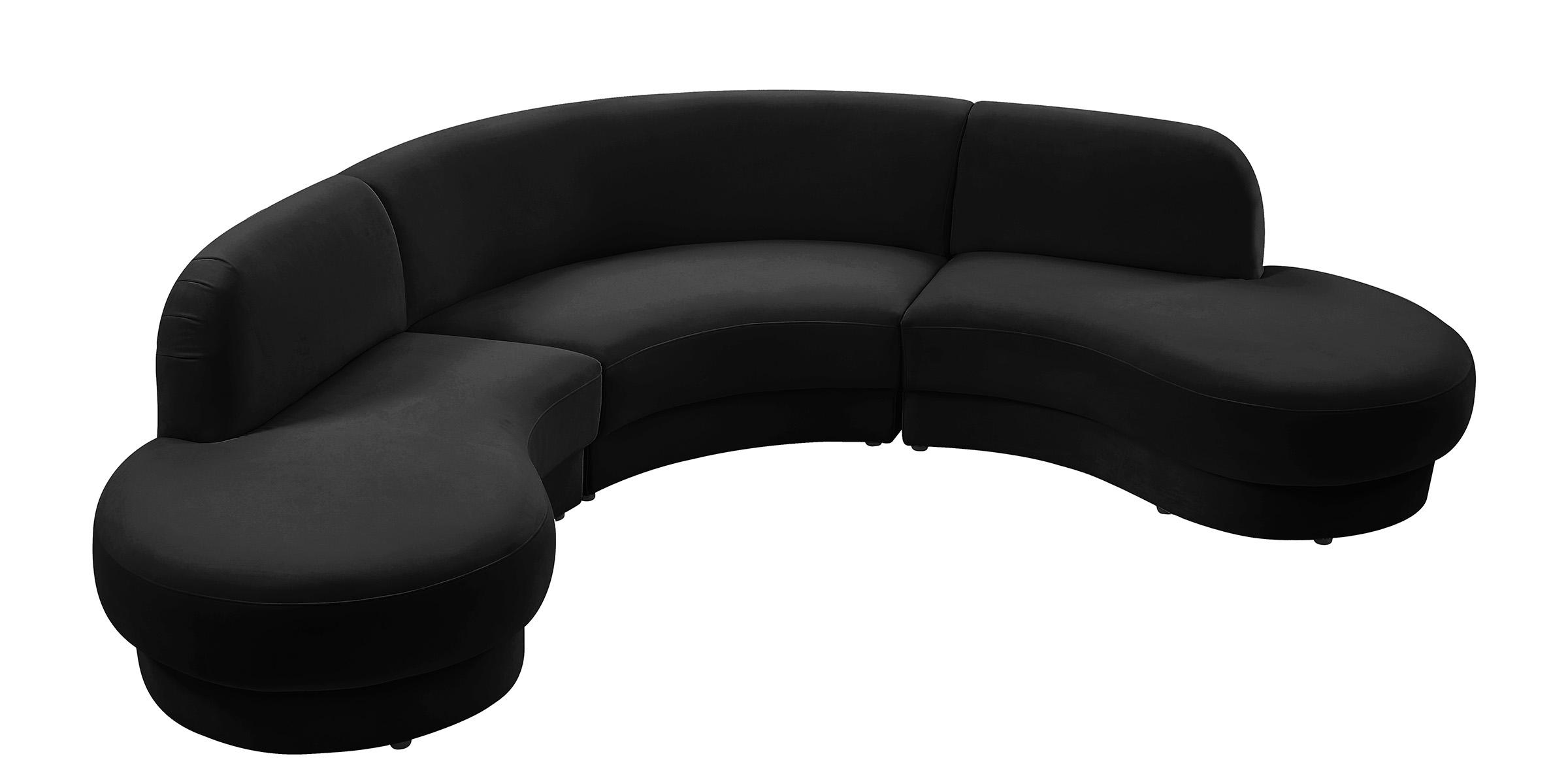 Glam BLACK Velvet Rosa Sectional Sofa 628Black Meridian Contemporary Modern