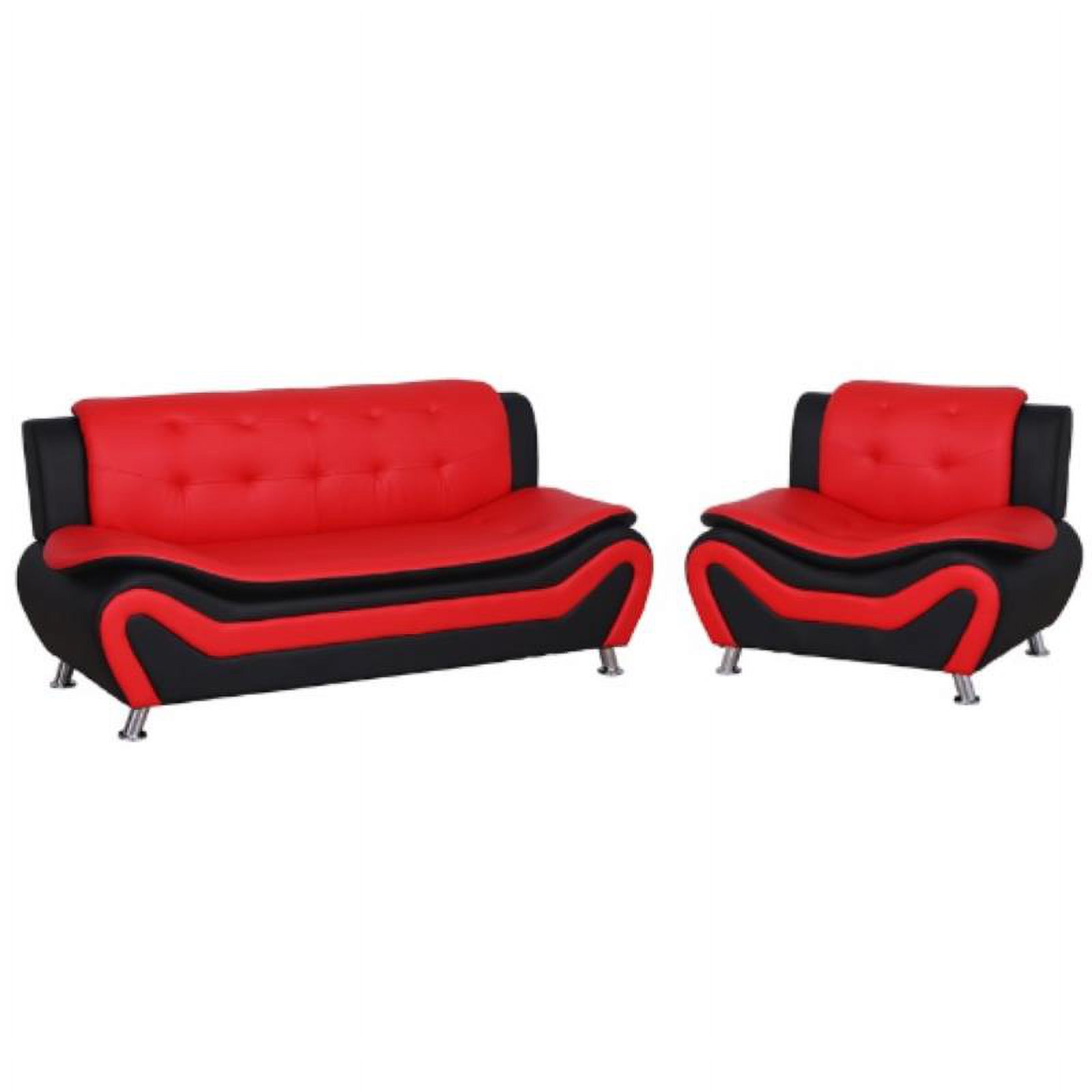 Home Square 2-Piece Set with Living Room Sofa and Club Chair in Black & Red