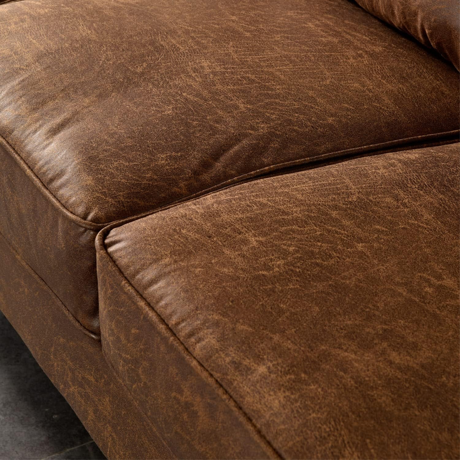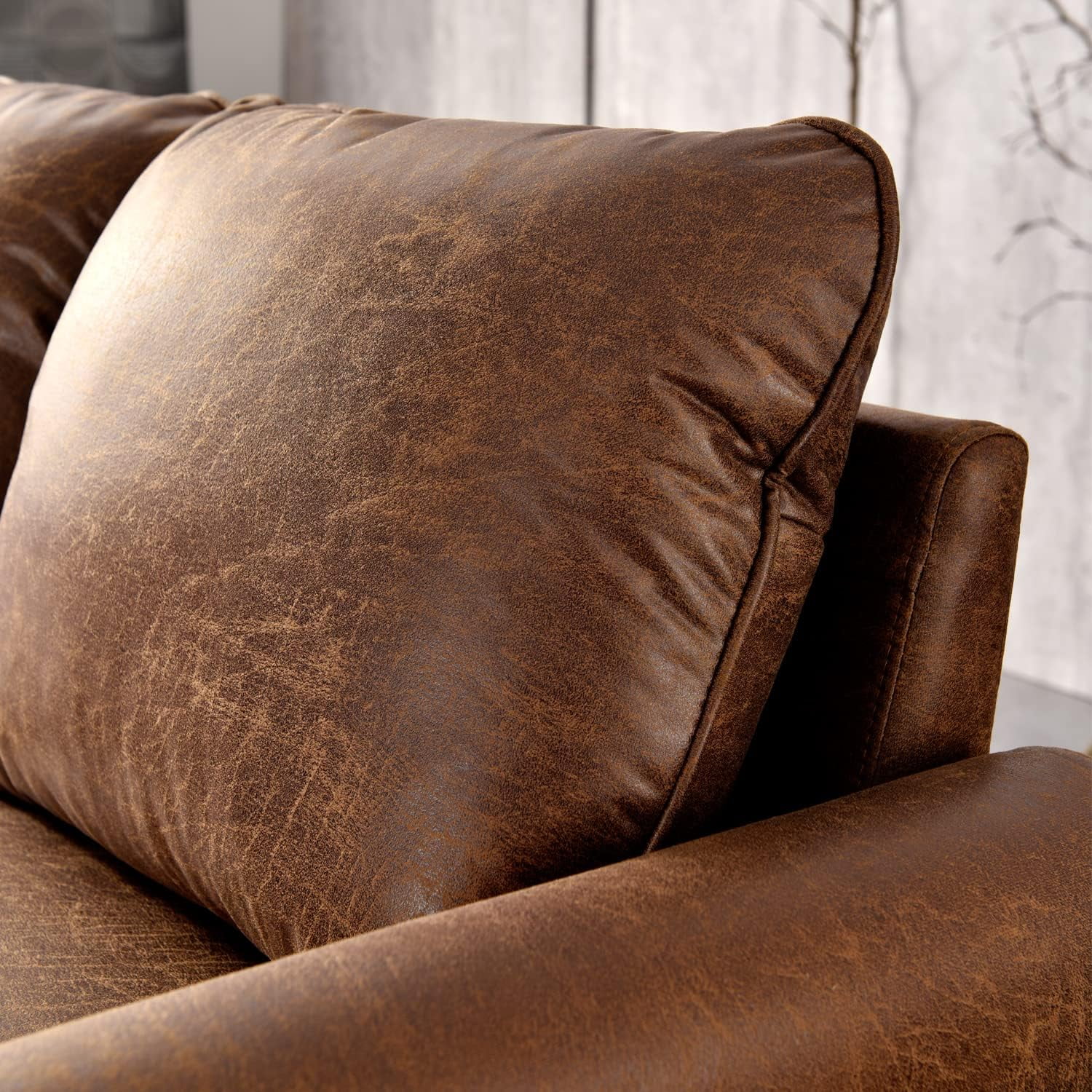 HOOOWOOO 74" Living Room Convertible Sofa 3 Seater Sofa Couch Lounge-Suede Fabric,Brown