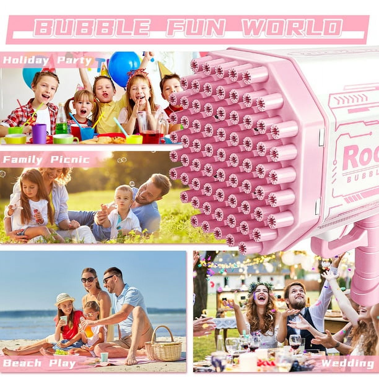 Big Rocket Bubble Gun Bubbles Rocket Launcher Gun with Lights - Pink