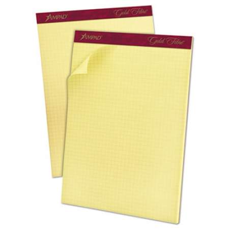 2Pc Ampad Gold Fibre Canary Quadrille Pads, Stapled with Perforated Sheets, Quadrille Rule (4 sq/in), 50 Canary 8.5 x 11.75 Sheets (22143)