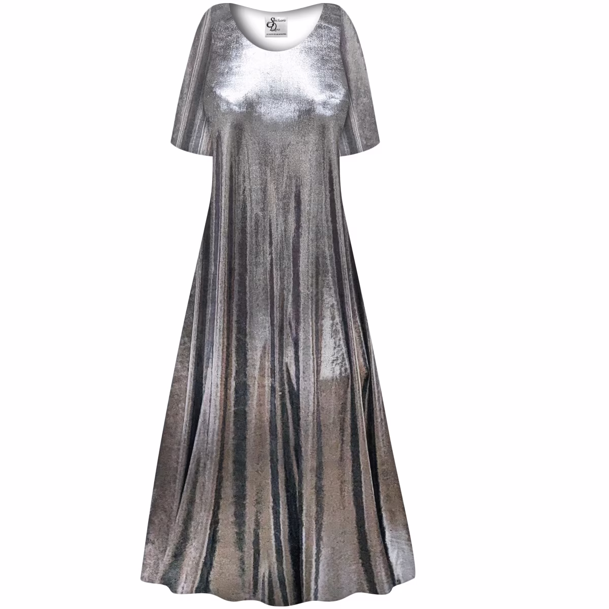 Small Womens Strechy Round Neckline with Short Sleeve Dress Silver Metallic A Line Sleek Maxi Dress
