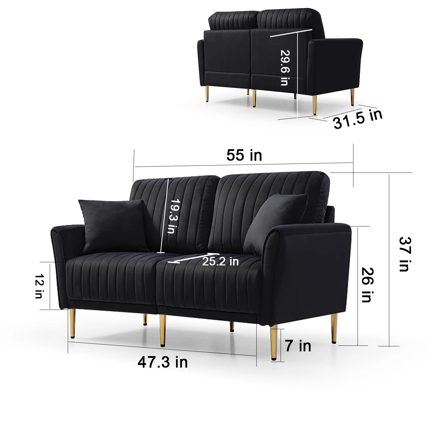 86 in. Gray Polyester Upholstery Cushioned Seating Sofa with 2 Throw Pillows, Silver Gray